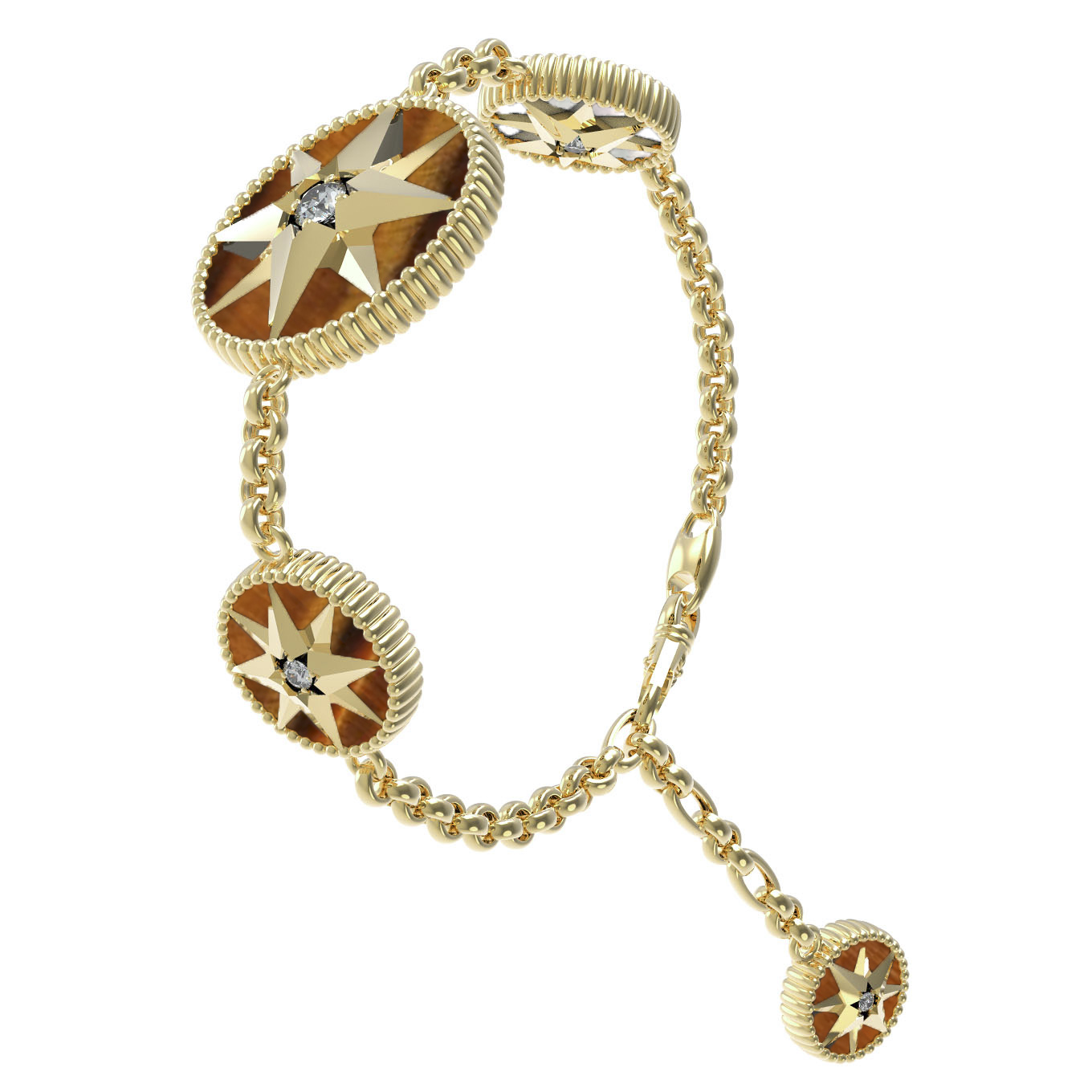 Браслет из лимонного золота c фианитом, тигровым глазом и перламутром