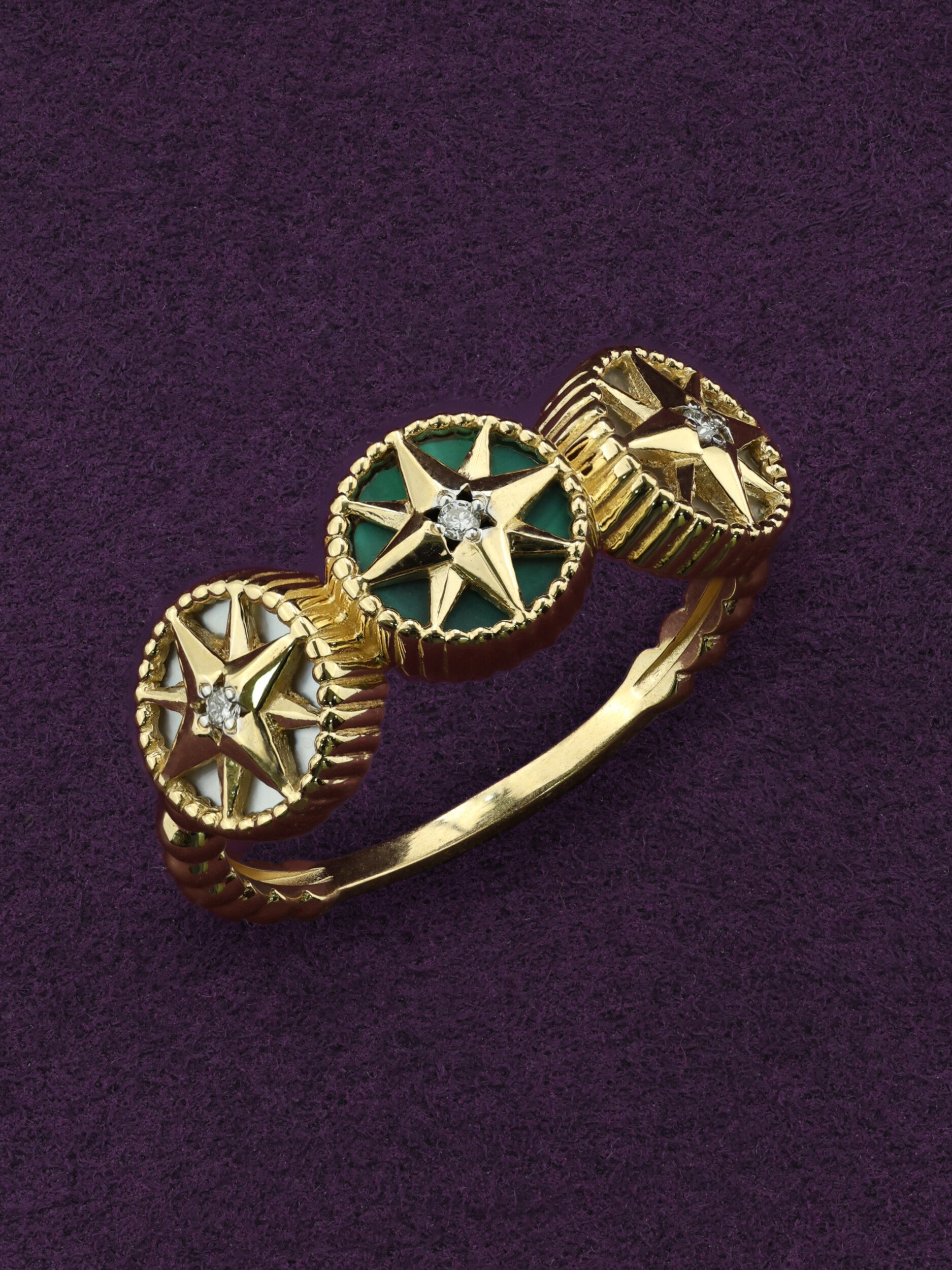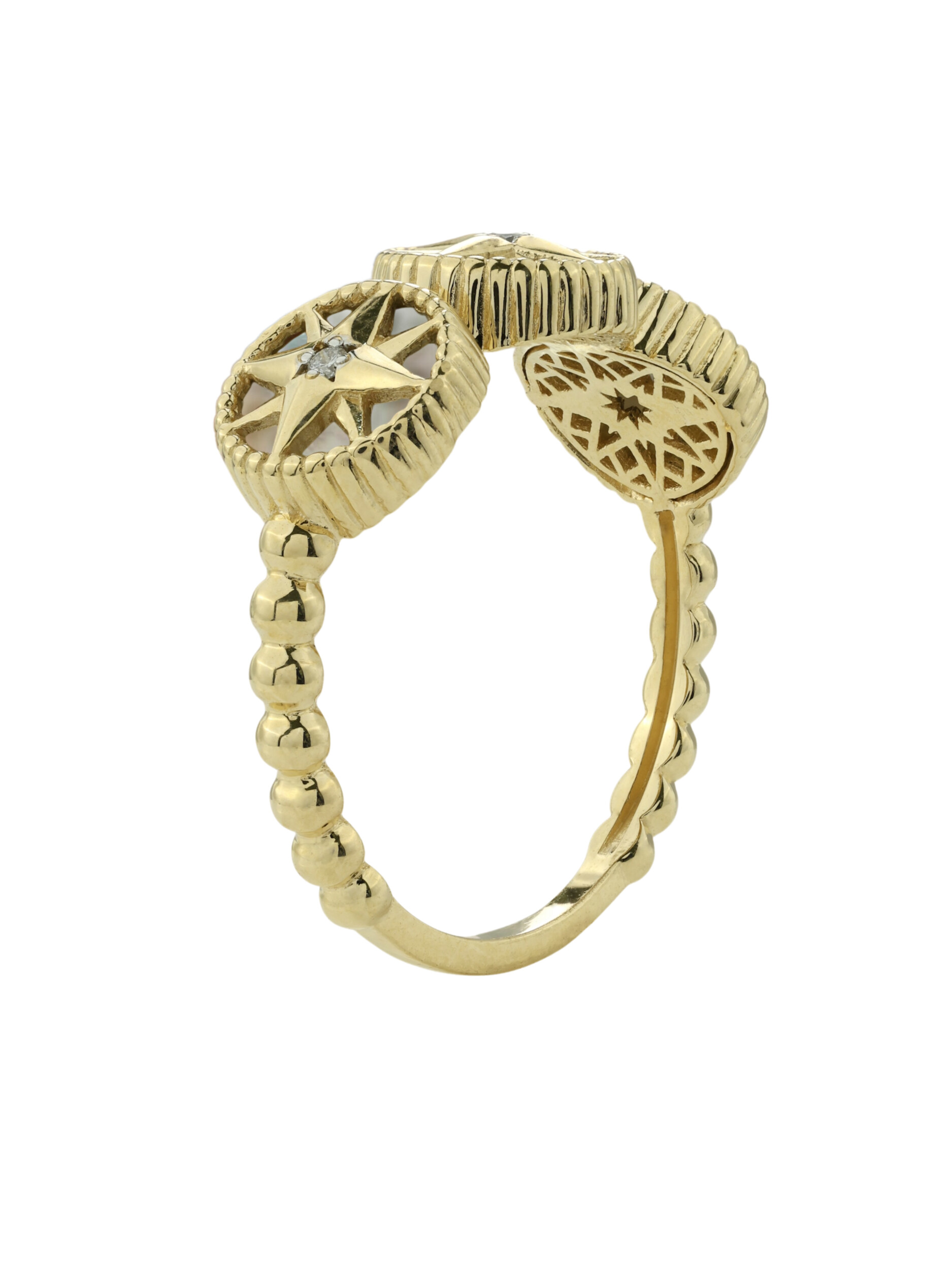 Кольцо из лимонного золота c бриллиантами, малахитом и перламутром