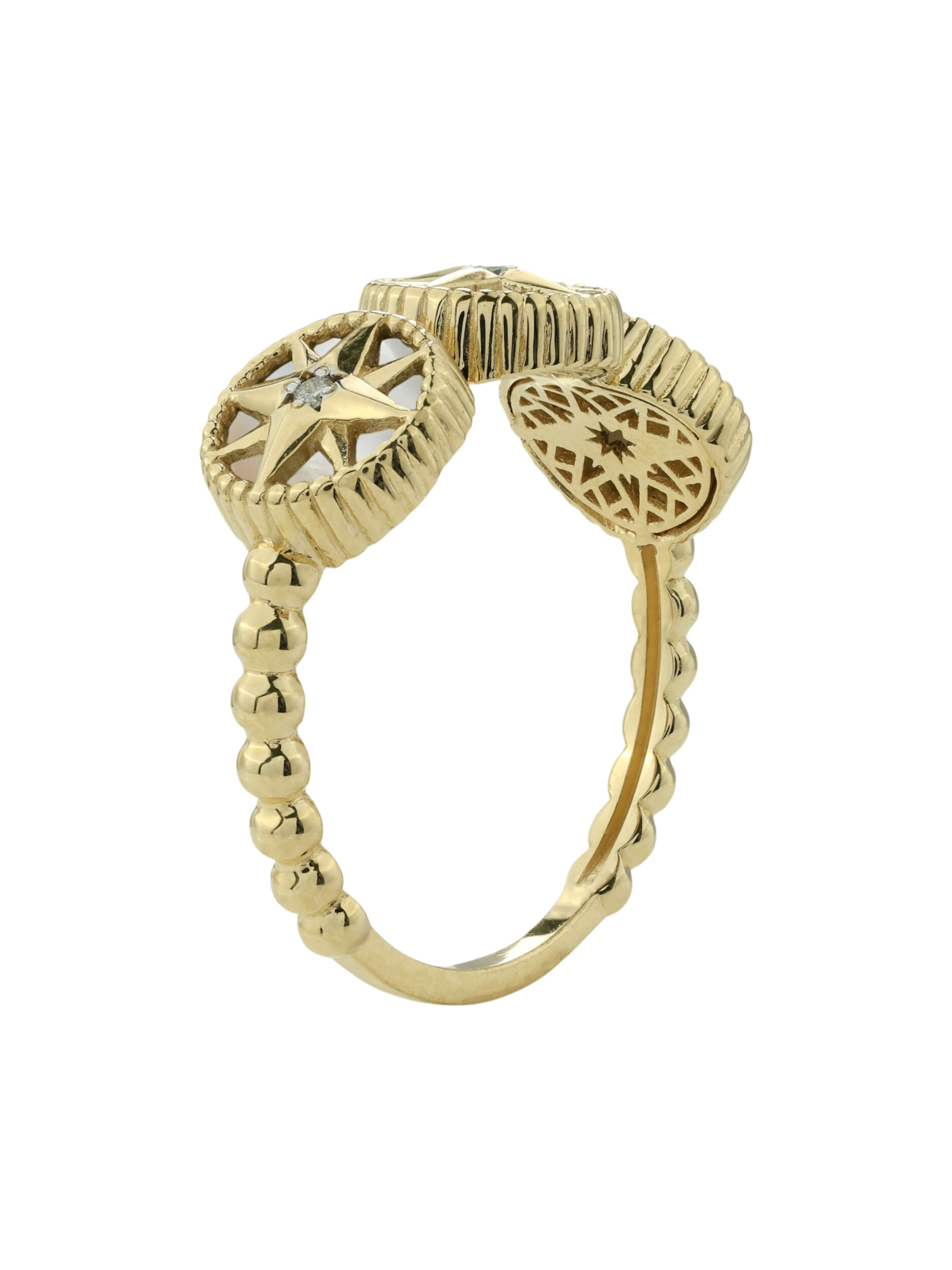 Кольцо из лимонного золота c бриллиантами, ониксом и перламутром