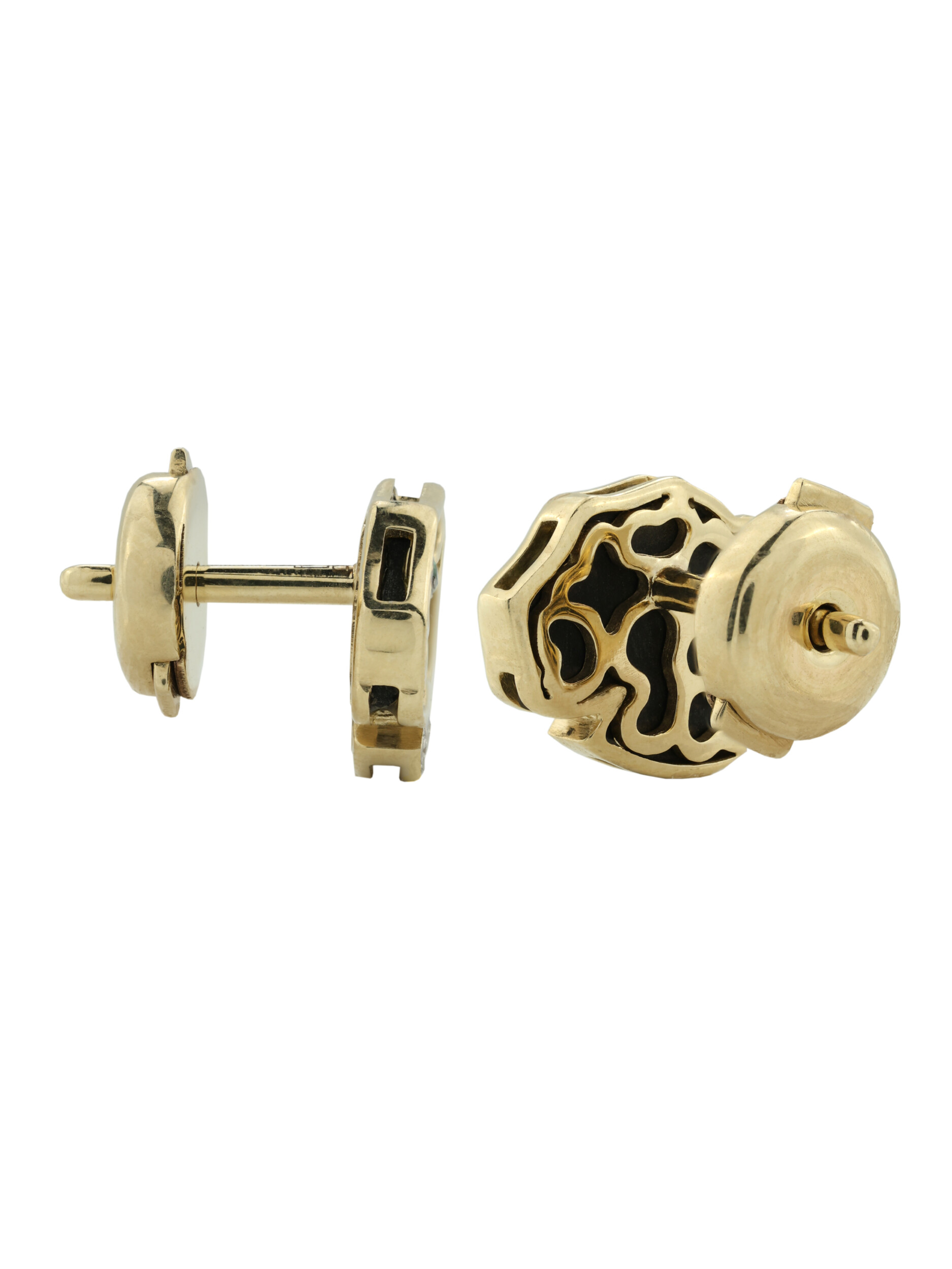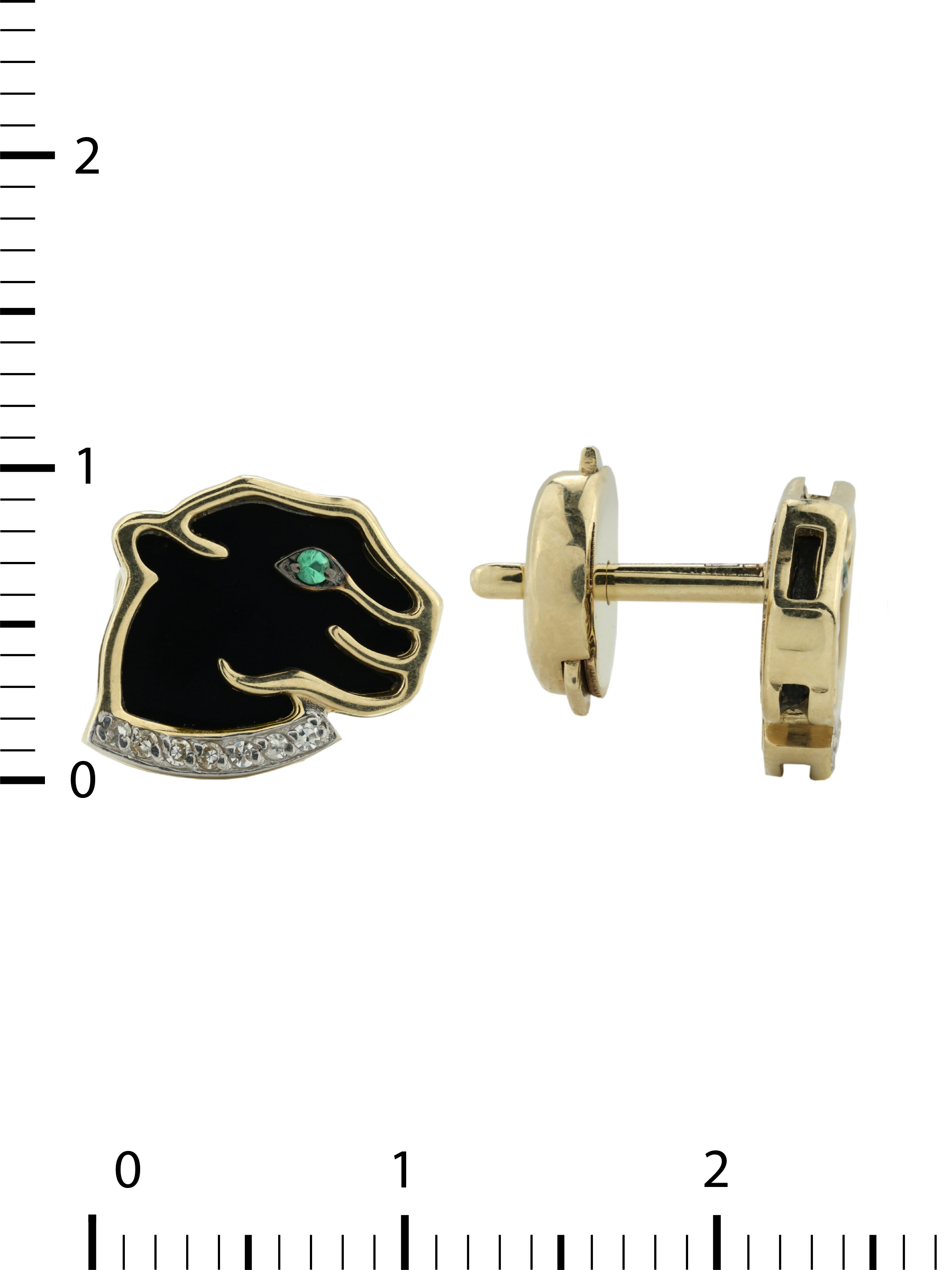 Серьги из лимонного золота c бриллиантами, изумрудом и ониксом