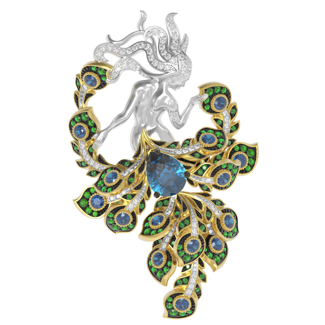 Брошь из лимонного золота c фианитом и топазом London