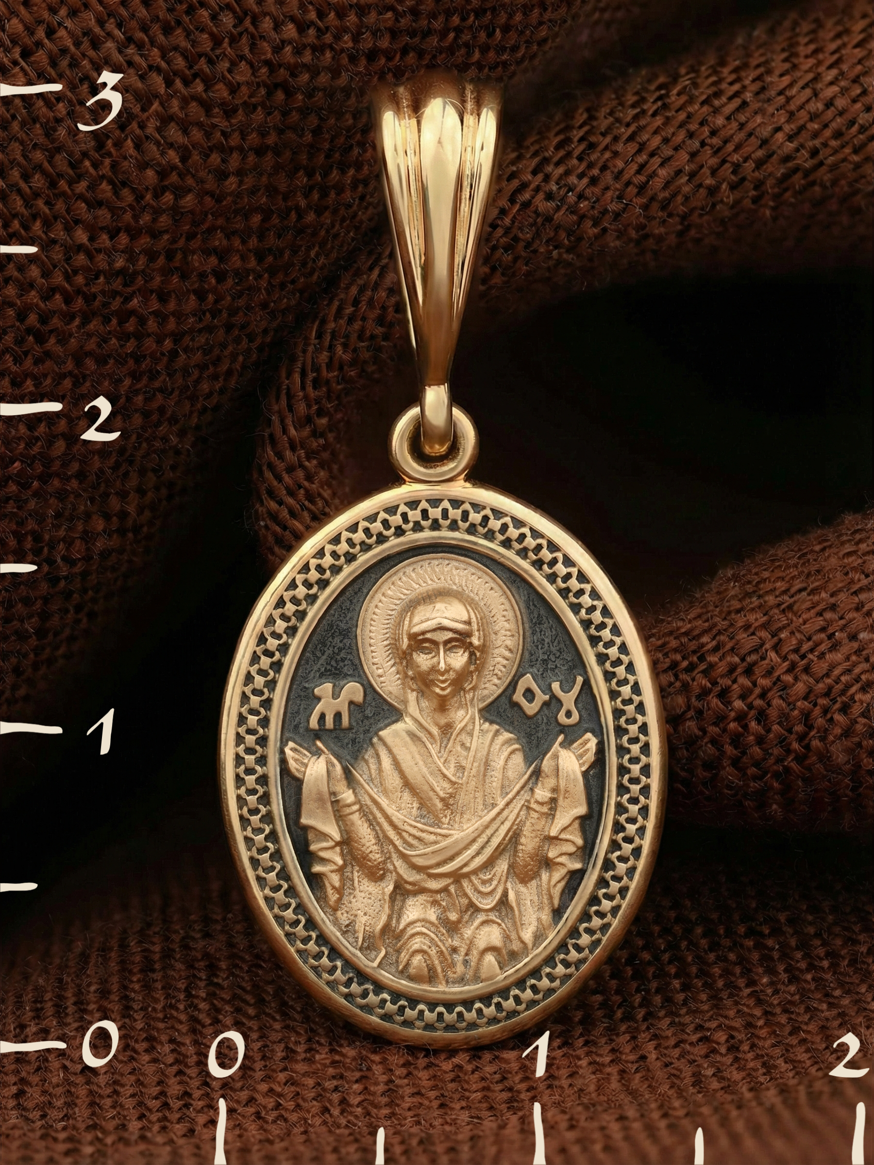 На лицевой части образка изображена икона Покров Пресвятой Богородицы. Праздник Покрова Божией Матери является воспоминанием чуда, которое произошло во Влахнернской церкви 1 (14) октября 910 года: Пресвятая Богородица явилась верующим над алтарем храма и распростерла над ними Свое покрывало. В этот день Божья Матерь открыла людям, что Она является Ходатаицей за них перед Богом. Богородица простирает Свой молитвенный покров над всеми православными христианами и умоляет Сына Своего о даровании вечного спасения каждому человеку.
