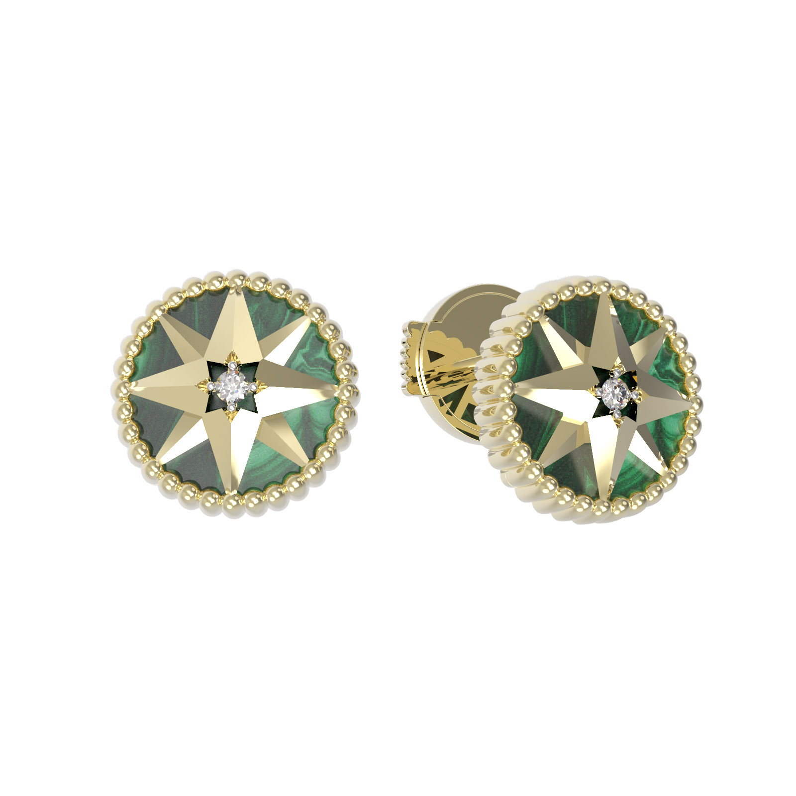 Серьги из лимонного золота c фианитом и малахитом
