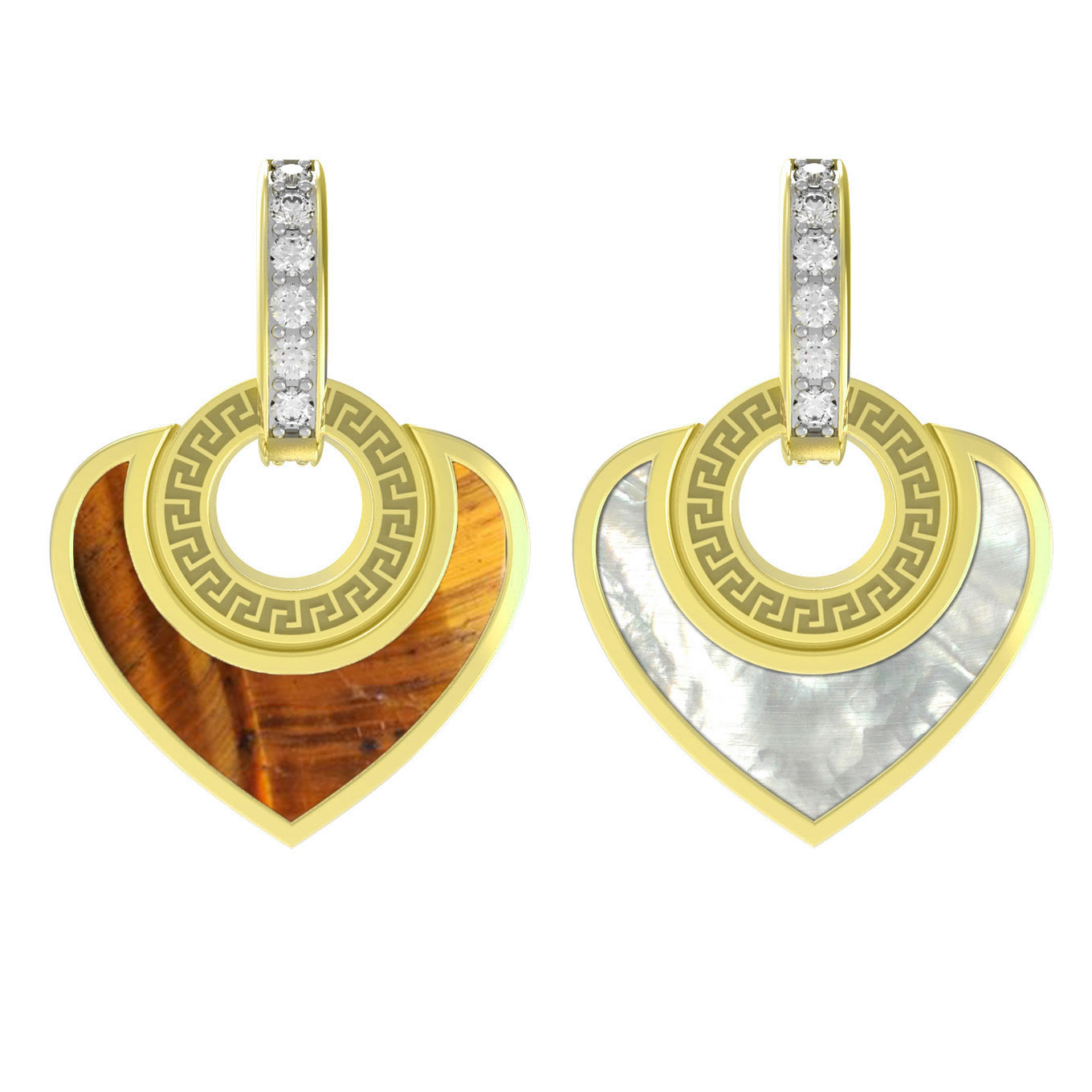 Из золота c фианитом, тигровым глазом и перламутром
