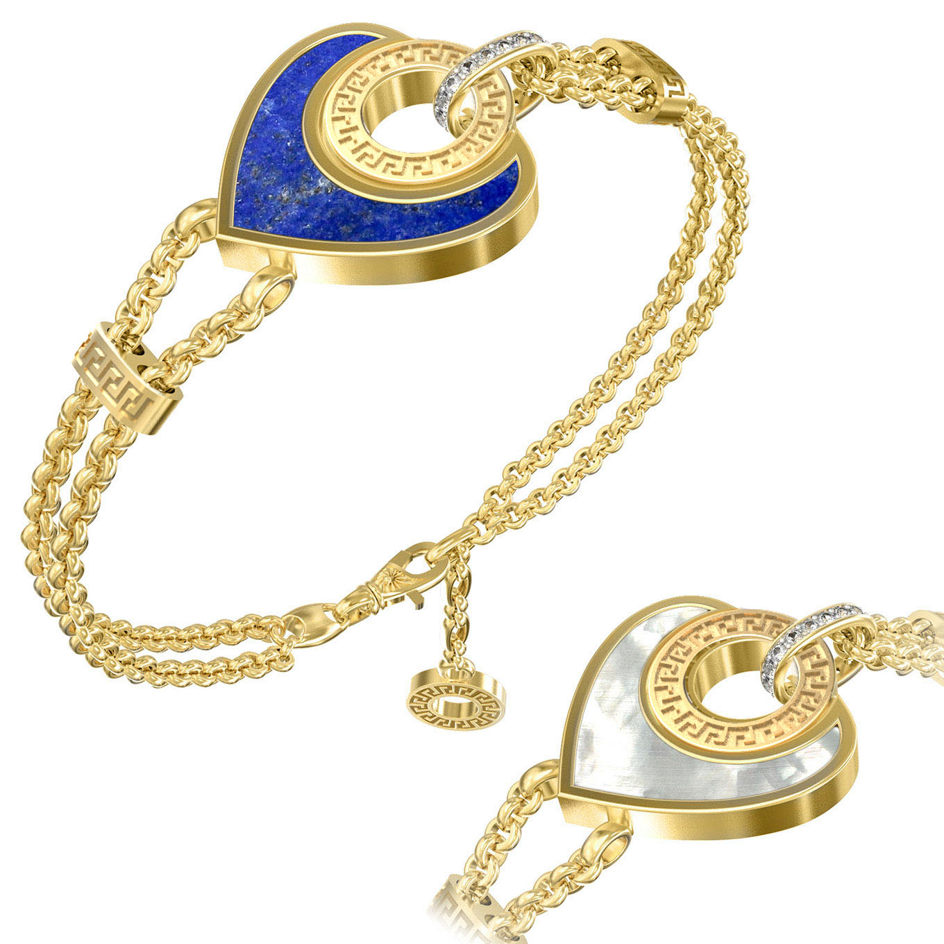 • Браслет из золота c фианитом, лазуритом и перламутром