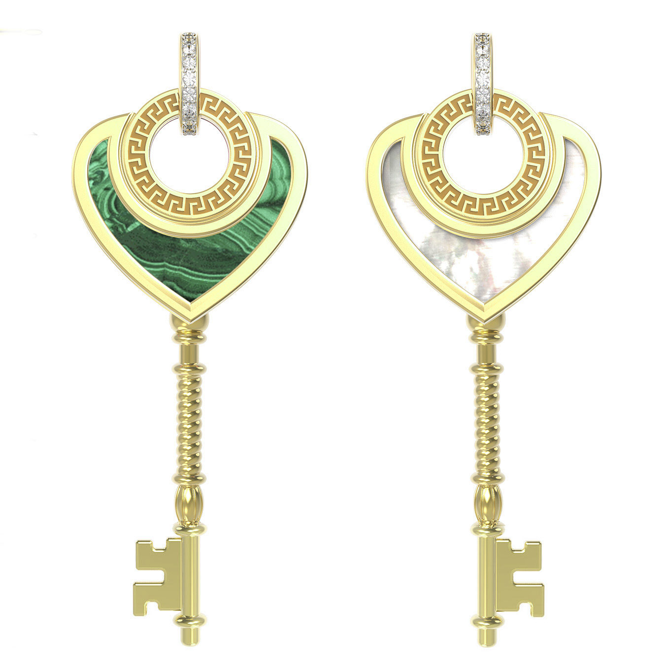 Из золота c фианитом, малахитом и перламутром