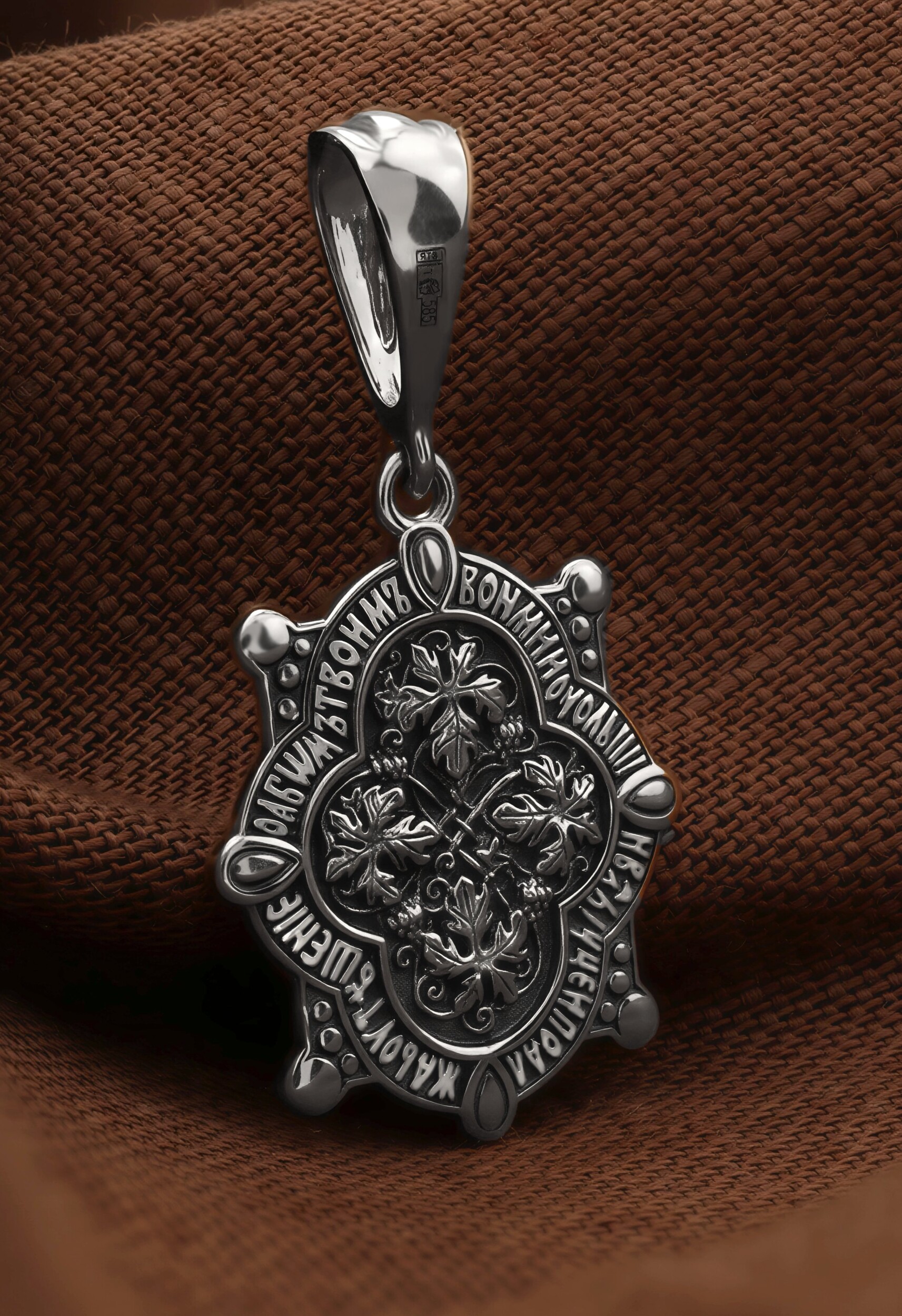 Лицевую сторону возглавляет Владимирская икона Божией Матери — самая великая русская святыня, многие века бывшая олицетворением нашей земли. Перед ней венчались на царство государи, избирались патриархи. Пречистой Богородице Владимирской клялись в верности Отечеству солдаты и за нее умирали на поле брани. Именно на ее защиту более всего уповала Россия в самые страшные периоды своей истории. Владимирская икона Божией Матери, по преданию, была написана на доске трапезного стола из дома Иисуса Христа. На Русь она была привезена в начале XII века и с тех пор почитается как главная святыня нашего Отечества. Перед ней молитвенно просят Богородицу об исцелении от телесных недугов, в частности, заболеваний сердца и сердечнососудистой системы. За помощью к ней обращаются во время бедствий, когда нуждаются в защите от врагов.