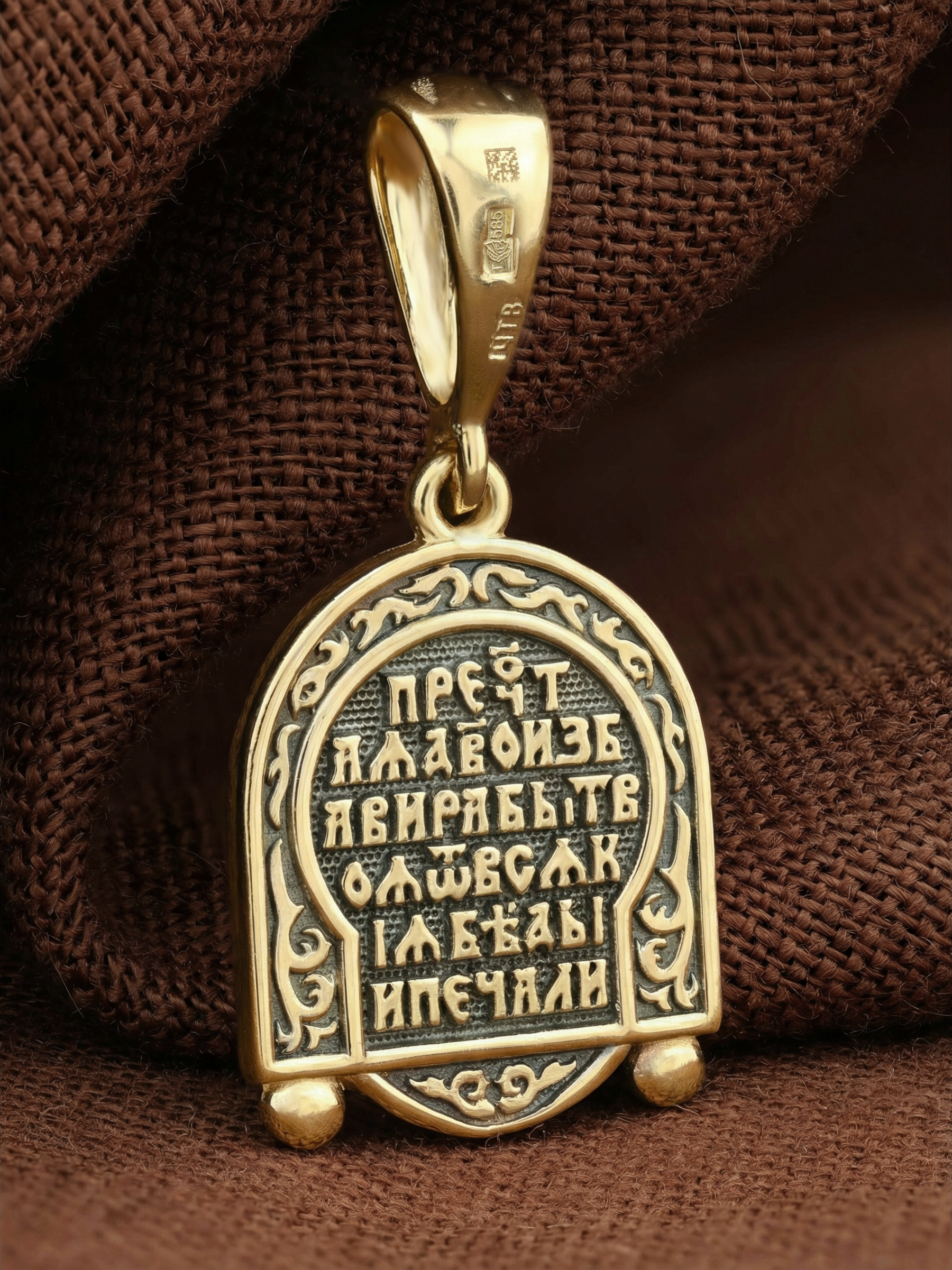 На лицевой стороне образка изображена икона Пресвятой Богородицы «Семистрельная» — одна из самых чудотворных икон на Руси. На протяжении многих веков христиане взывали к Царице Небесной через эту икону, если в стране начинались войны или мятежи.