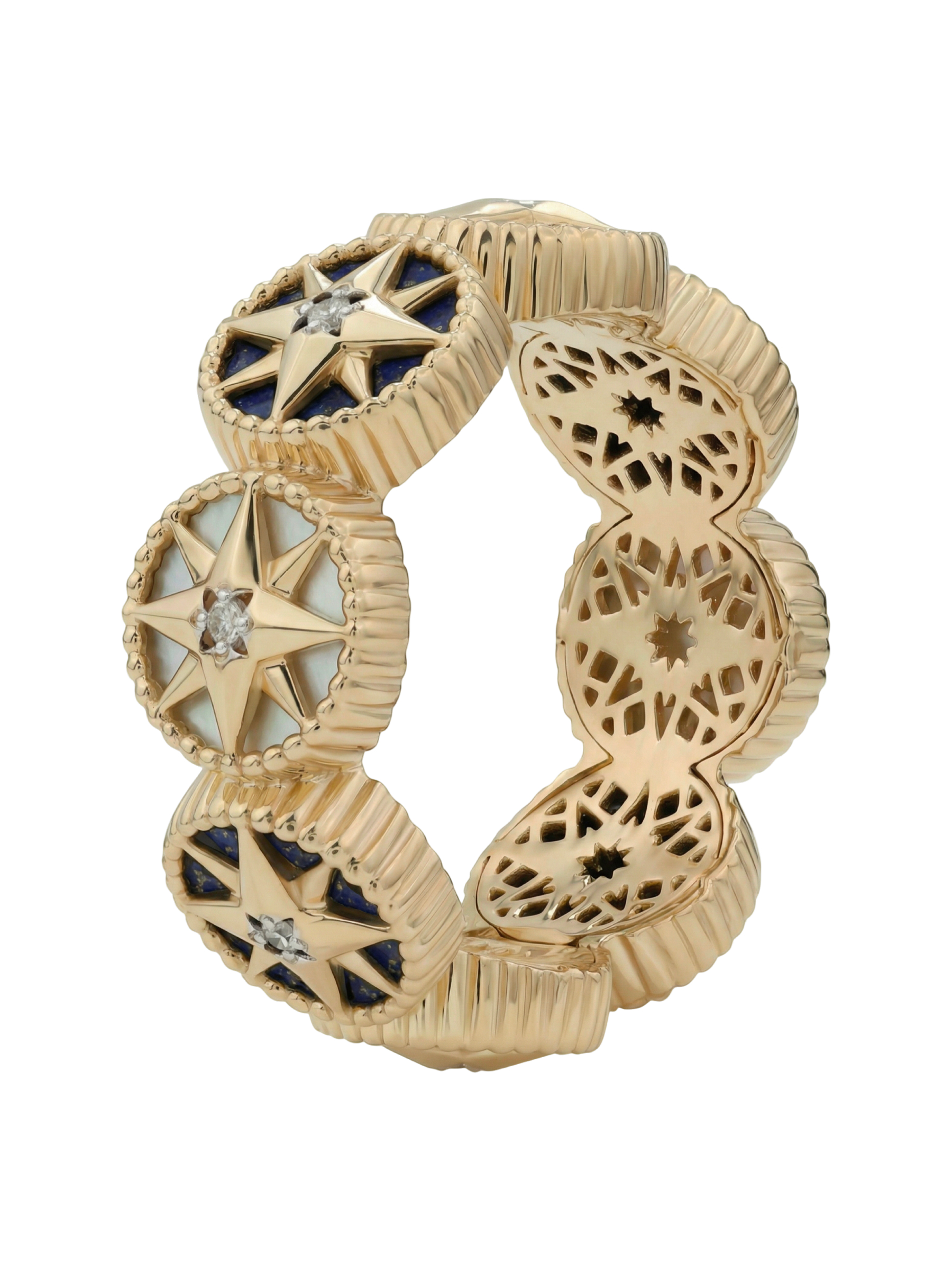Кольцо из золота c бриллиантами, лазуритом и перламутром