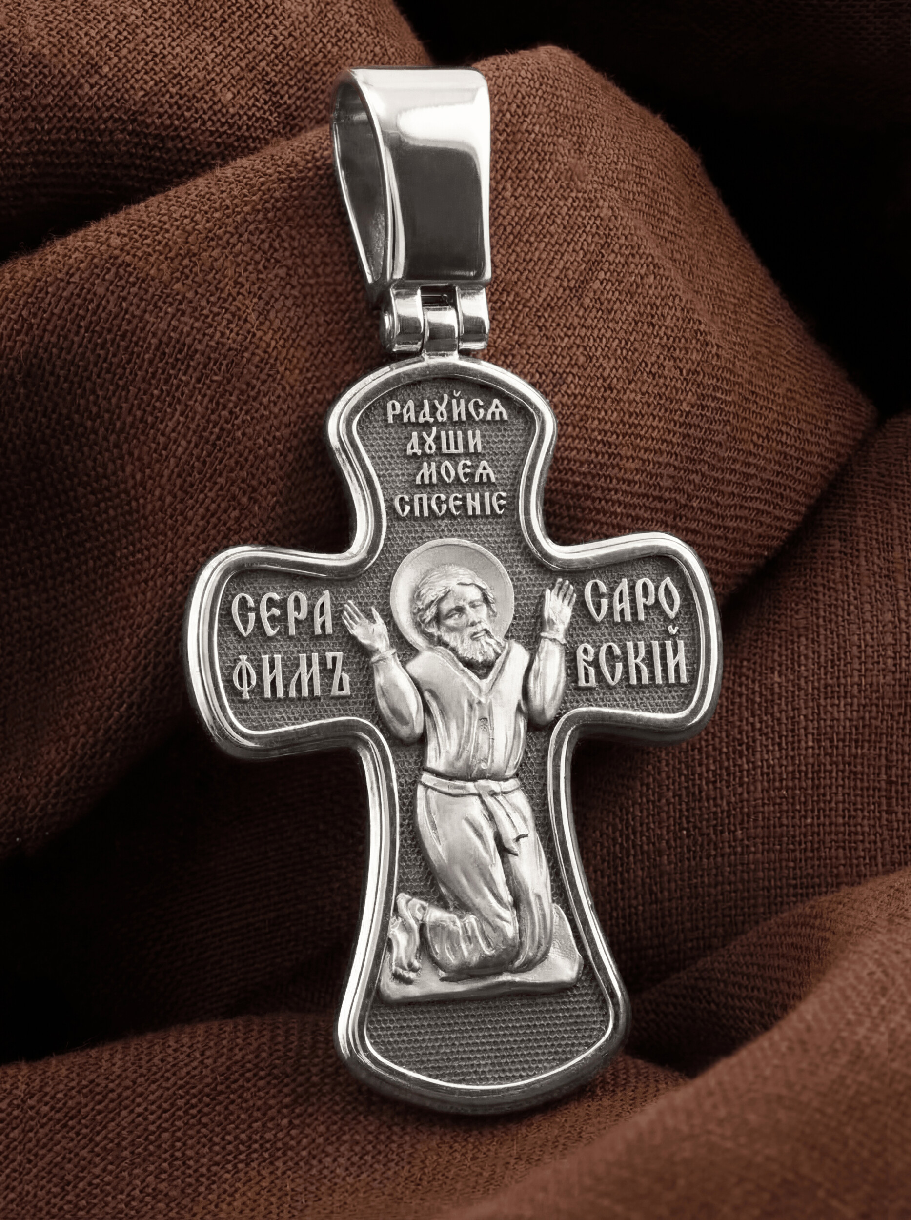 На обороте изображен образ Преподобного Серафима Саровского, самого великого русского святого XIX века. Преподобный Серафим почитается за особую милостивую любовь к людям и неоскудевающую помощь во всех делах. Над ликом Святого выгравирована надпись: «Радуйся души моея спасение».