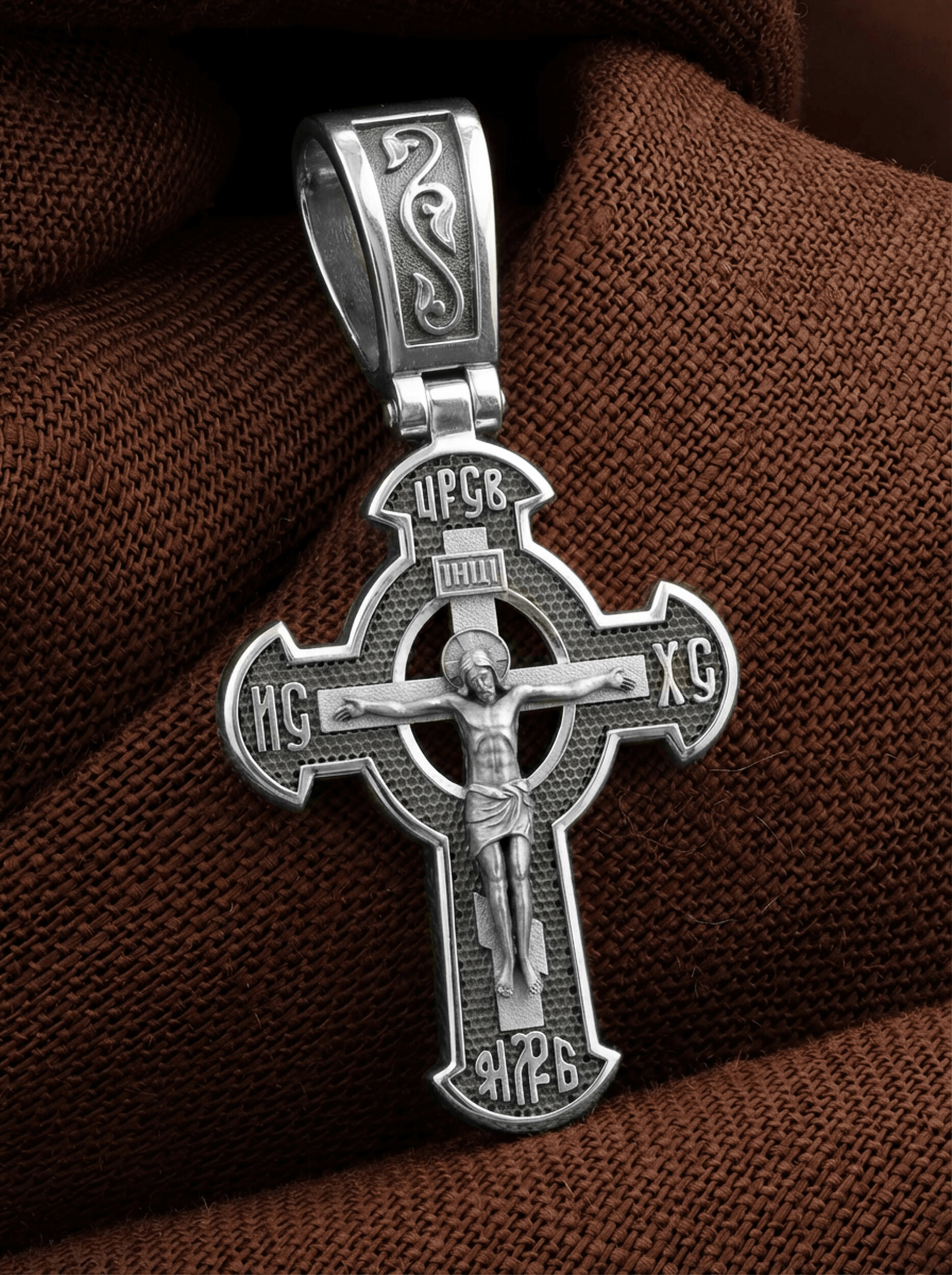 Оборотная сторона креста украшена растительным орнаментом. Помещенный на крест орнамент символизирует жизнедательную силу, животворное тепло креста. В растительный узор, на горизонтальной перекладине, вписано молитвенное славословие: «Спаси и сохрани». Эта надпись означает непрерывную молитву, совершаемую носителем данного креста.