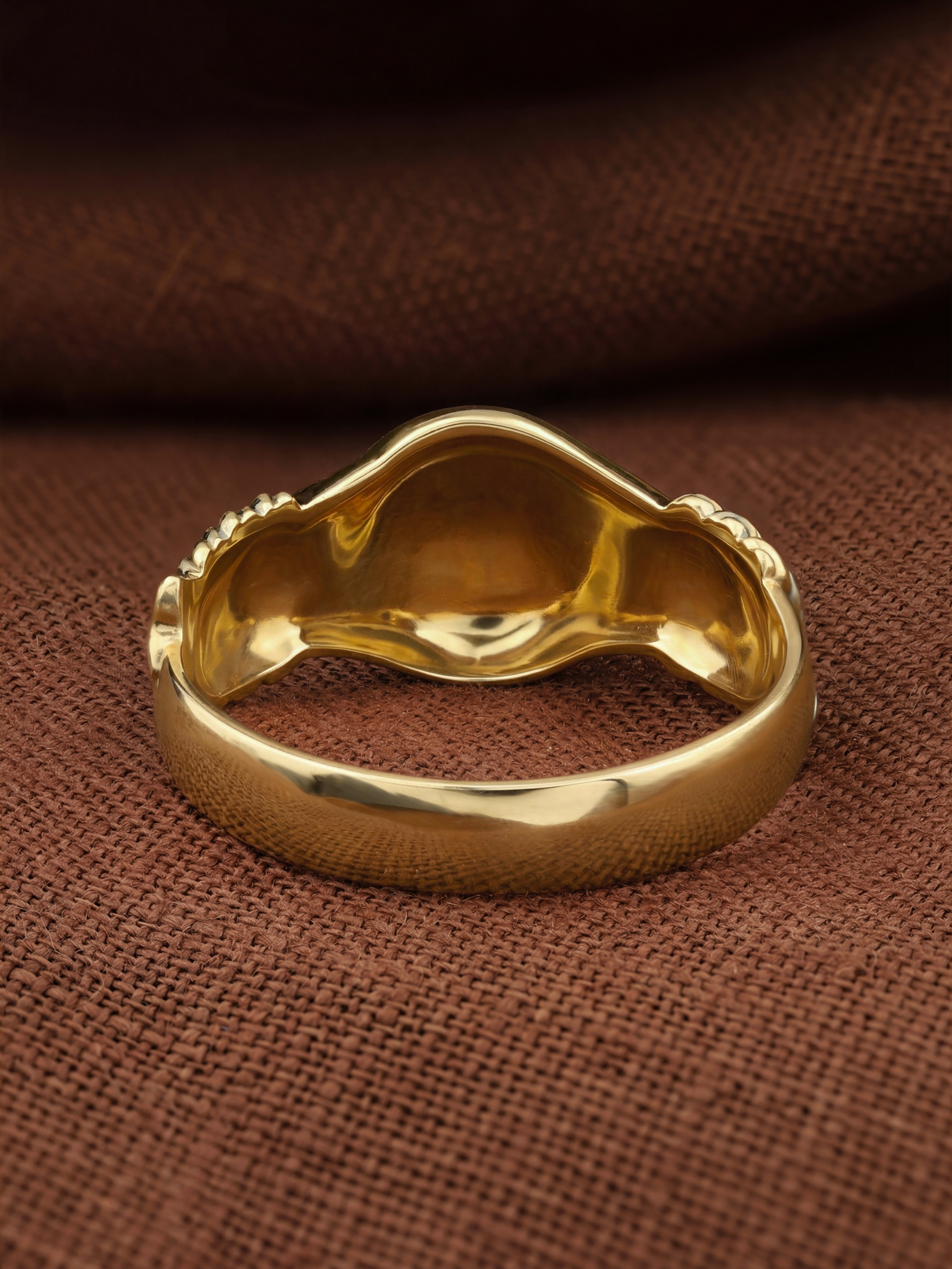 В центральной части лицевой стороны кольца изображен Крест. Господь сказал: кто хочет идти за Мною, отвергнись себя, и возьми крест свой, и следуй за Мною. Крест является символом жертвенной любви Всеблагого Бога к падшим людям, всепобеждающим духовным оружием христиан, основанием и средоточием церковной жизни. Иисус Христос, как искупительная жертва освобождения человечества от власти греха, умер крестной смертью и в третий день воскрес. Крест имеет четырехконечную форму с равными балками. Такого типа кресты существовали во многих дохристианских культурах и были в первую очередь использованы Церковью для выражения идеи христианского преобразования мира. Вокруг креста помещена молитва: «Спаси и Сохрани».