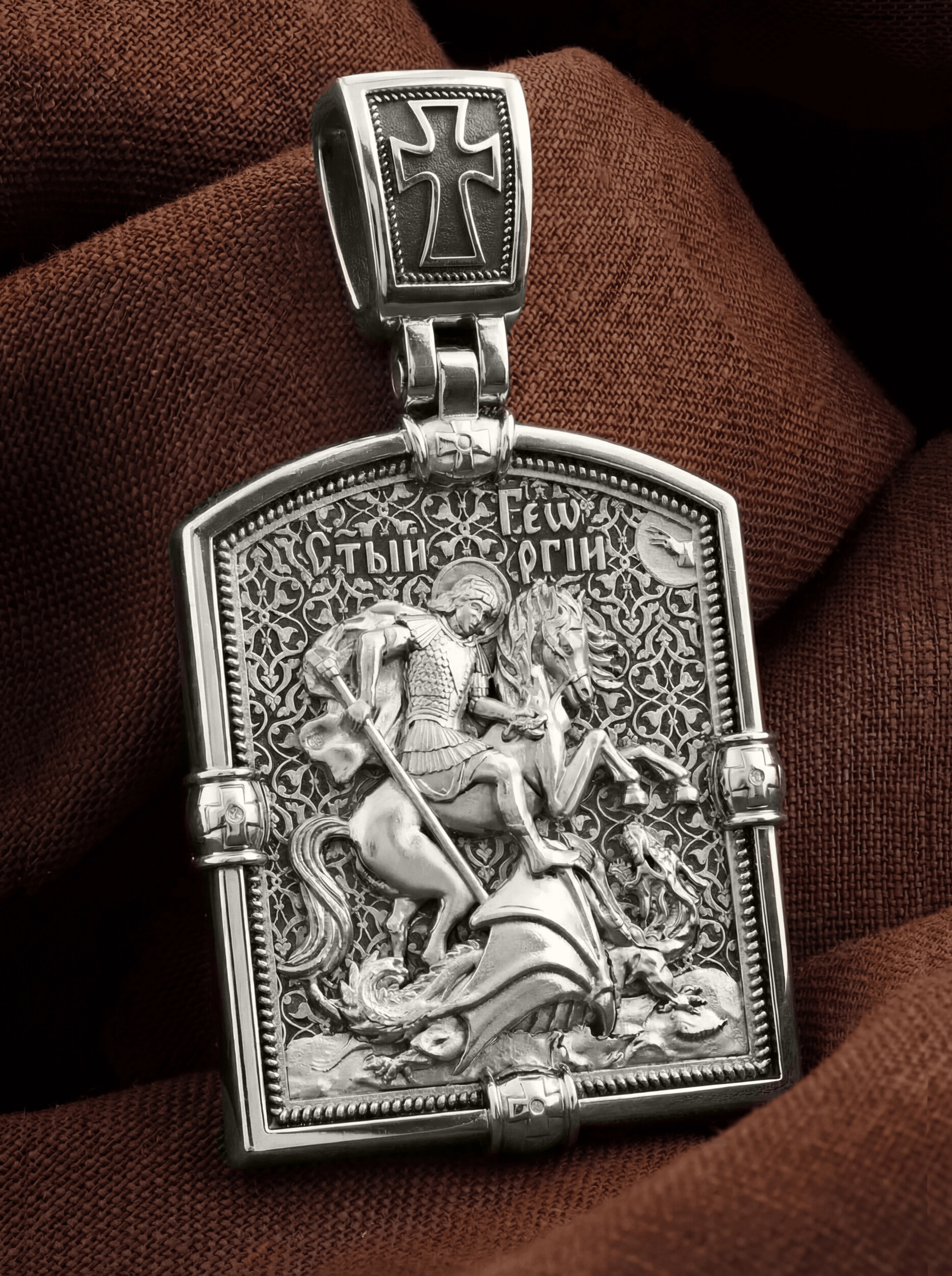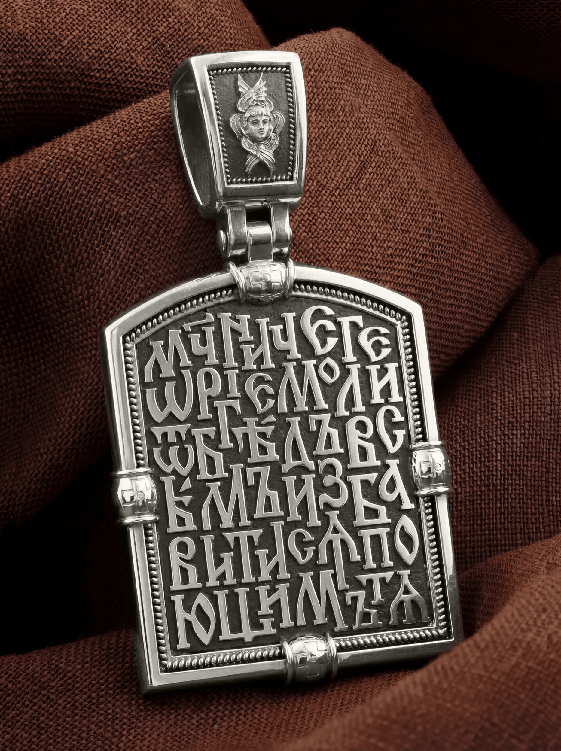 На кулонном кольце изображен шестикрылый Серафим — самый приближенный к Господу Ангел.