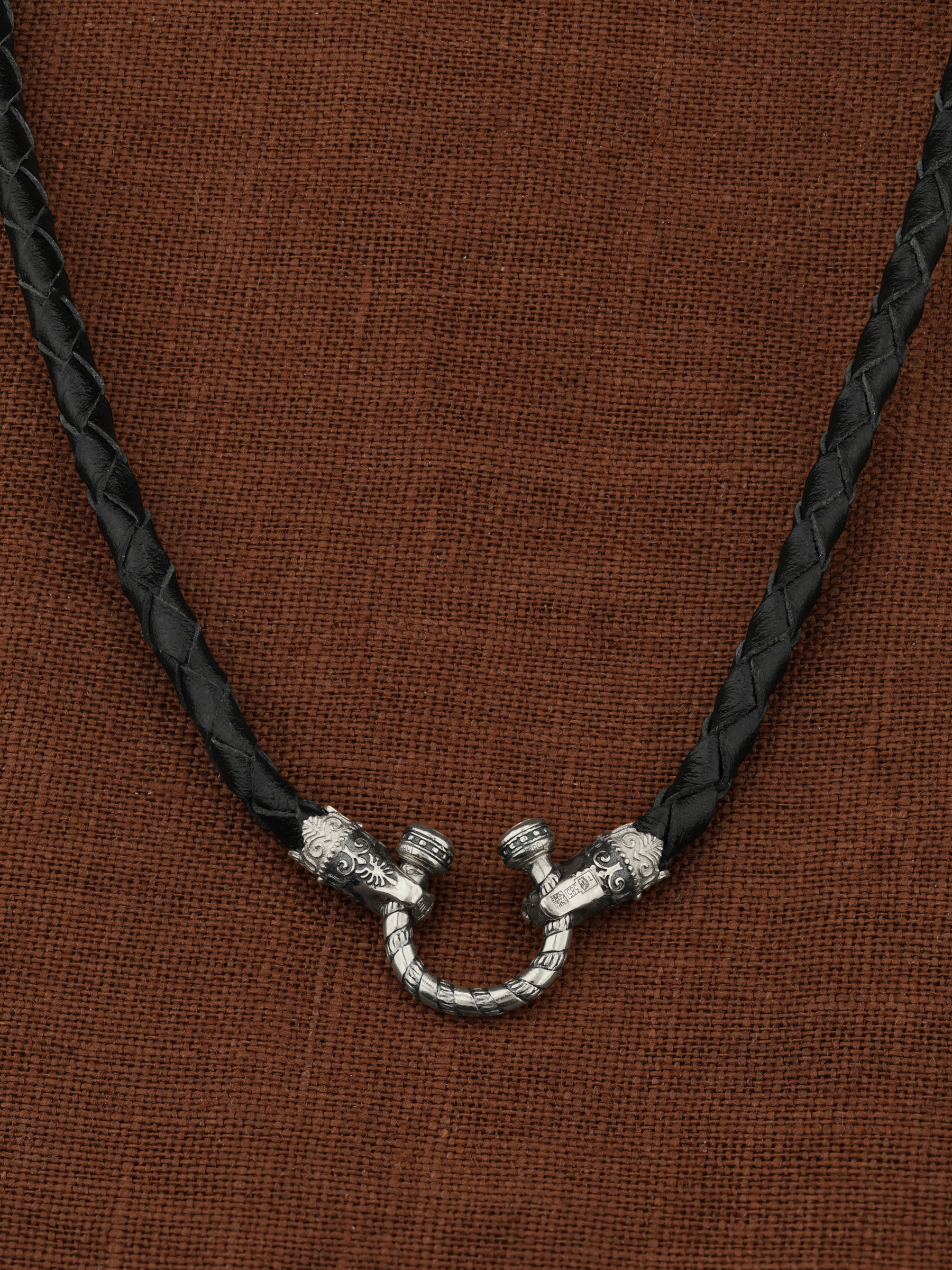 Гайтан из белого золота c кожаным шнурком