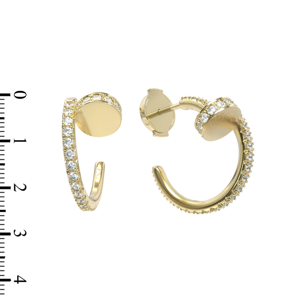 Каждая серьга декорирована множеством сверкающих вставок. Всего в изделии использовано 72 бриллианта круглой огранки, которые дарят украшению непревзойденное сияние. Белый цвет вставок гармонично контрастирует с теплым лимонным золотом, делая дизайн выразительным и динамичным. Эти серьги созданы как для женщин, так и для мужчин, которые ценят лаконичность и дерзкий стиль в ювелирных украшениях.