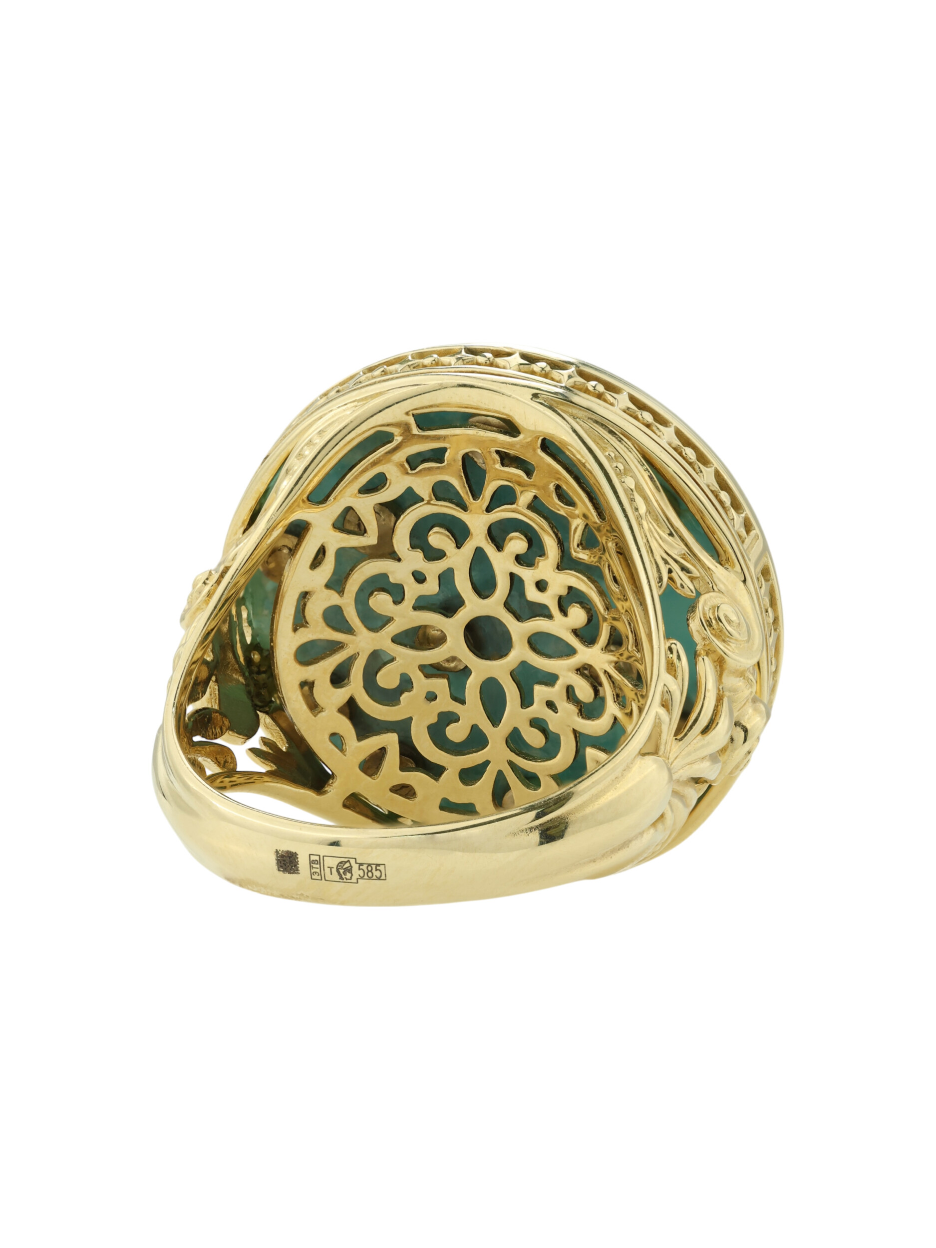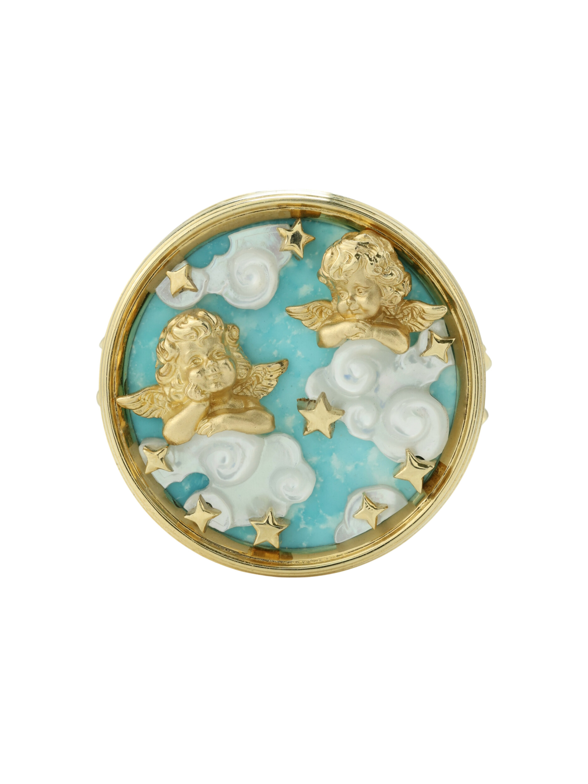 Кольцо из лимонного золота c бирюзой и перламутром
