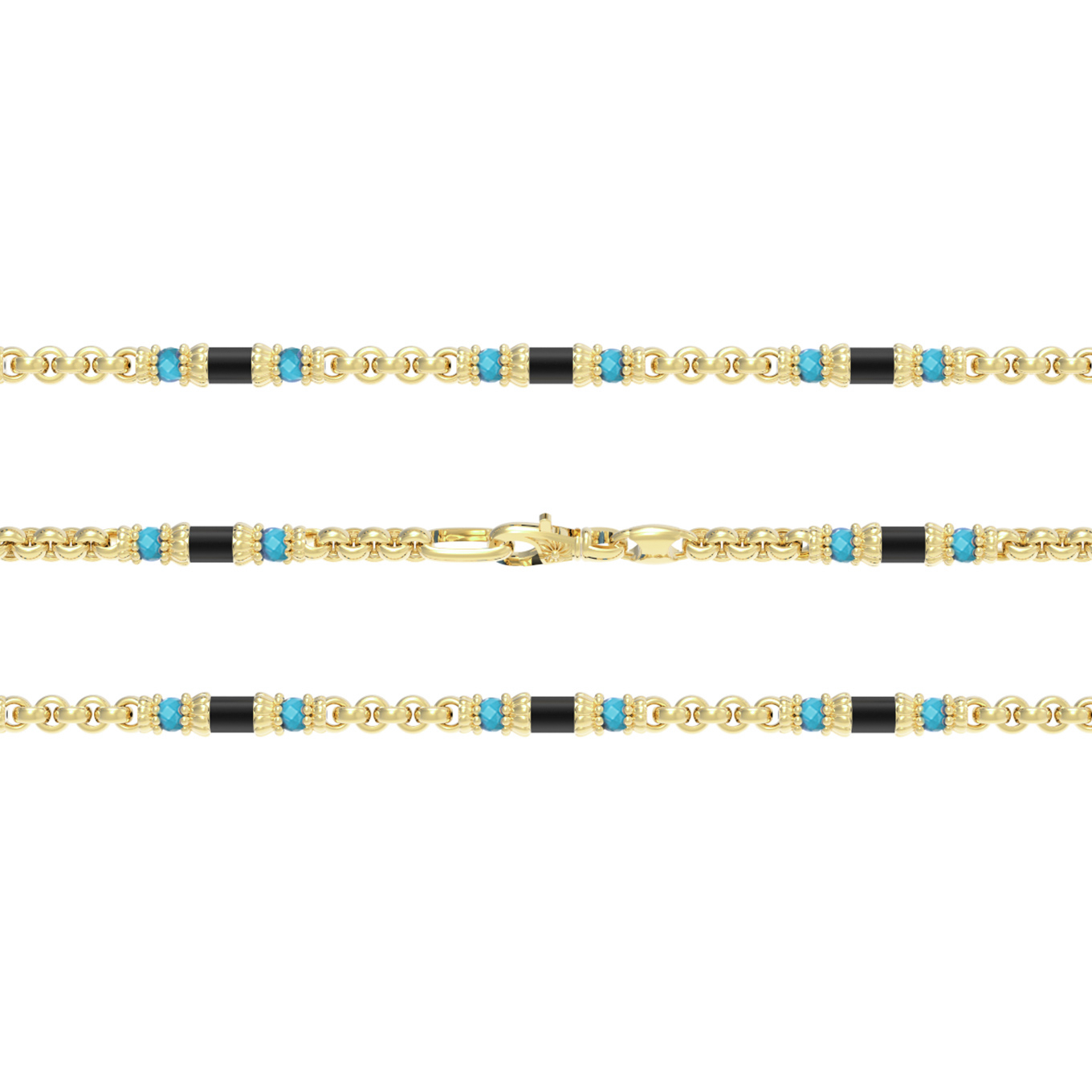 • Цепь из лимонного золота c бирюзой и ониксом
