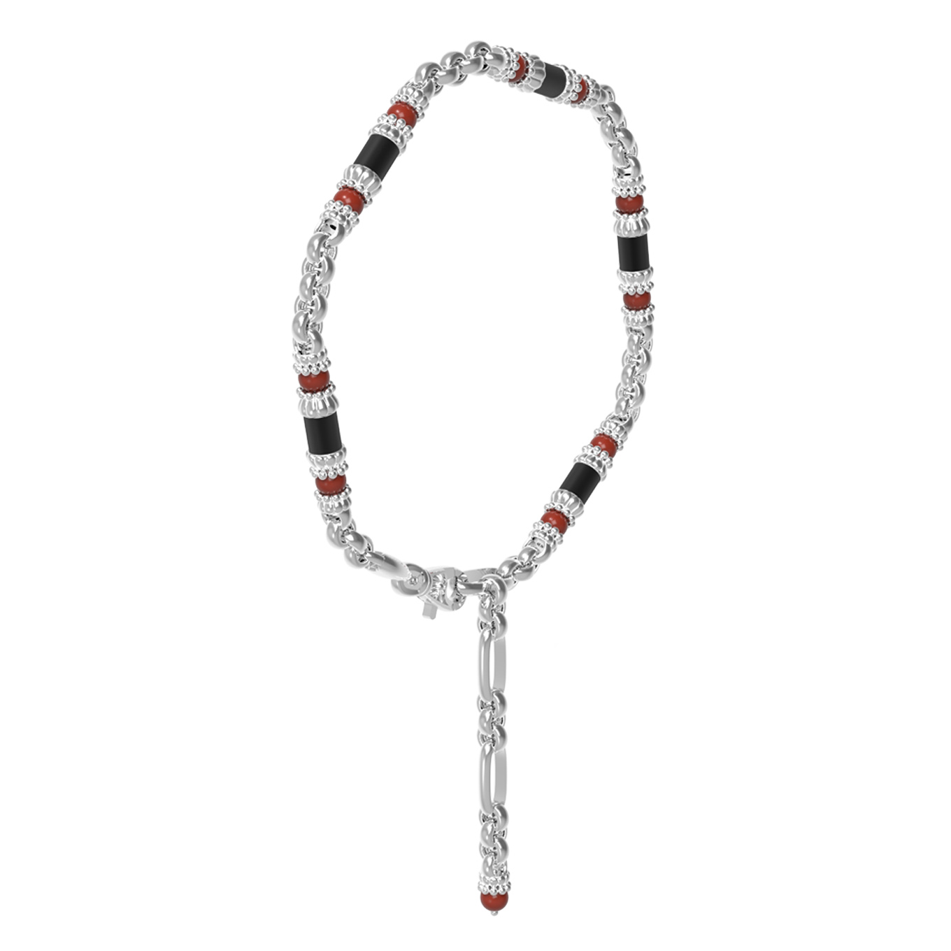 Цепь из белого золота c ониксом и кораллом