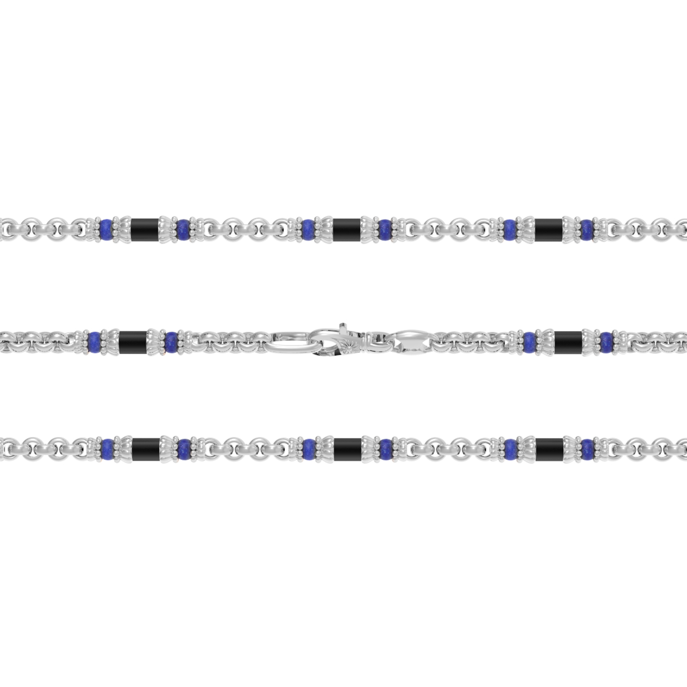 • Цепь из белого золота c ониксом и лазуритом