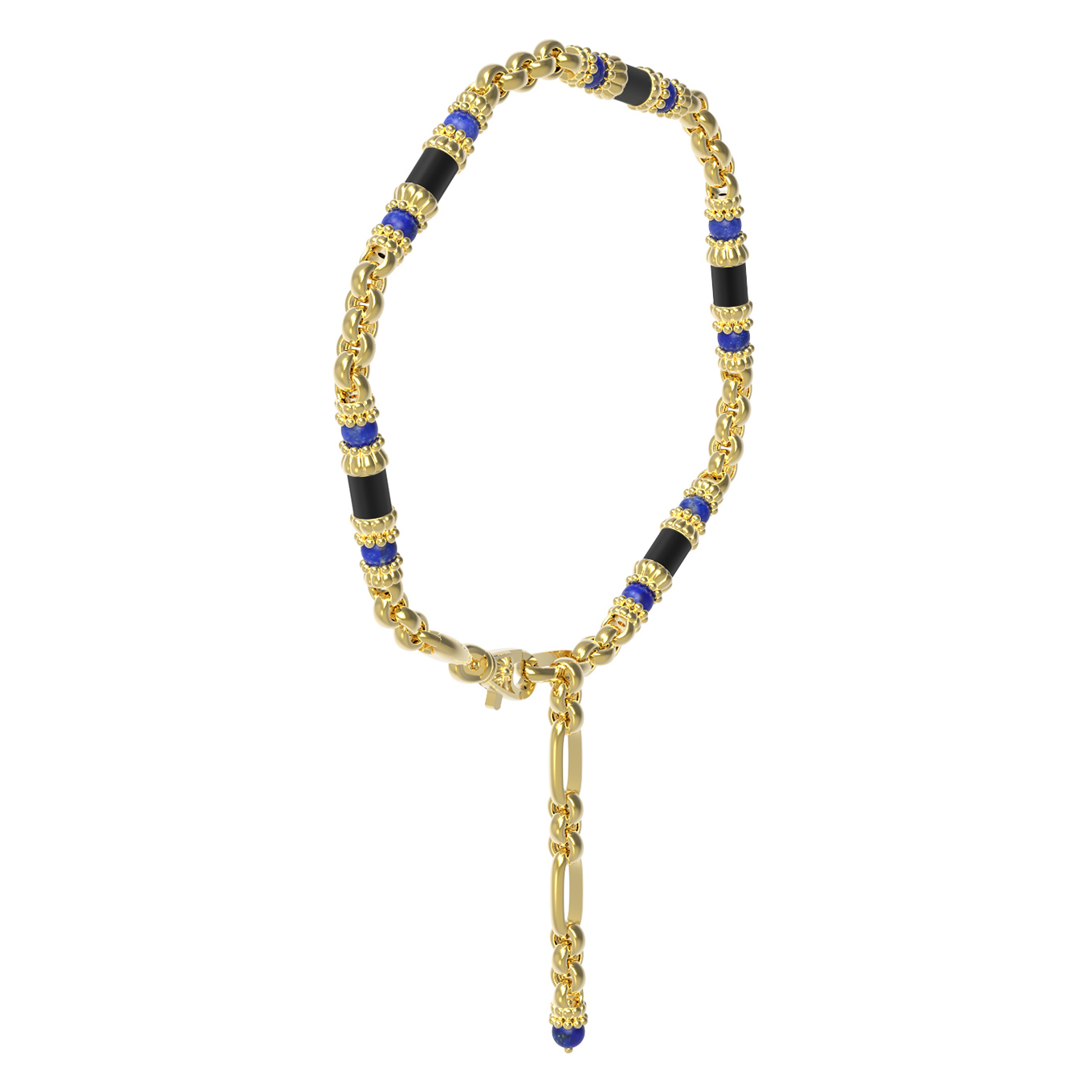 Цепь из лимонного золота c ониксом и лазуритом