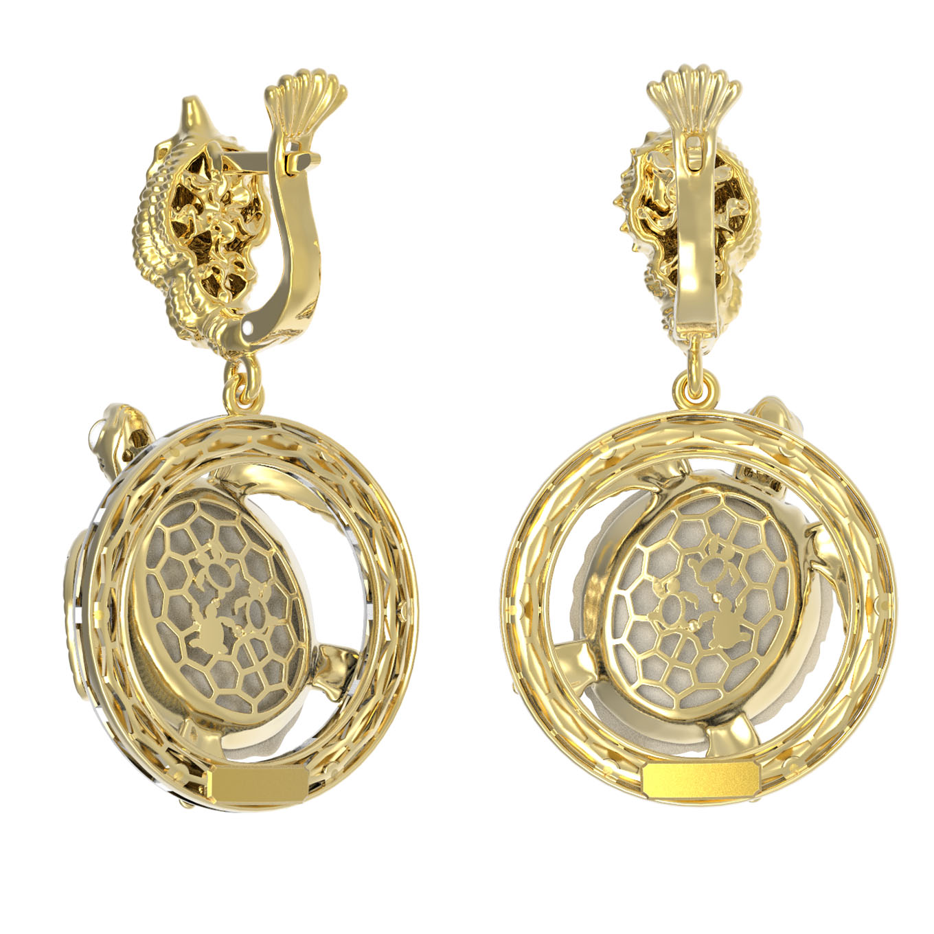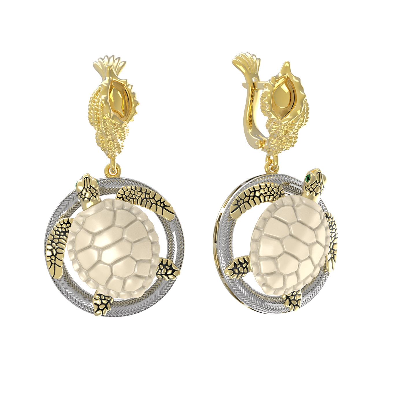 Серьги из лимонного золота c эмаль и бивнем мамонта
