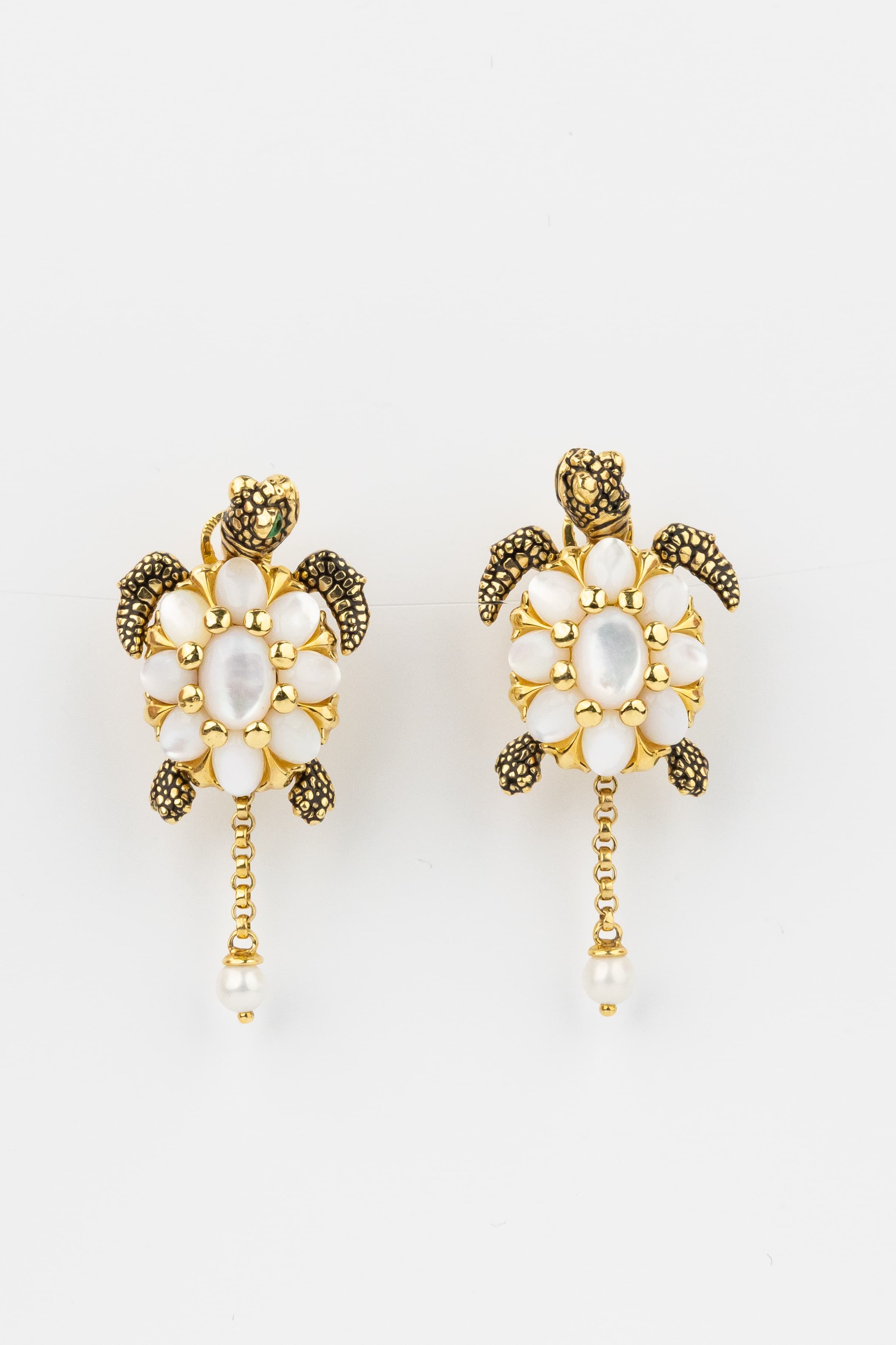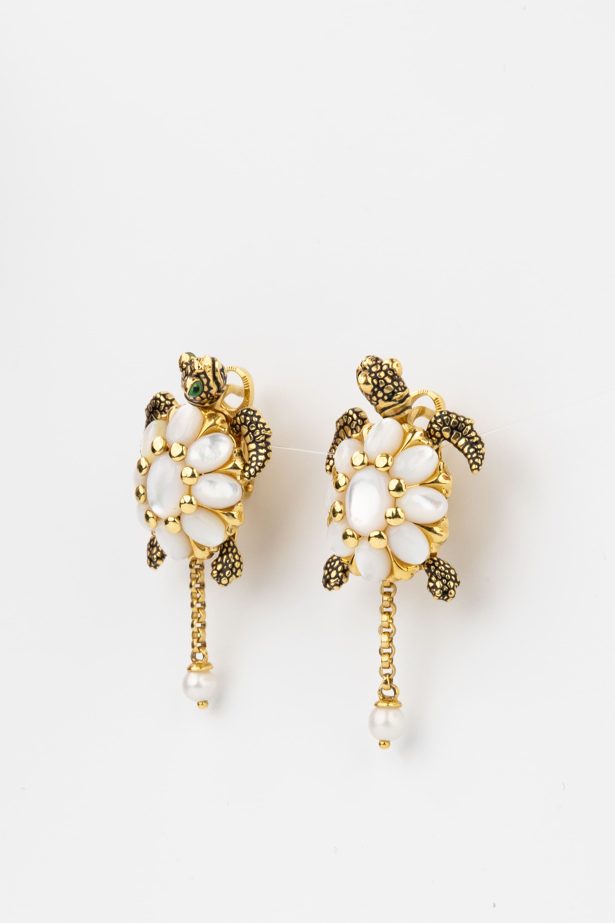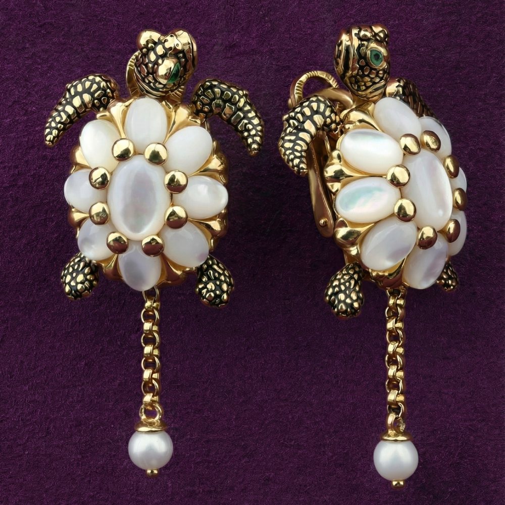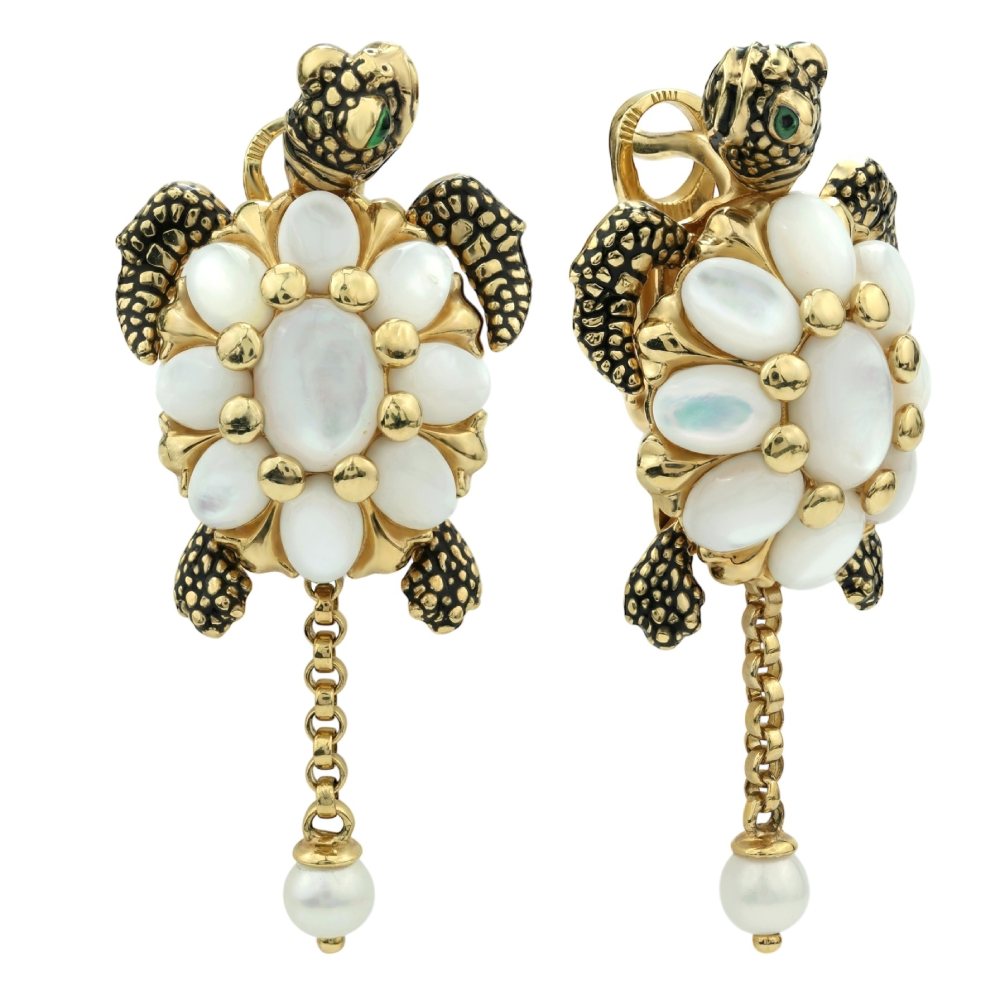 Серьги из лимонного золота c эмаль , жемчугом и перламутром