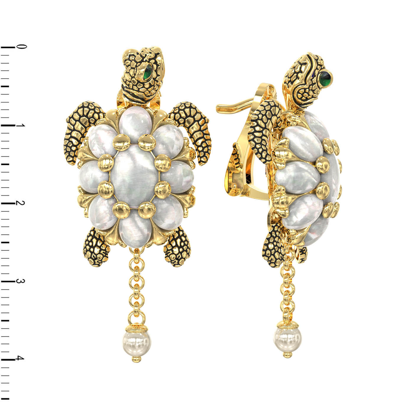 Серьги из лимонного золота c эмаль, жемчугом и перламутром