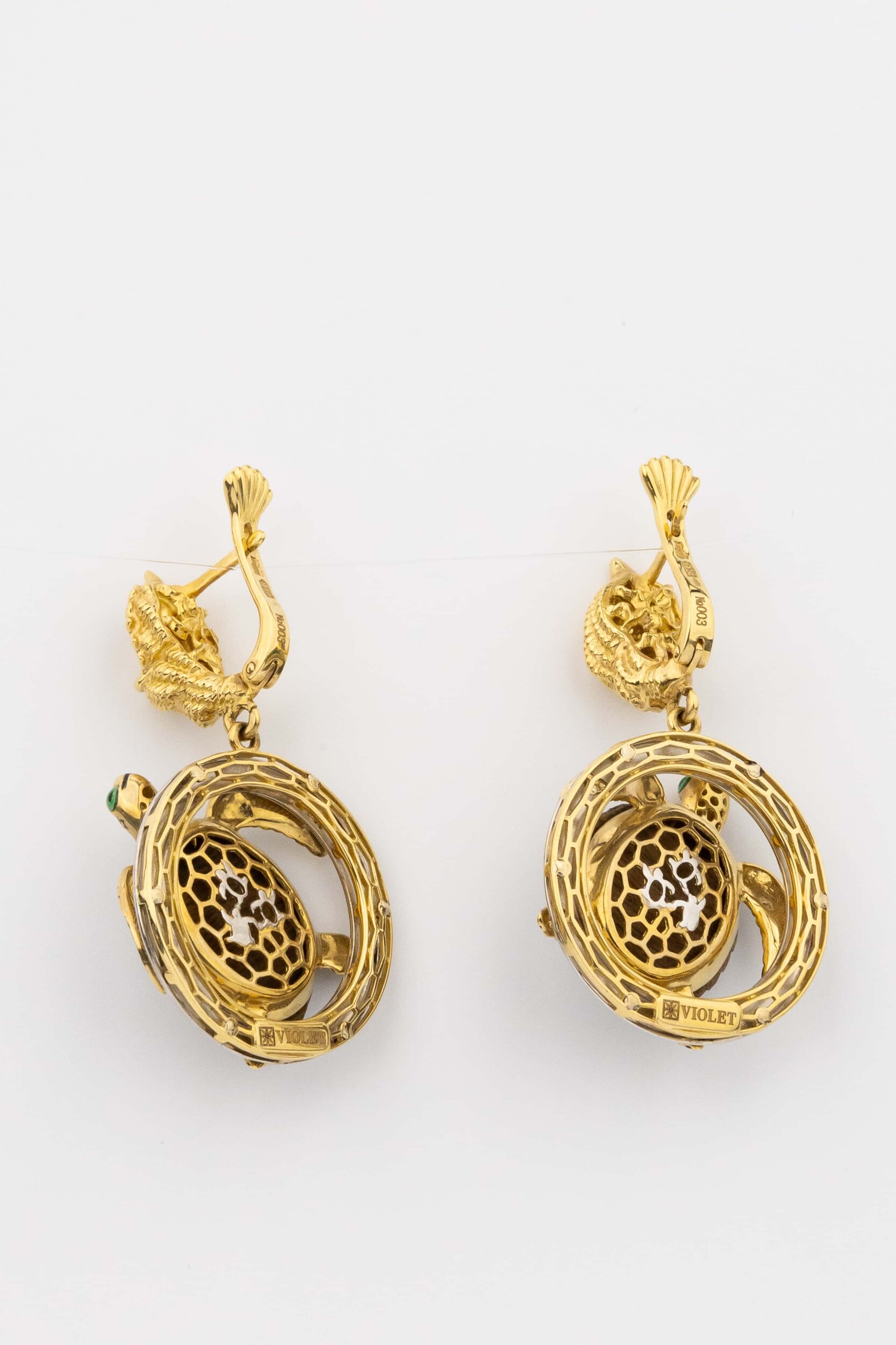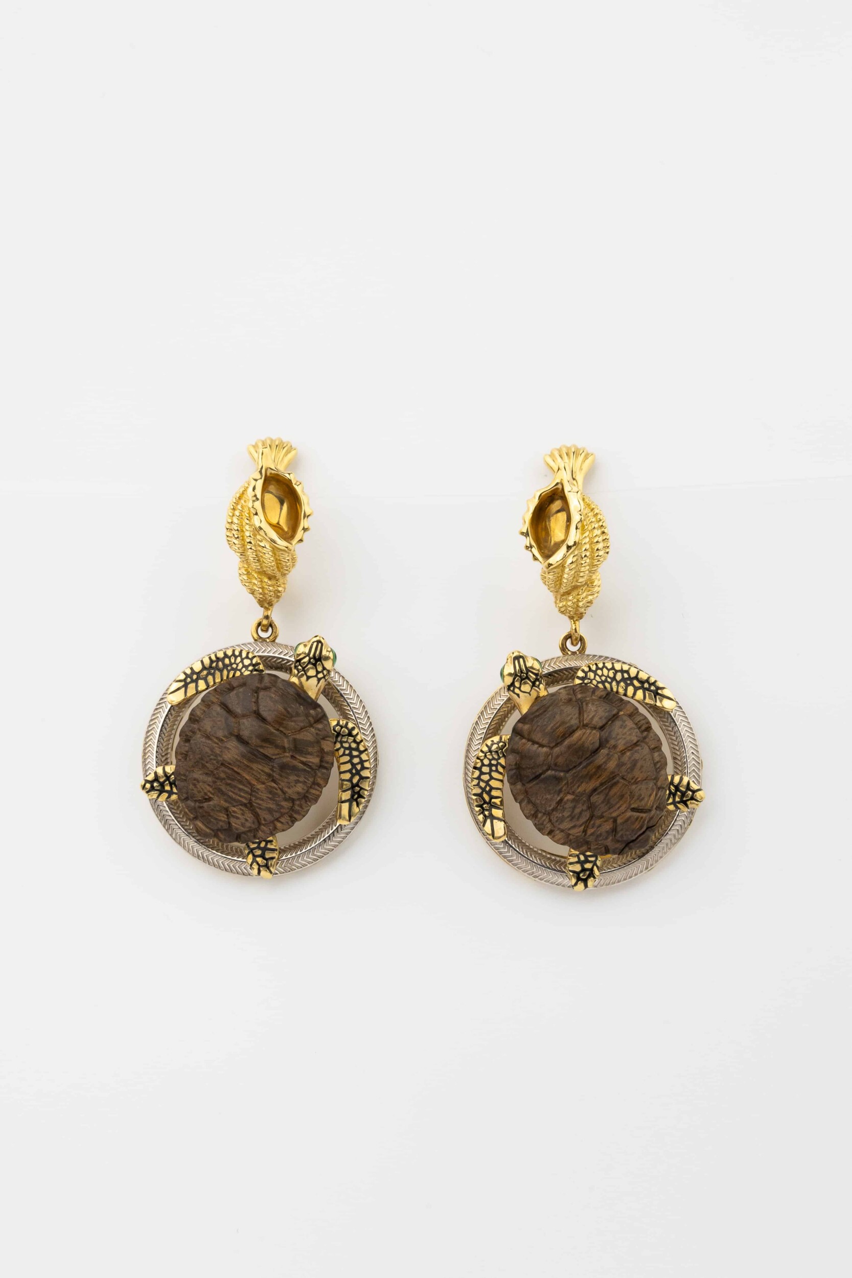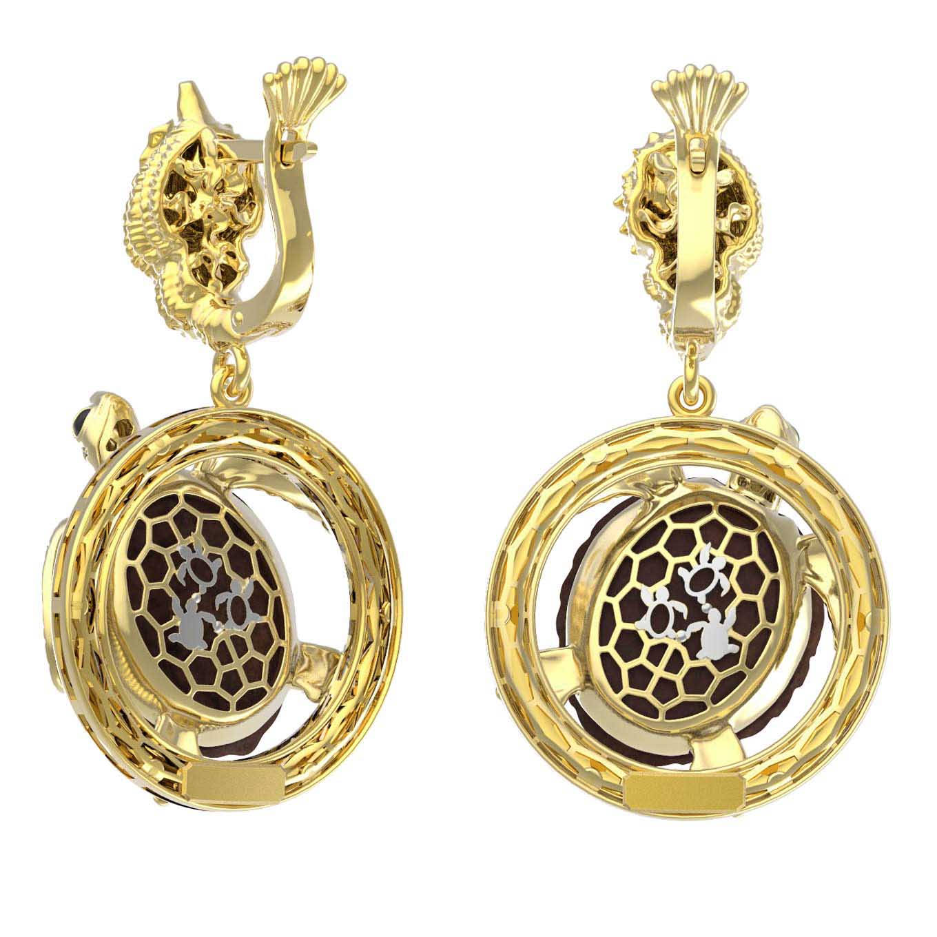 Серьги из лимонного золота c эмаль и железным деревом