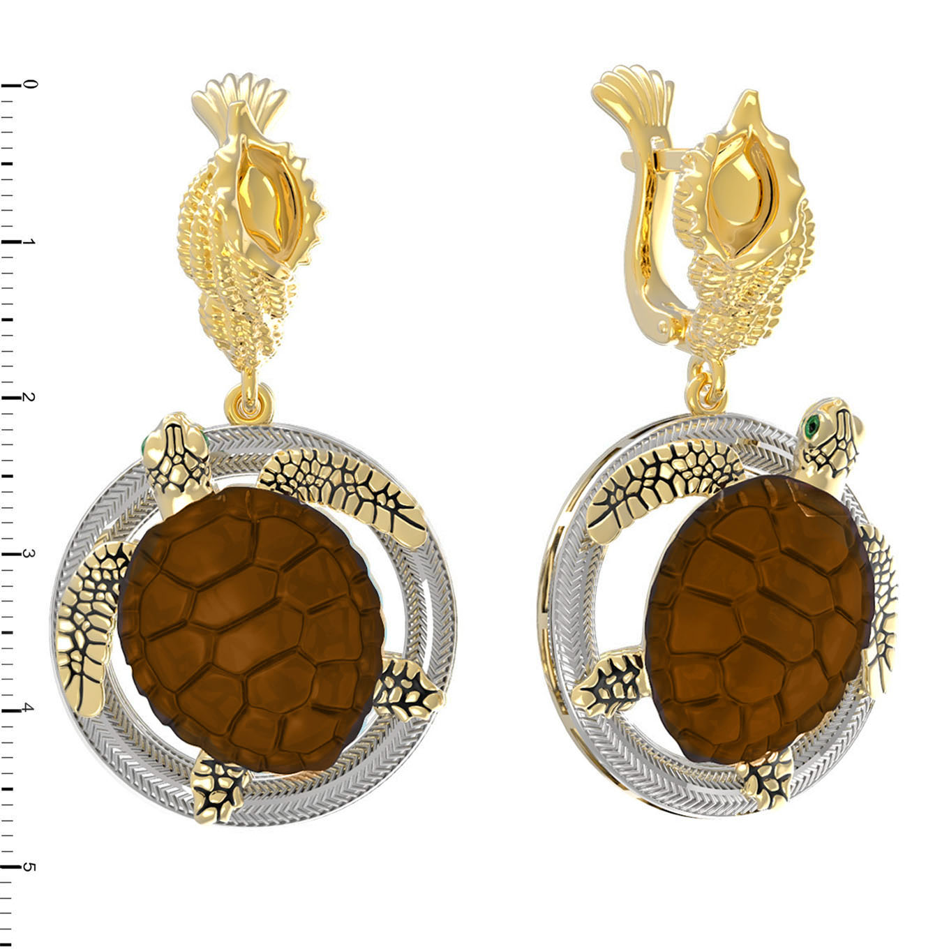 Серьги из лимонного золота c эмаль и железным деревом
