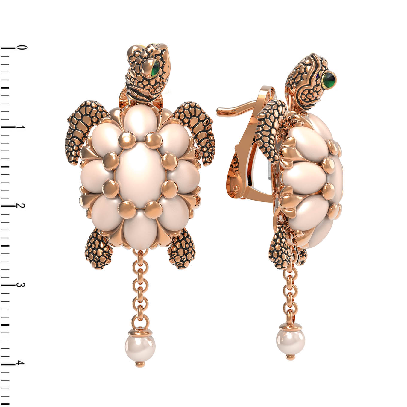 Серьги из золота c эмаль, жемчугом и бивнем мамонта