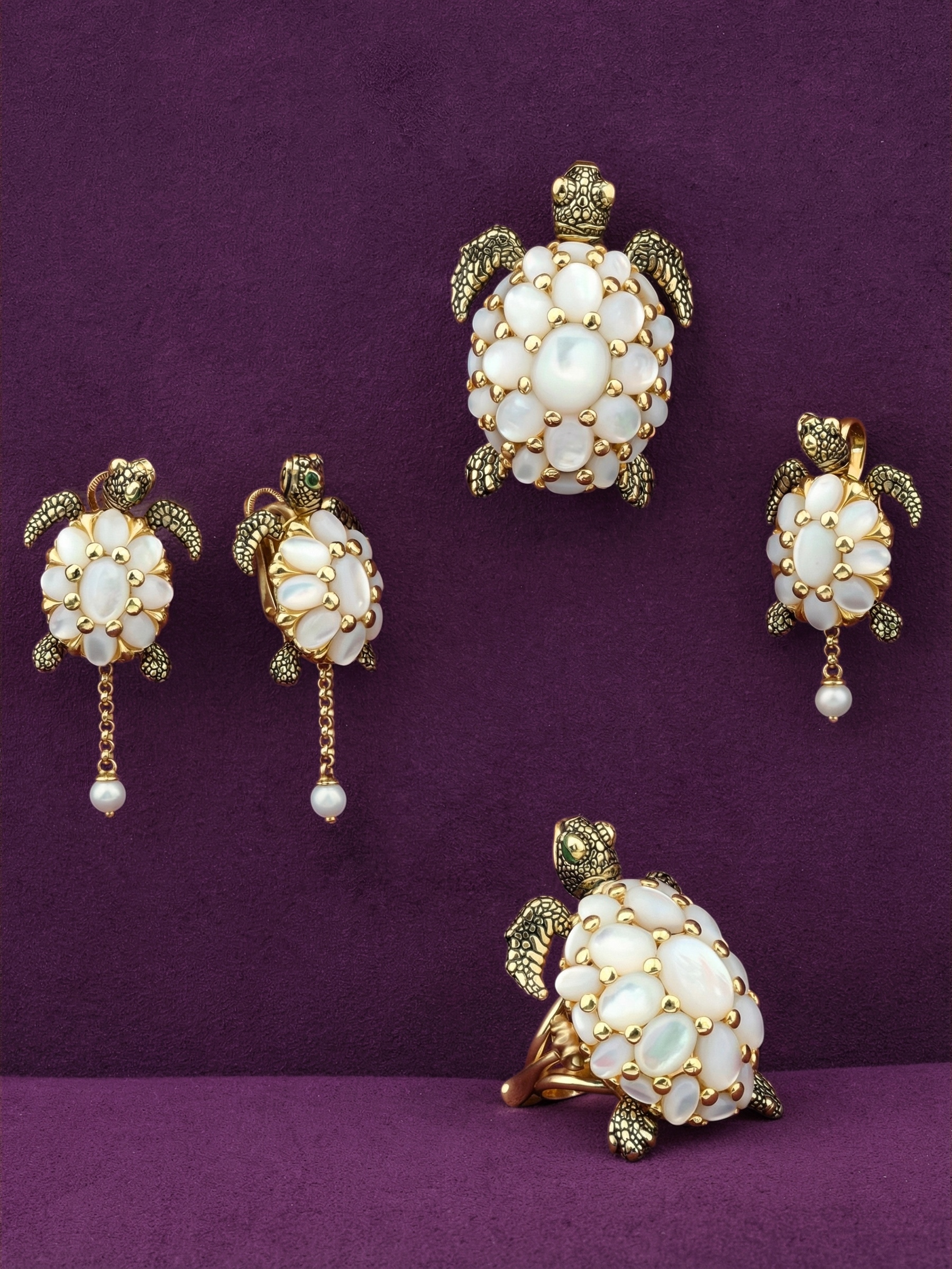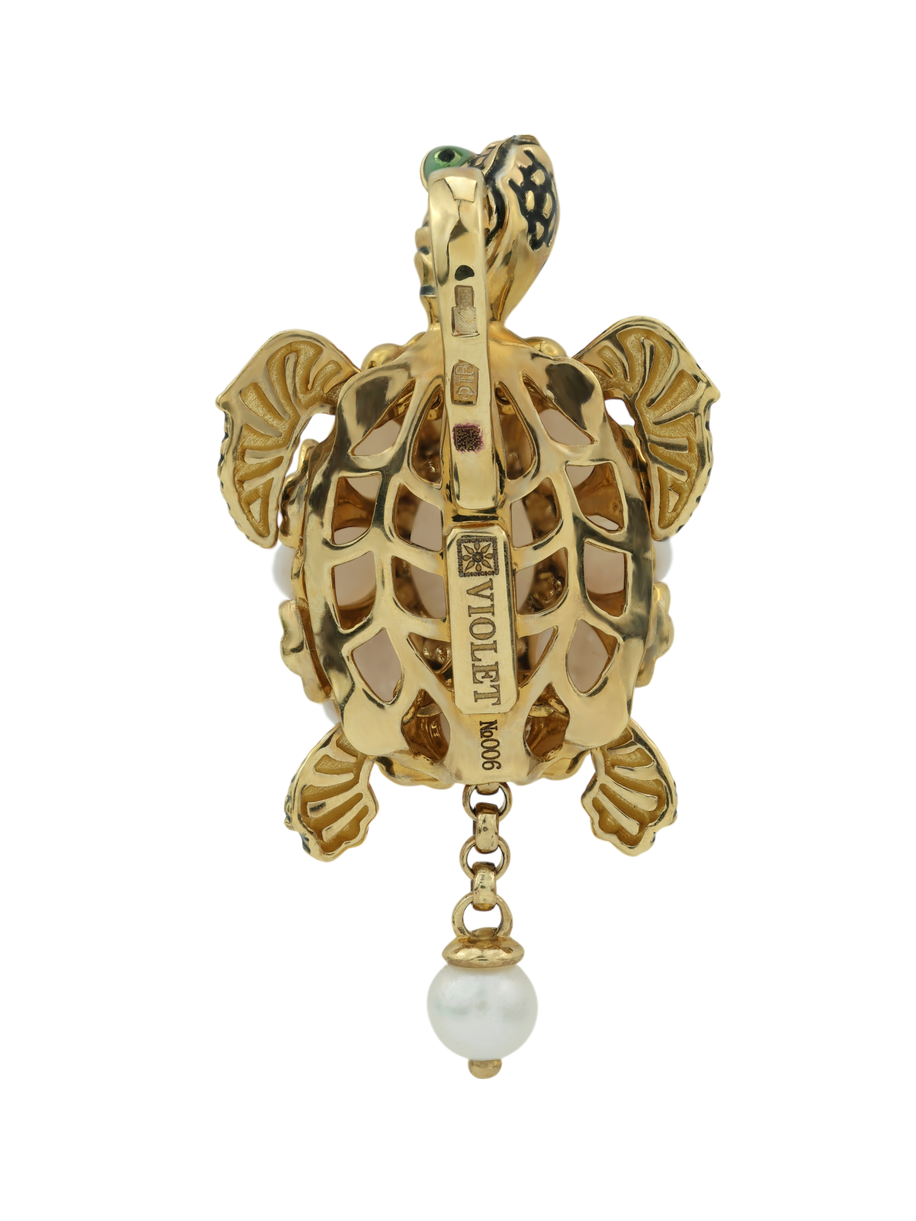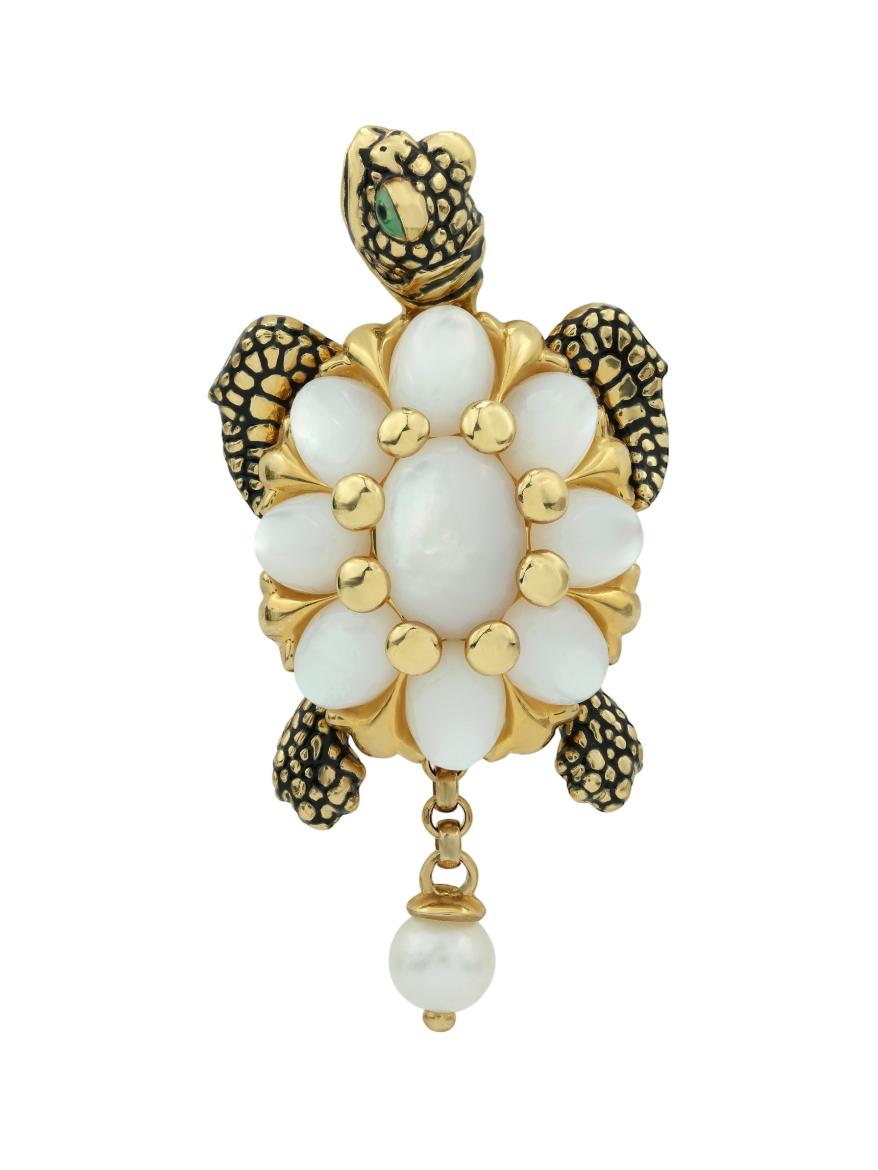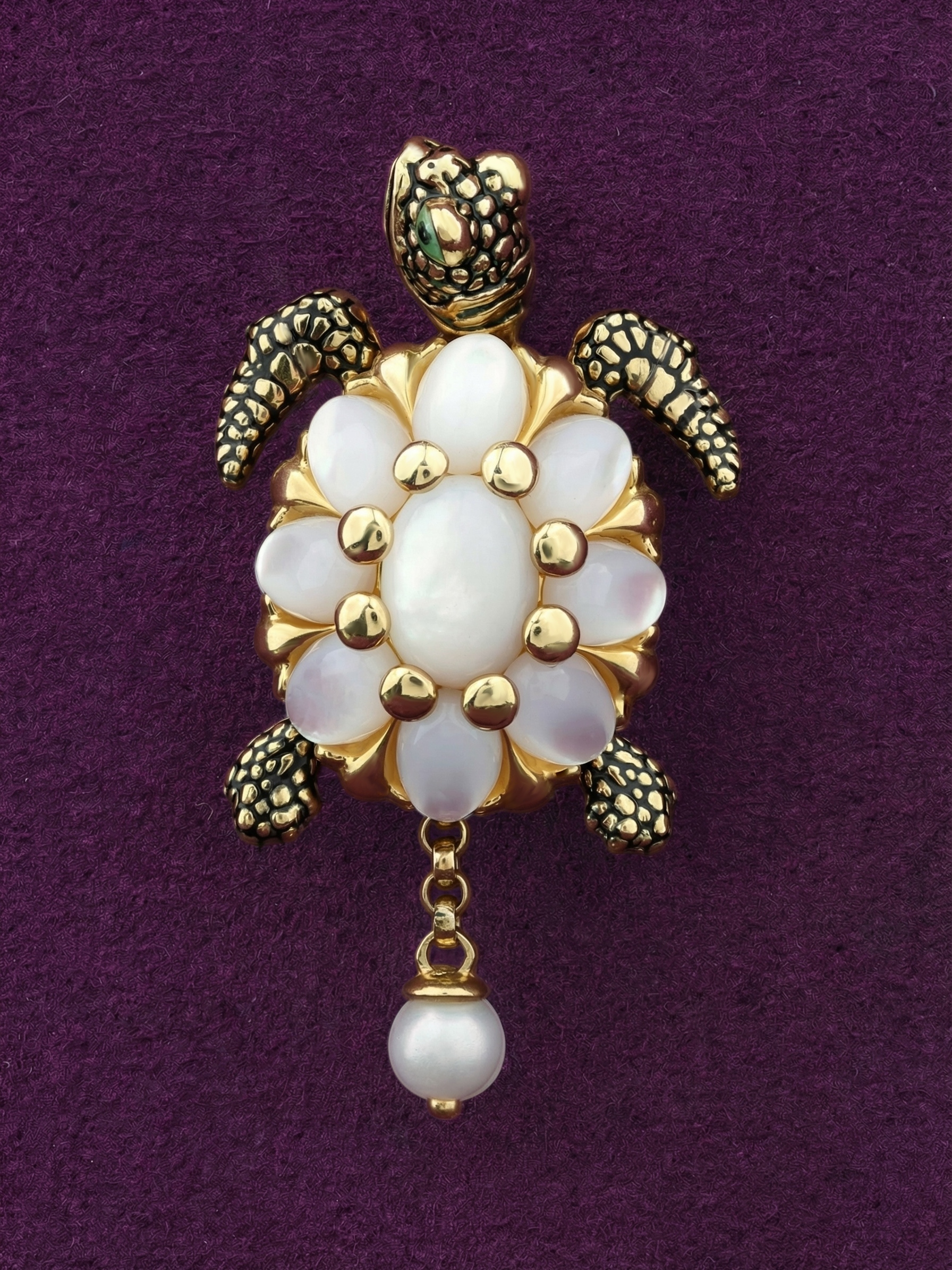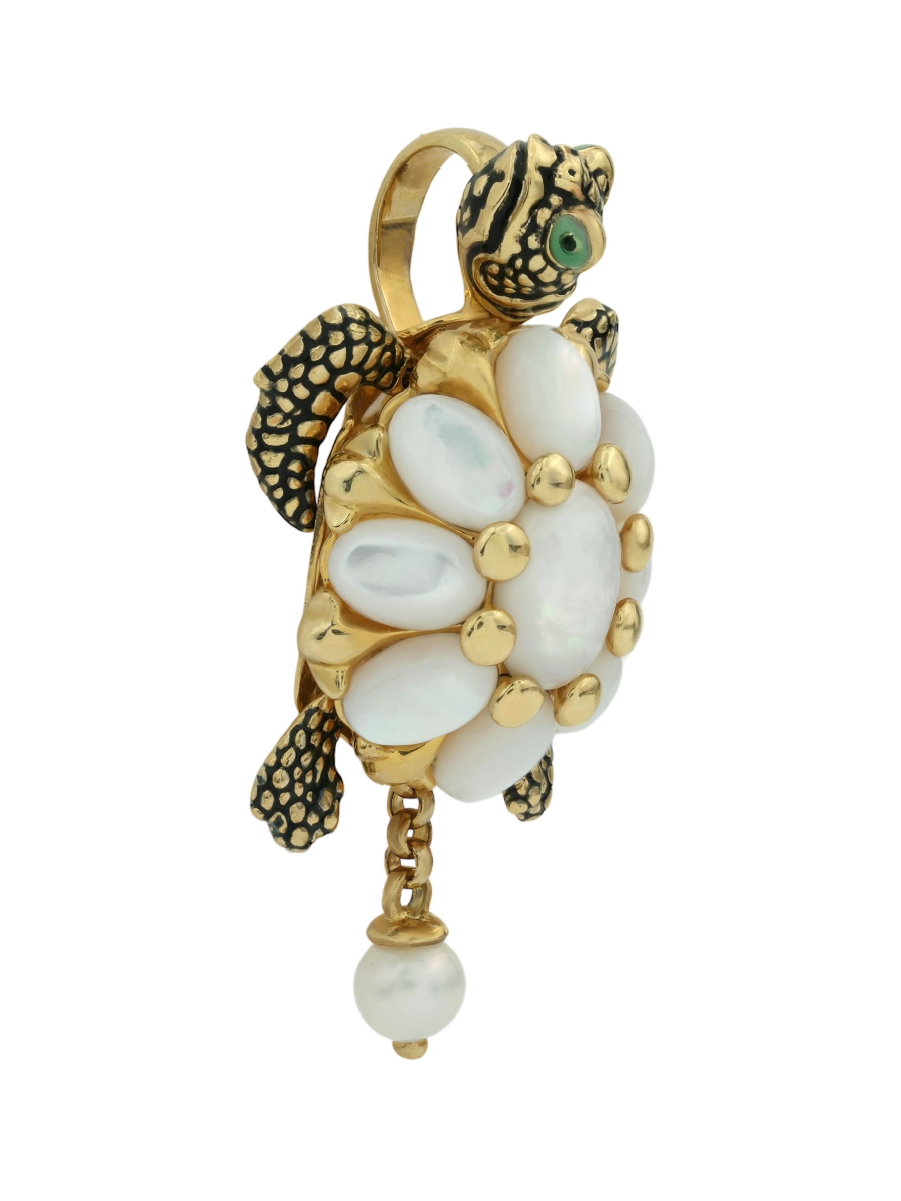 Подвеска из лимонного золота c эмаль, жемчугом и перламутром