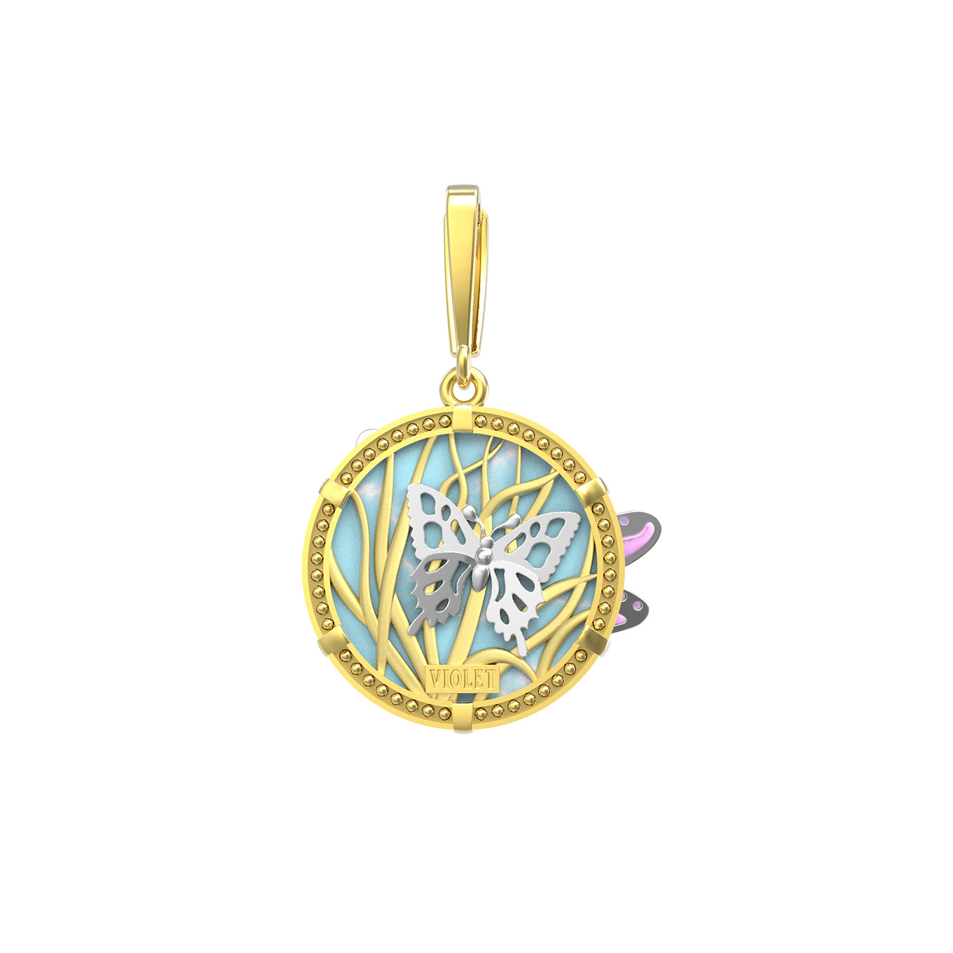 Подвеска из лимонного золота c бирюзой, аметистом и эмалью