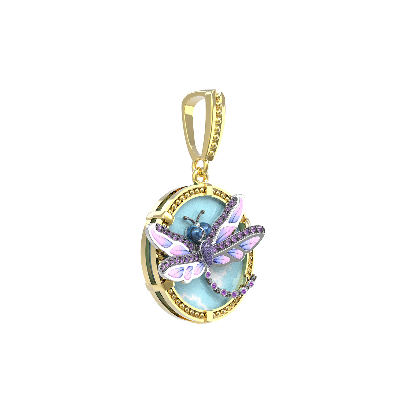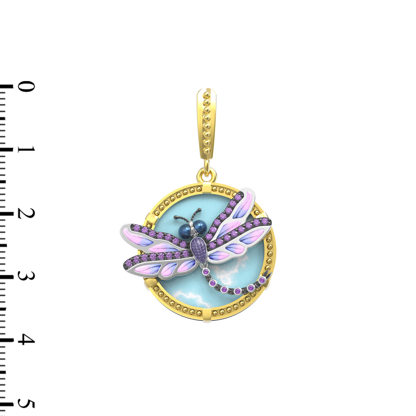 Подвеска из лимонного золота c бирюзой, аметистом и эмалью