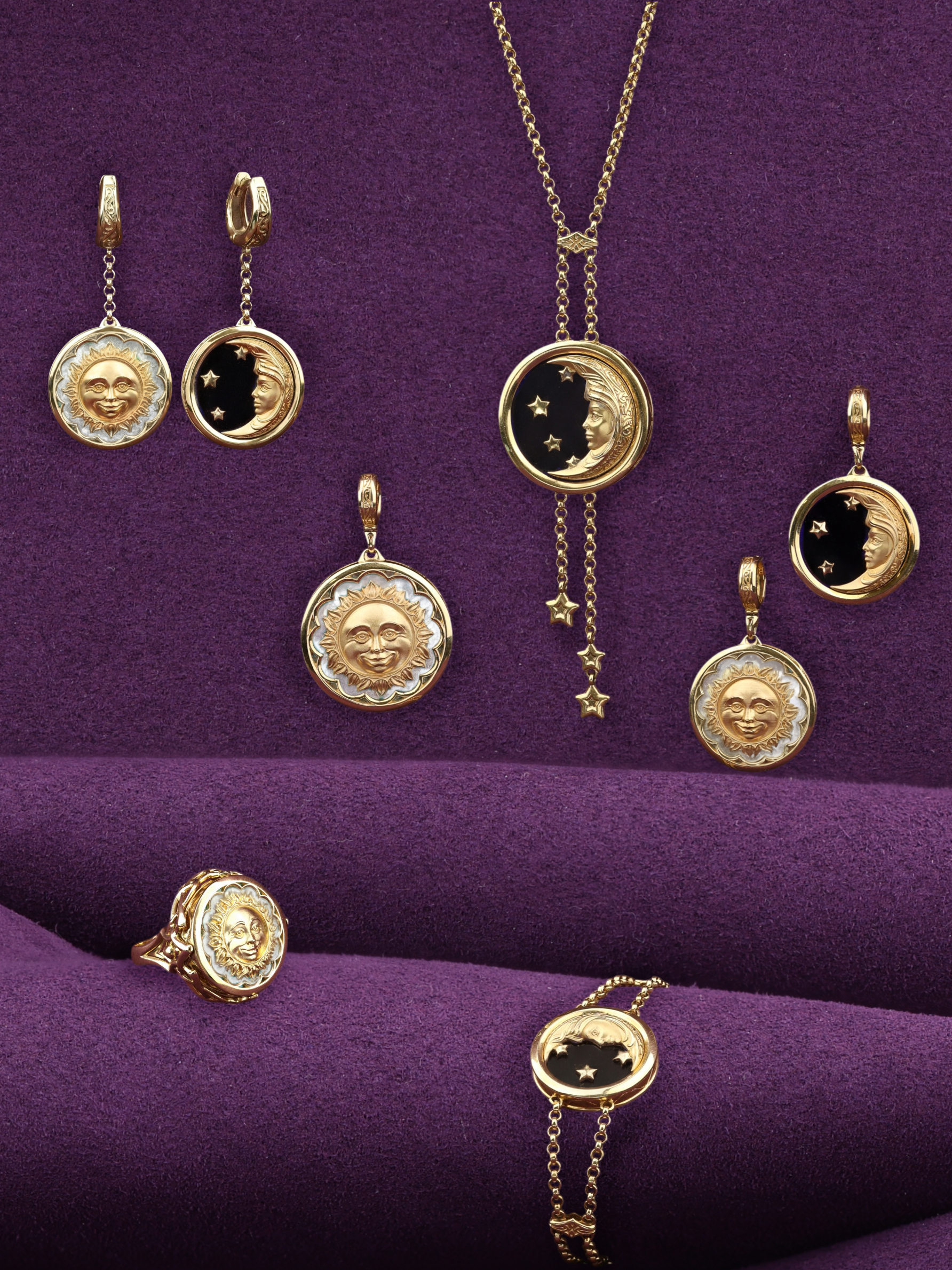 Колье из лимонного золота c ониксом и перламутром