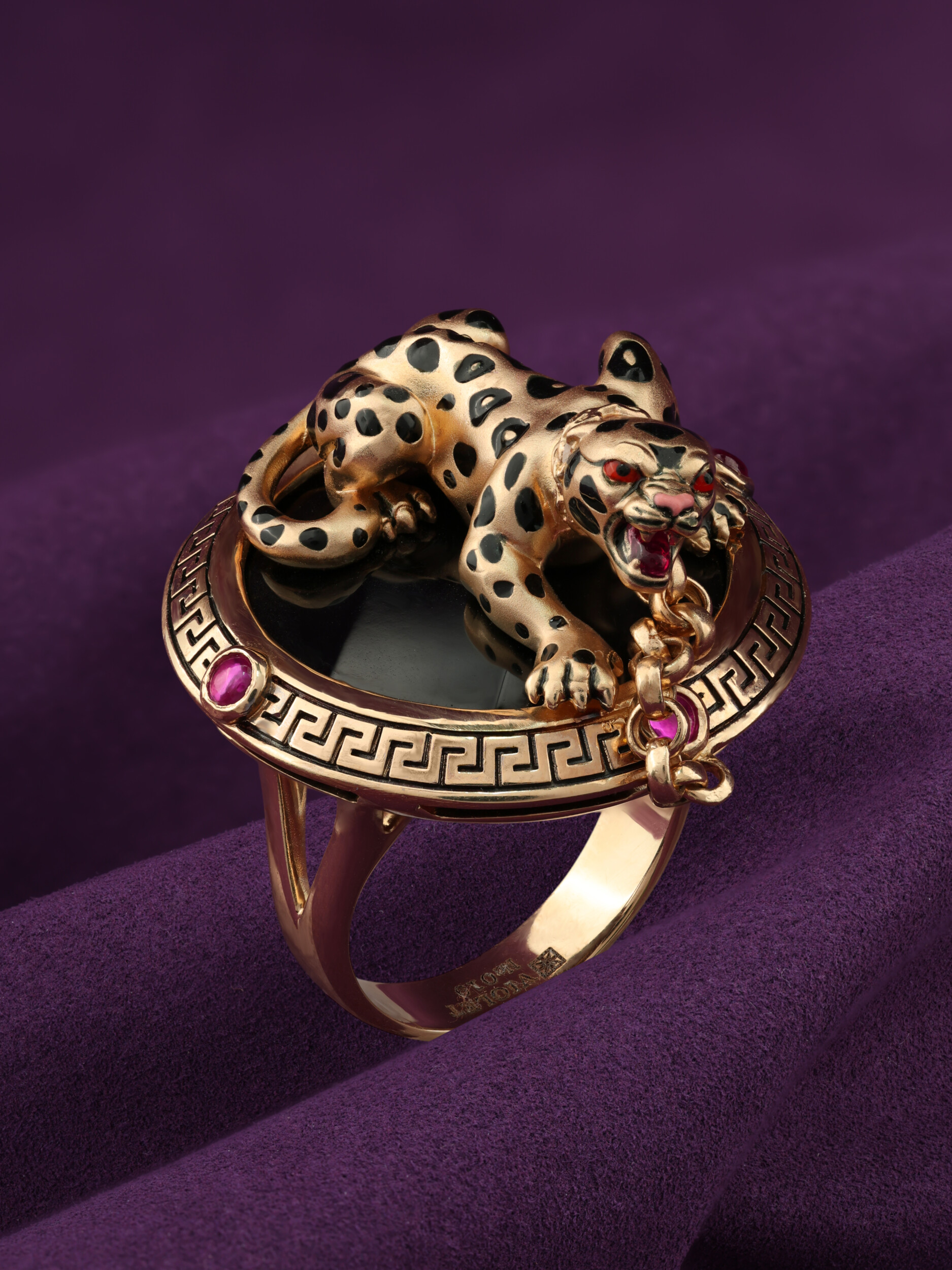 Кольцо из золота c эмаль , ониксом и рубином