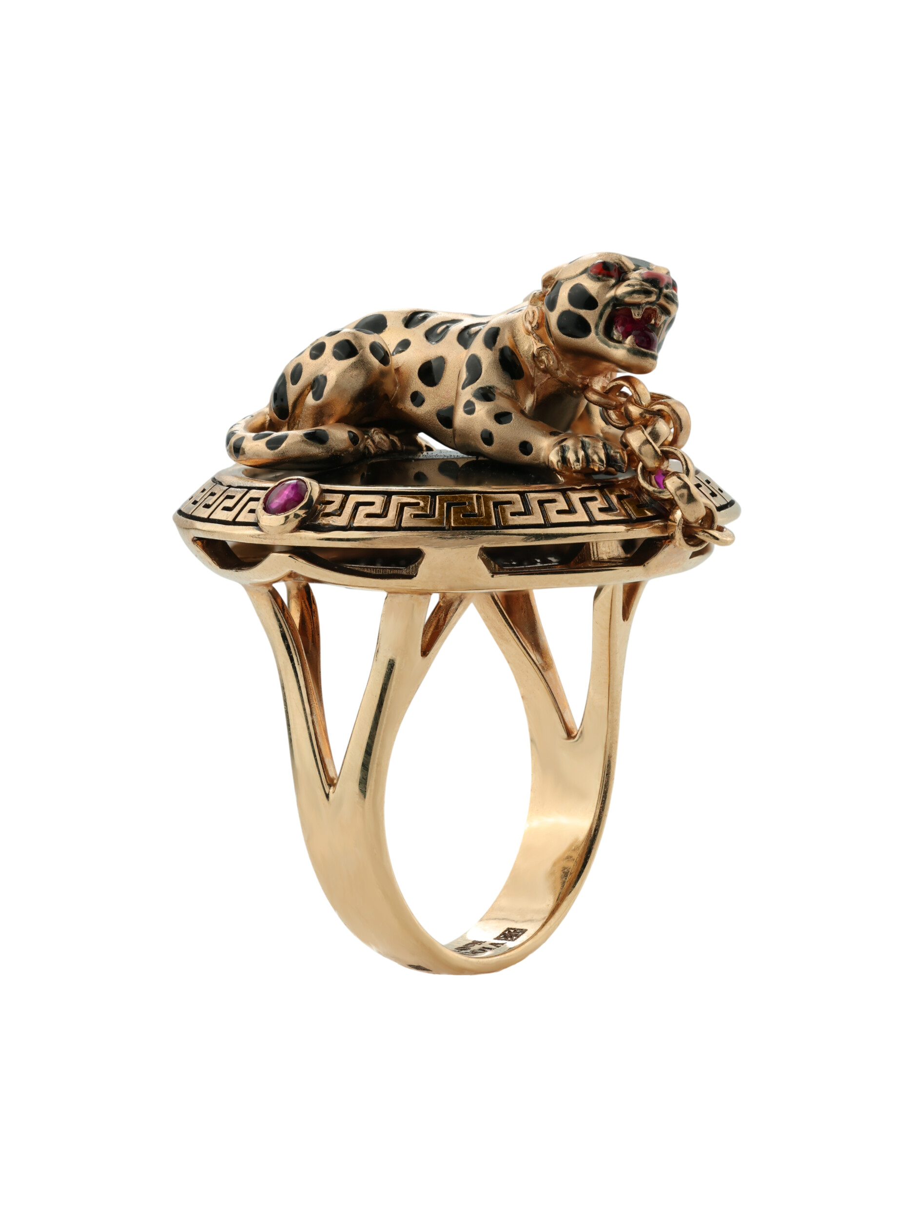 Кольцо из золота c эмаль, ониксом и рубином