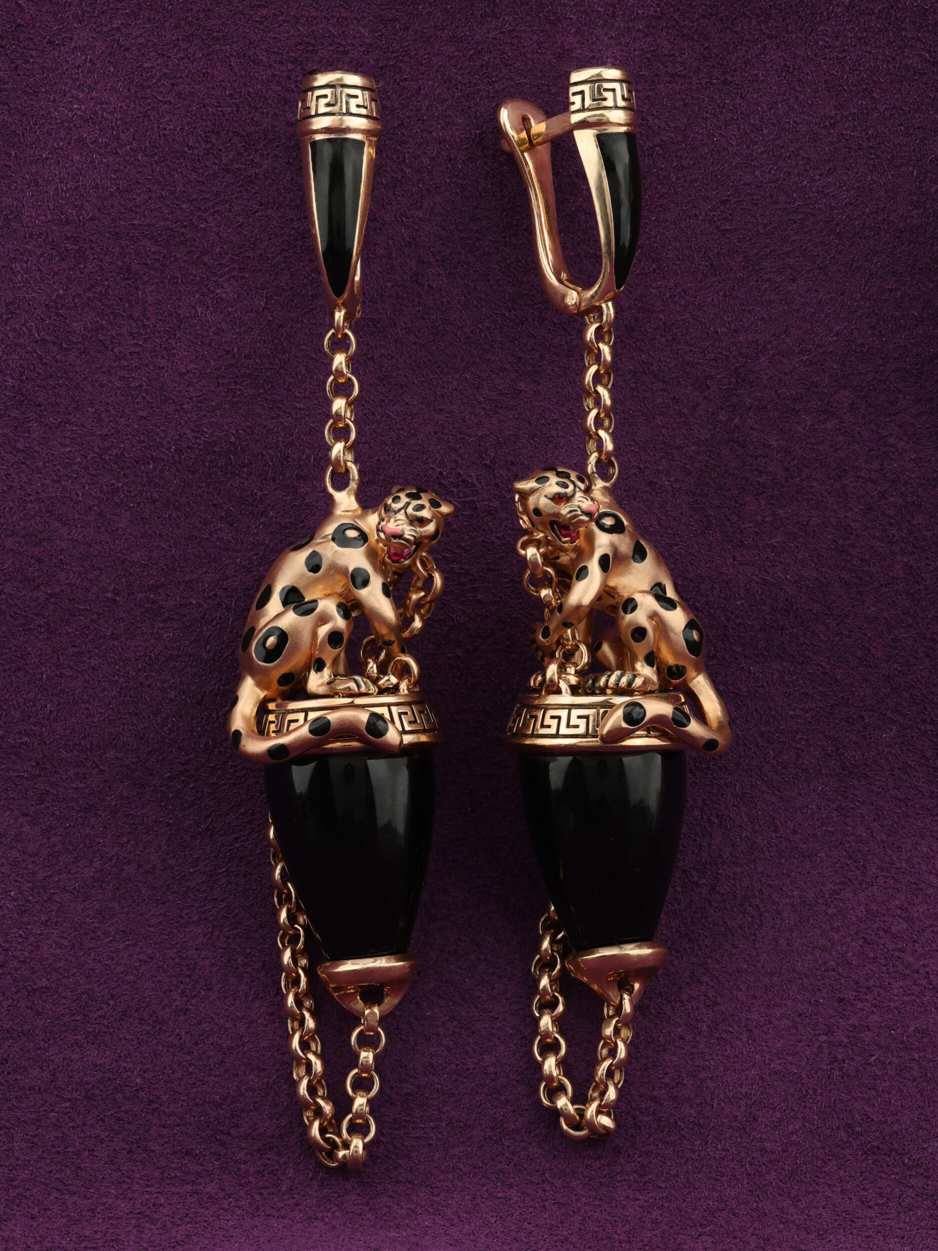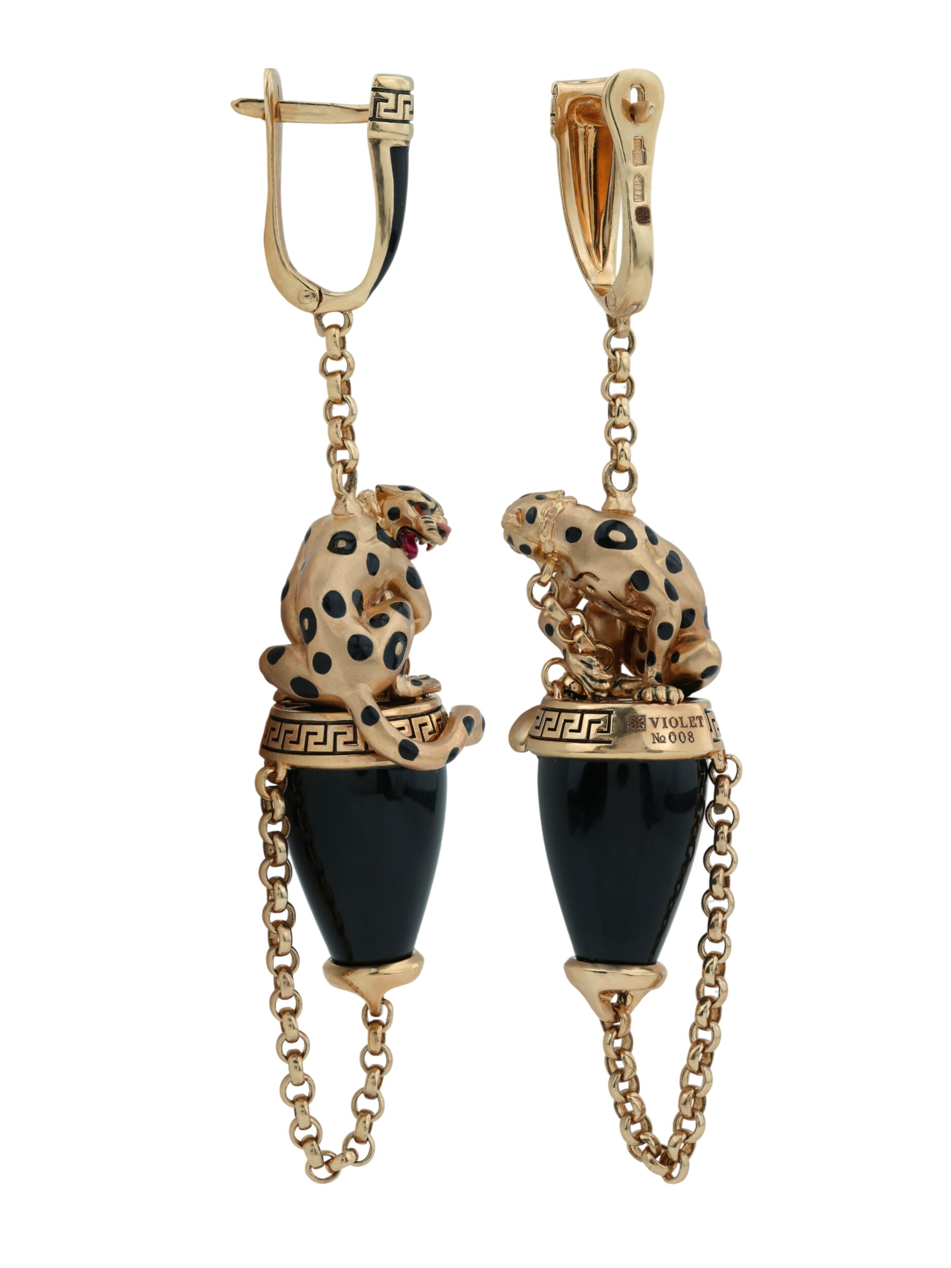 Серьги из золота c эмаль и ониксом