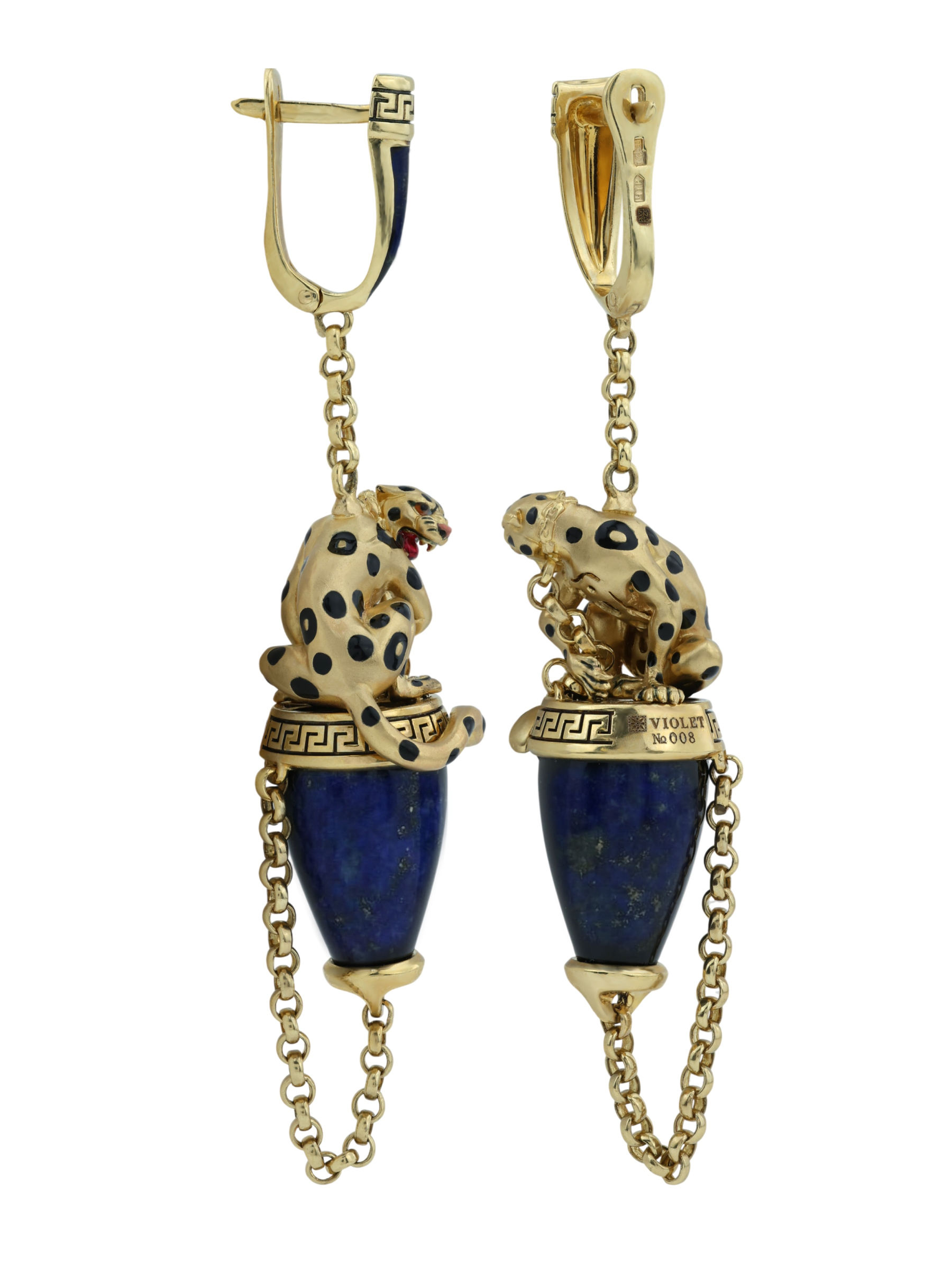 Серьги из лимонного золота c эмаль и лазуритом