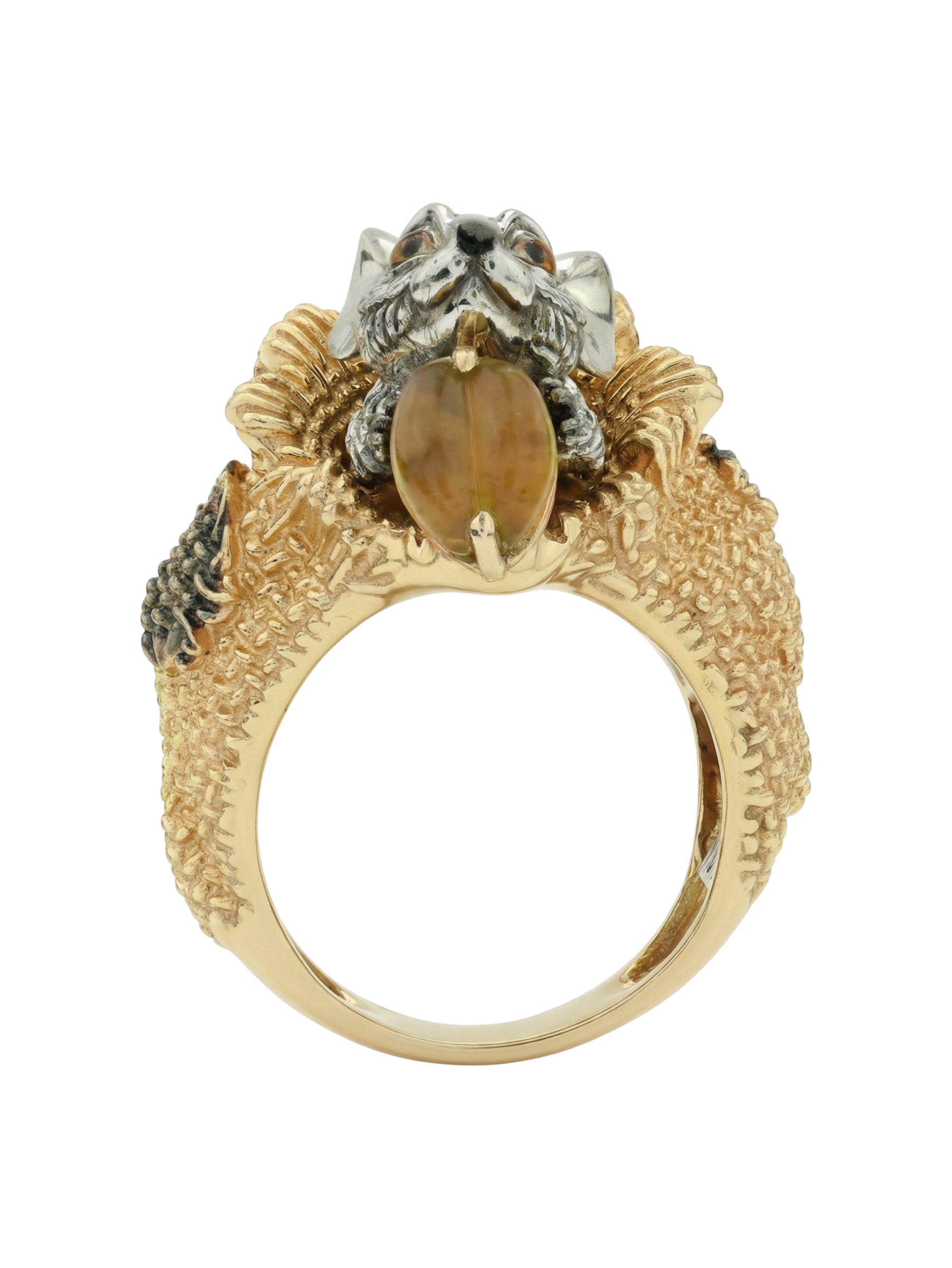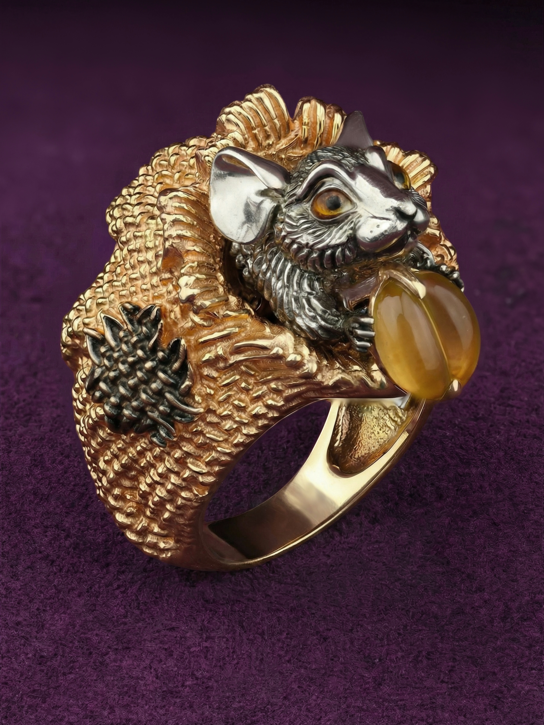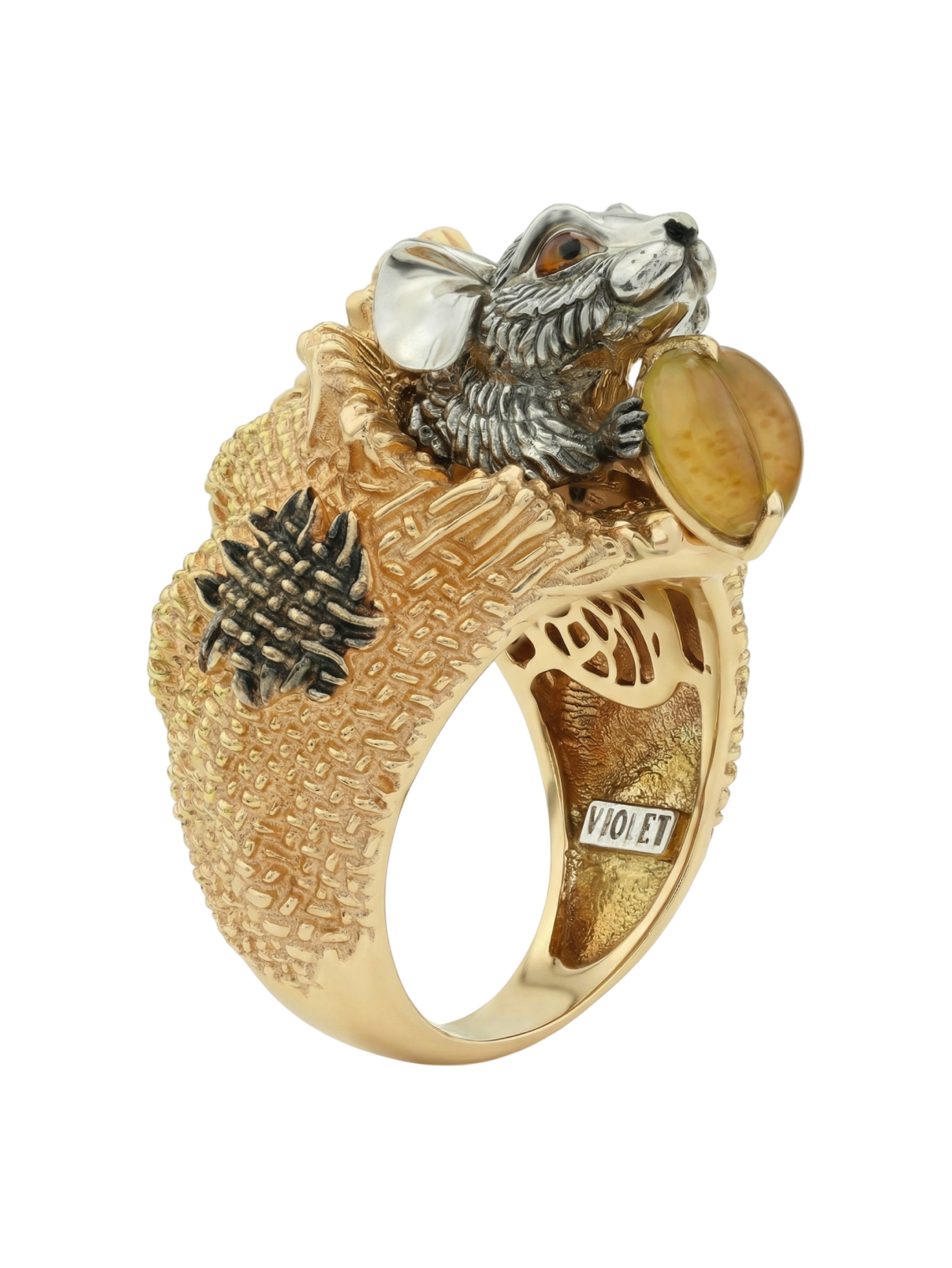 Кольцо из лимонного золота c эмаль и янтарём