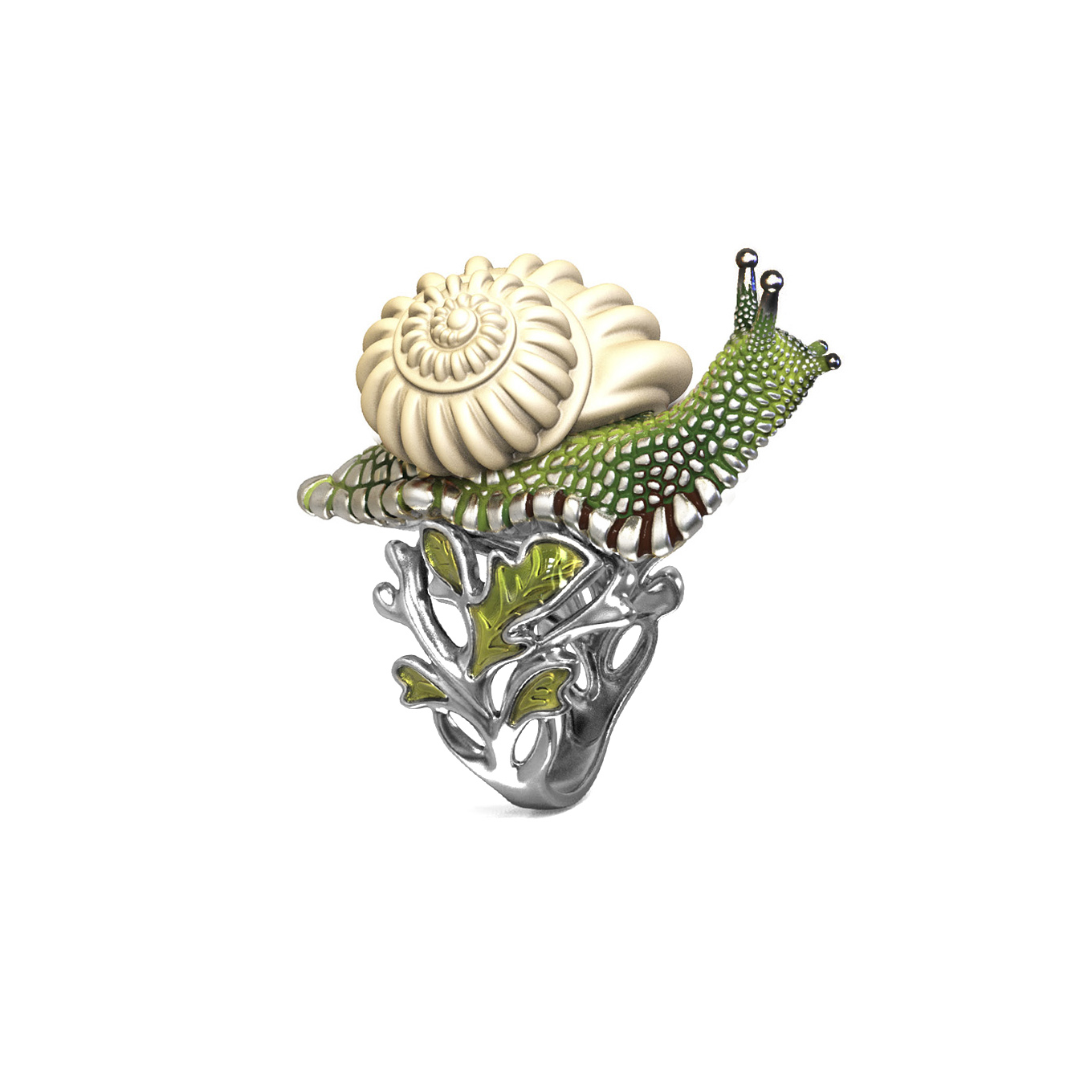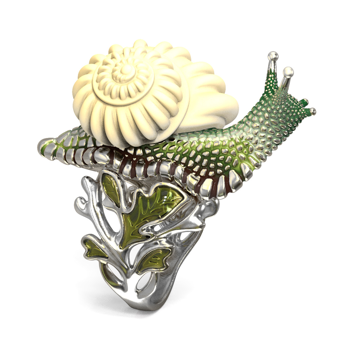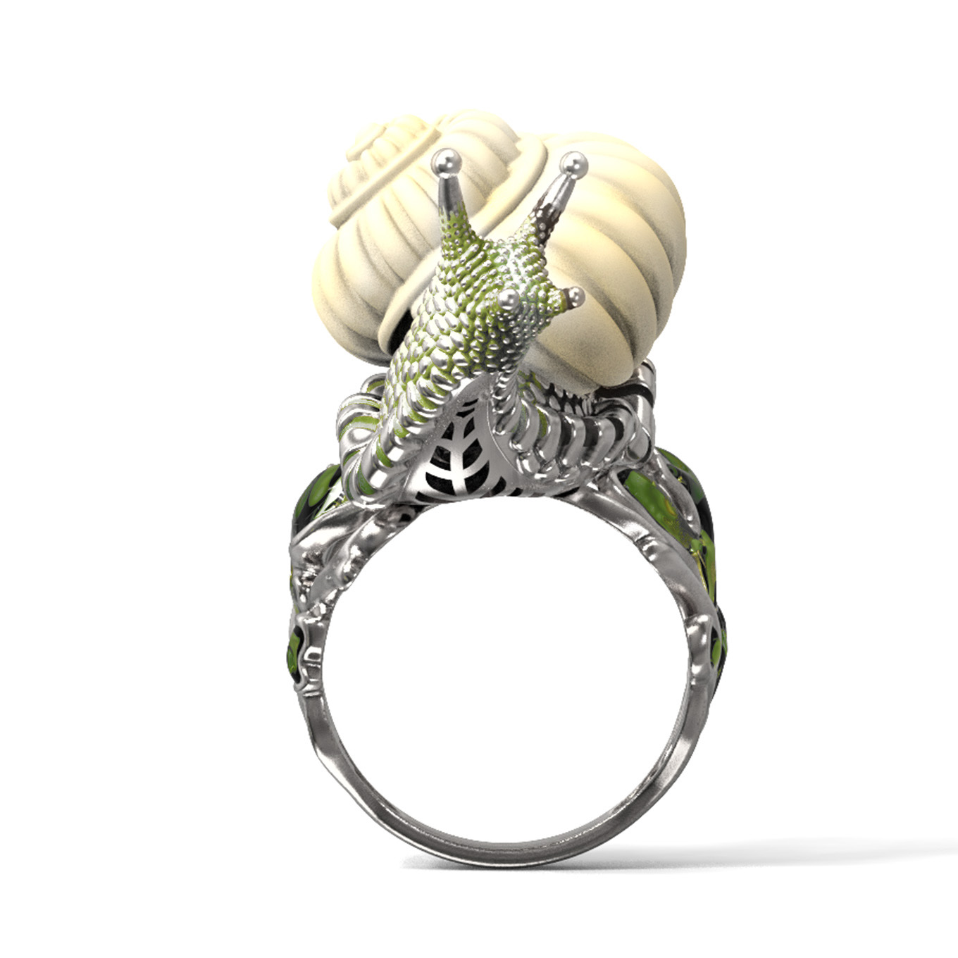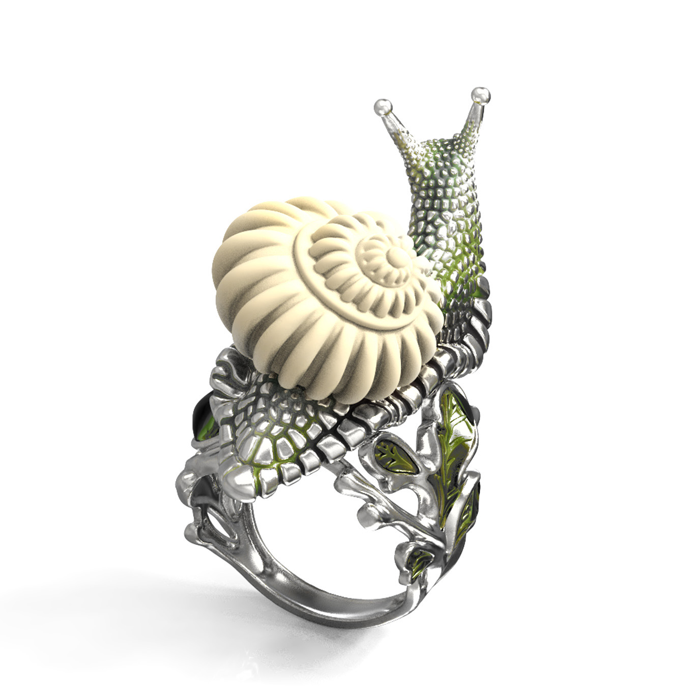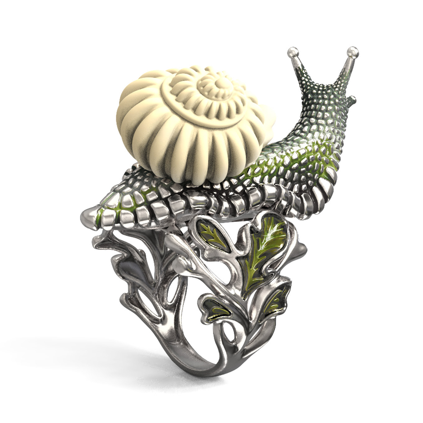 Кольцо из белого золота c эмалью и бивнем мамонта