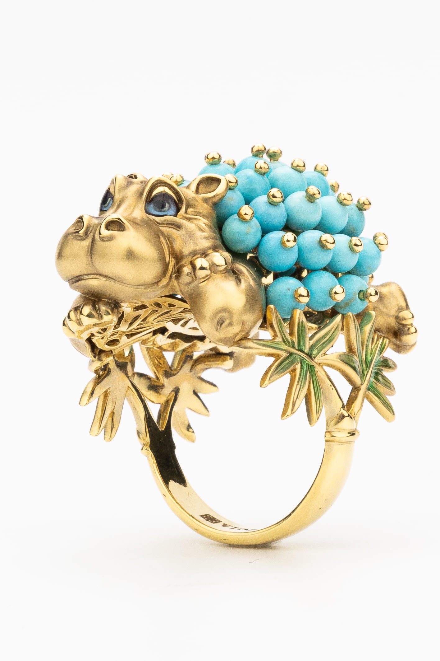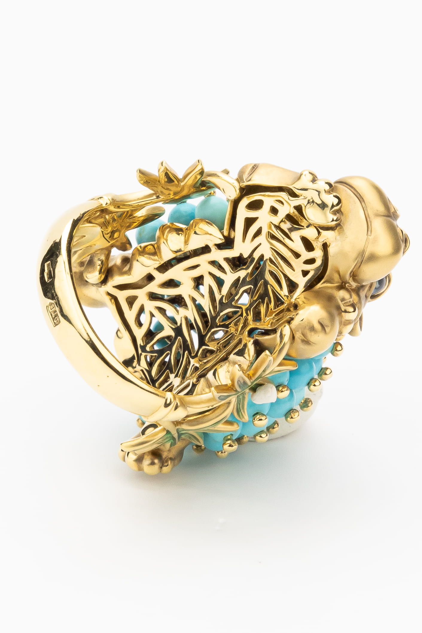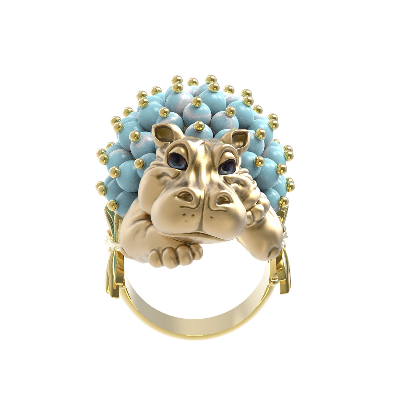 Кольцо из лимонного золота c эмаль и бирюзой