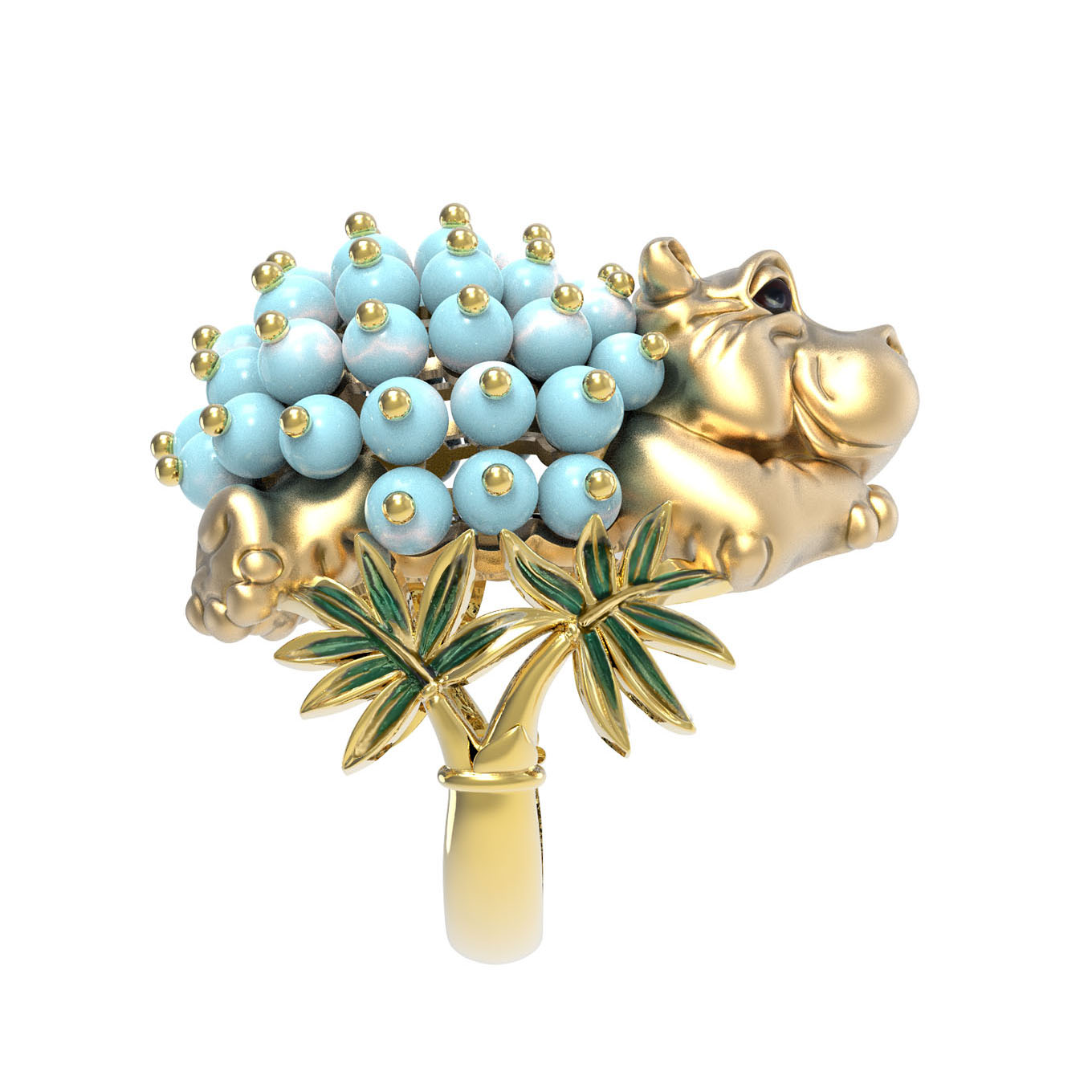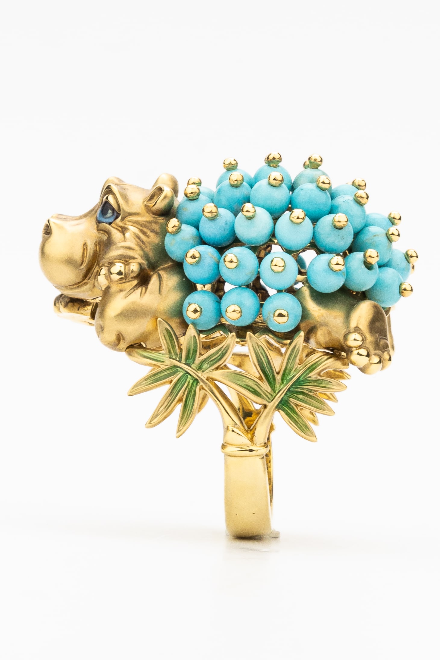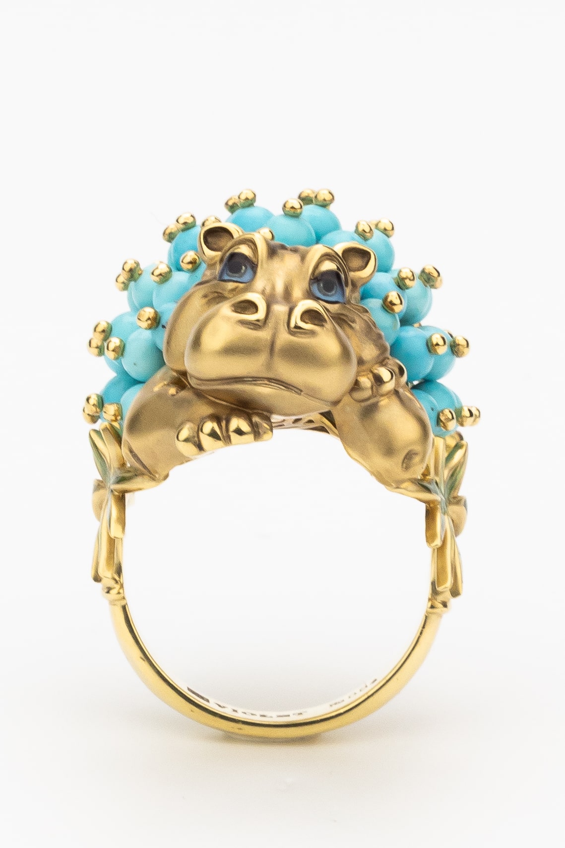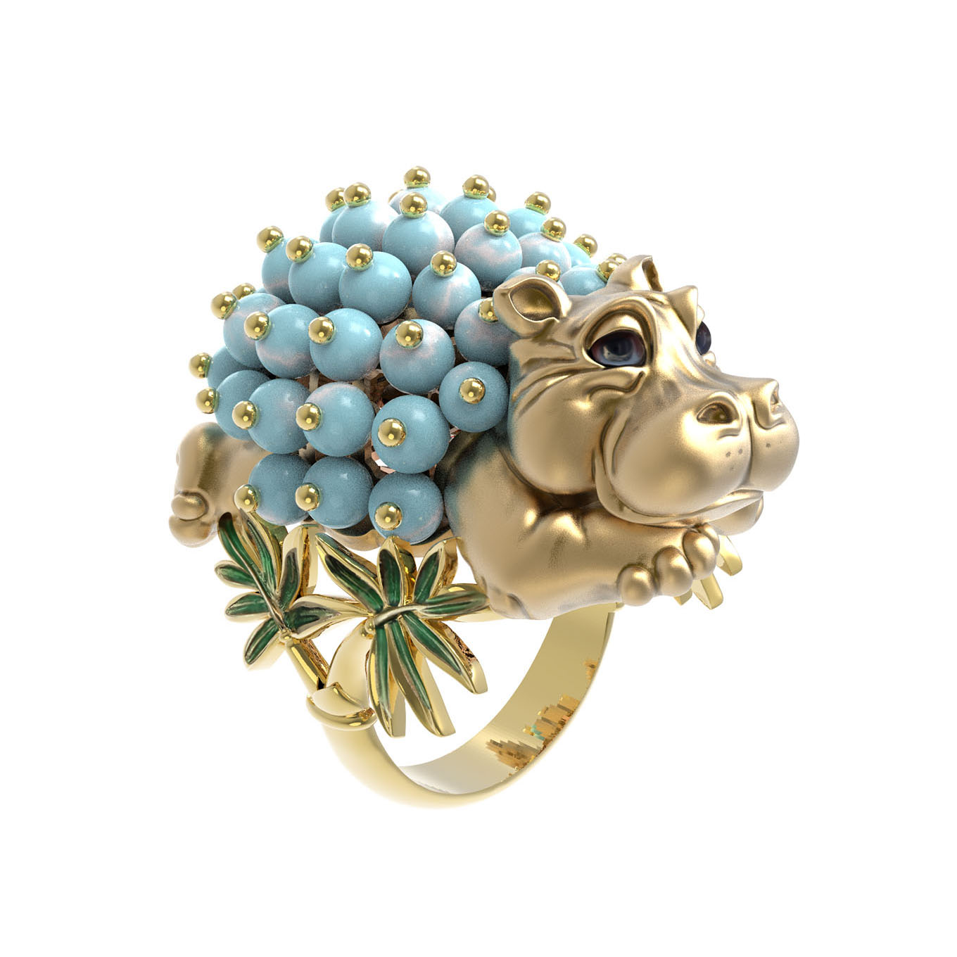 Кольцо из лимонного золота c эмаль и бирюзой