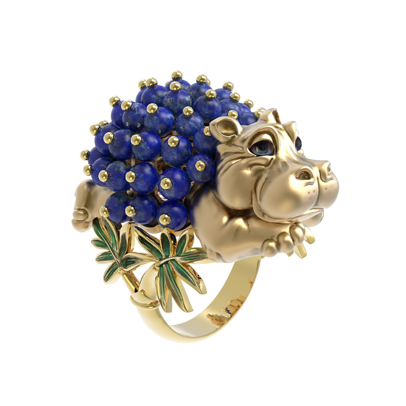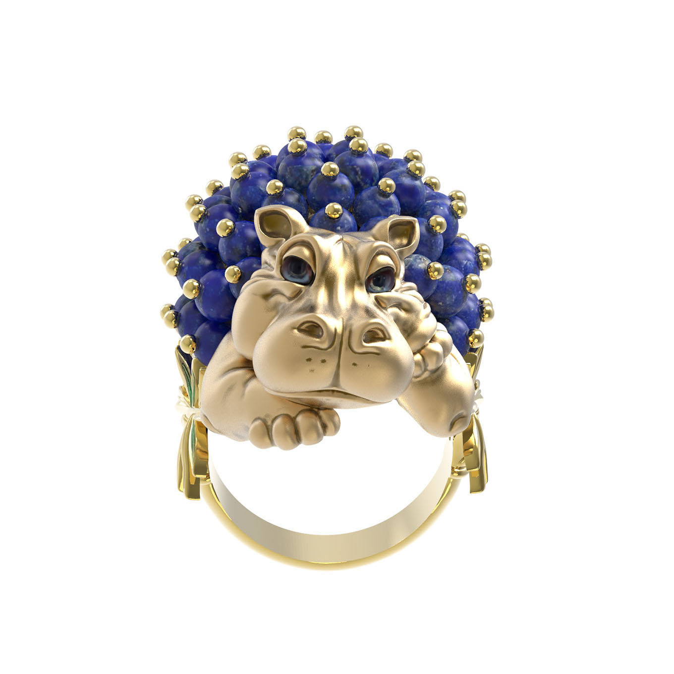 Кольцо из лимонного золота c эмаль и лазуритом