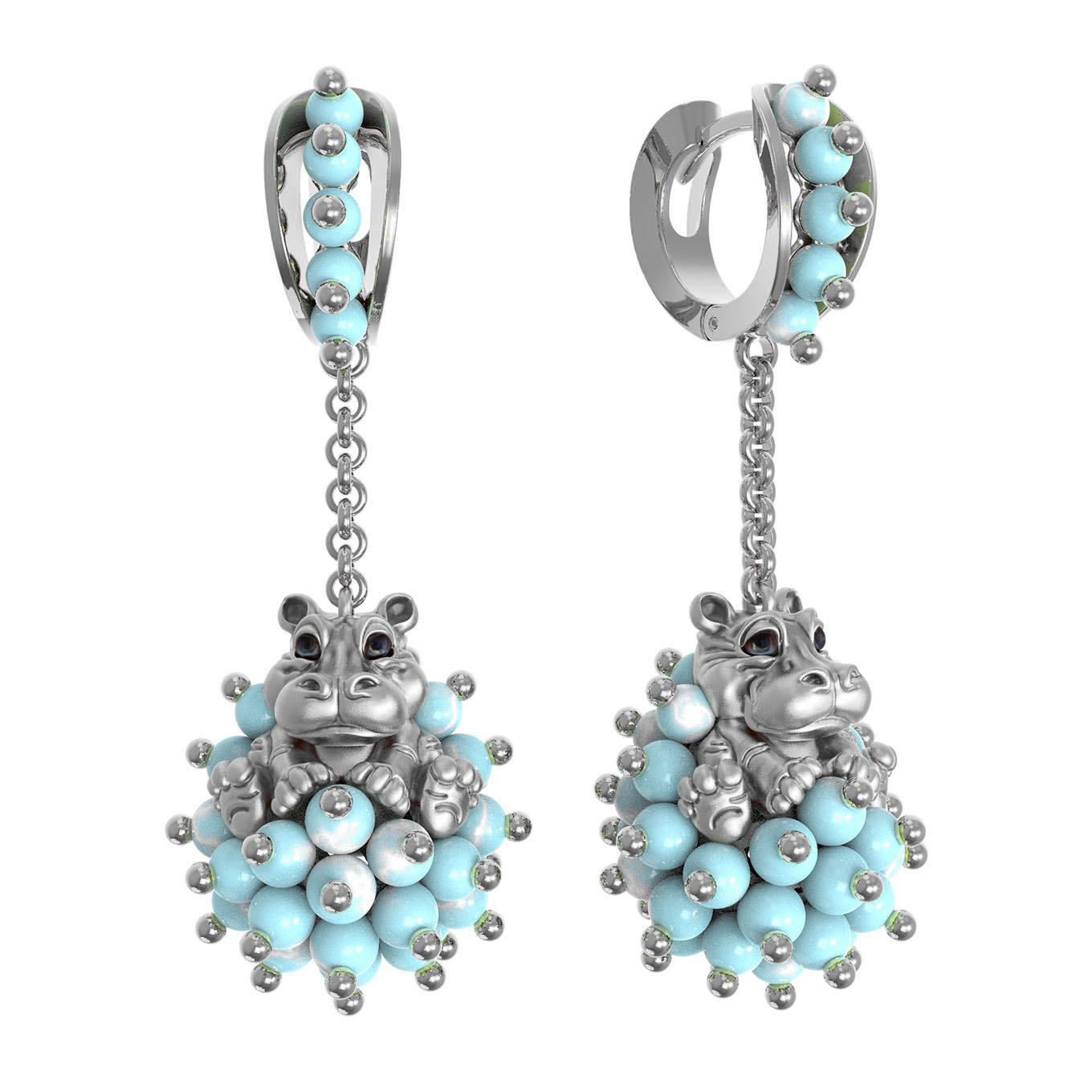 Серьги из белого золота c эмаль и бирюзой