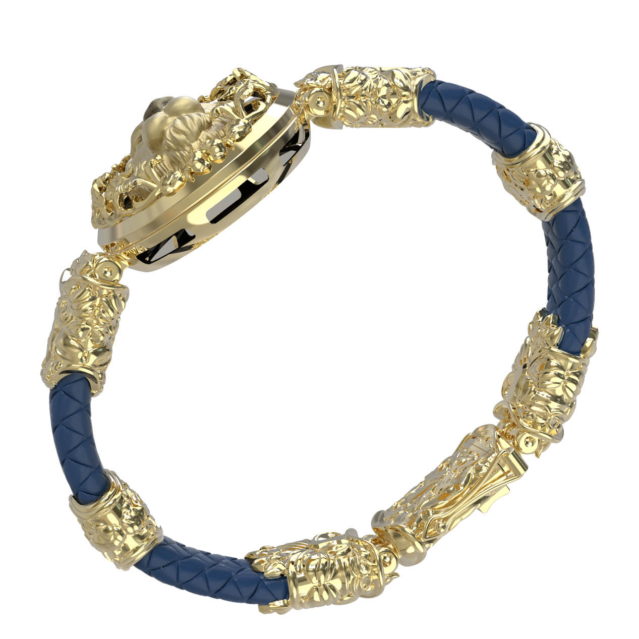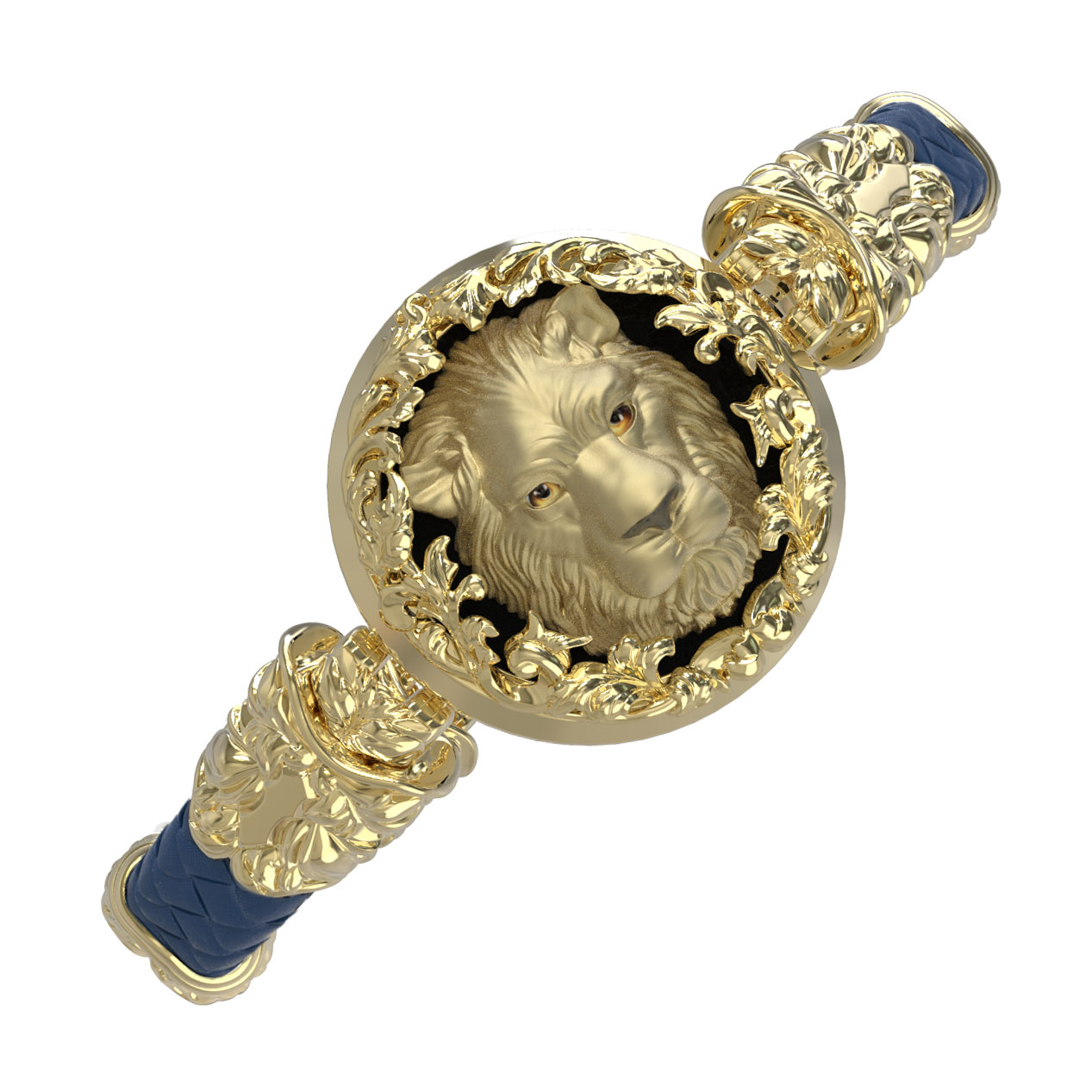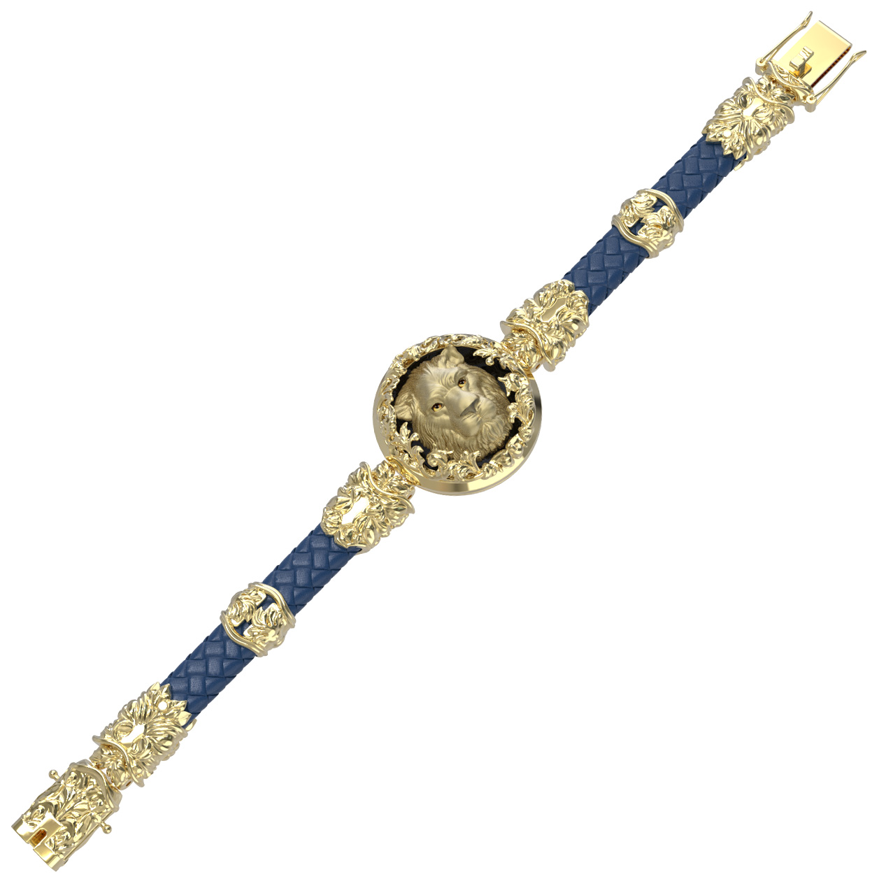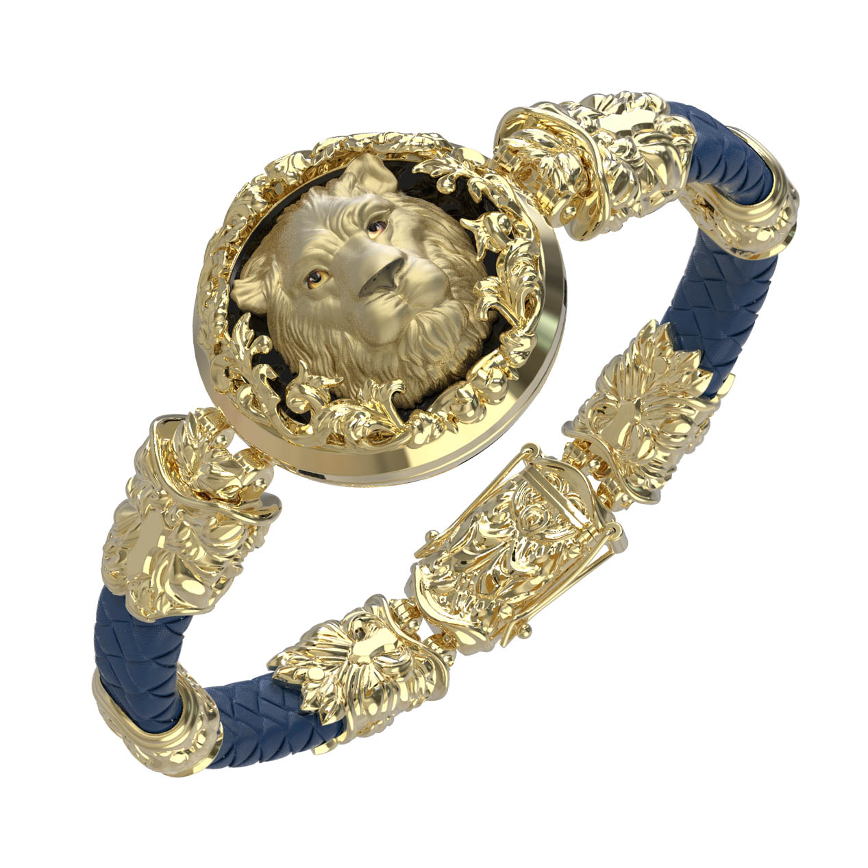Браслет из лимонного золота c эмаль, кожаным шнурком и ониксом