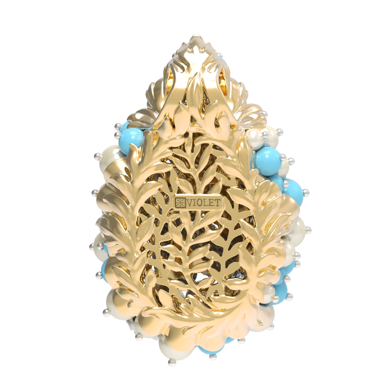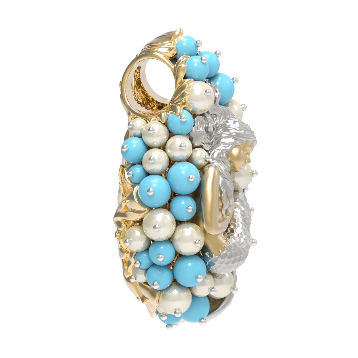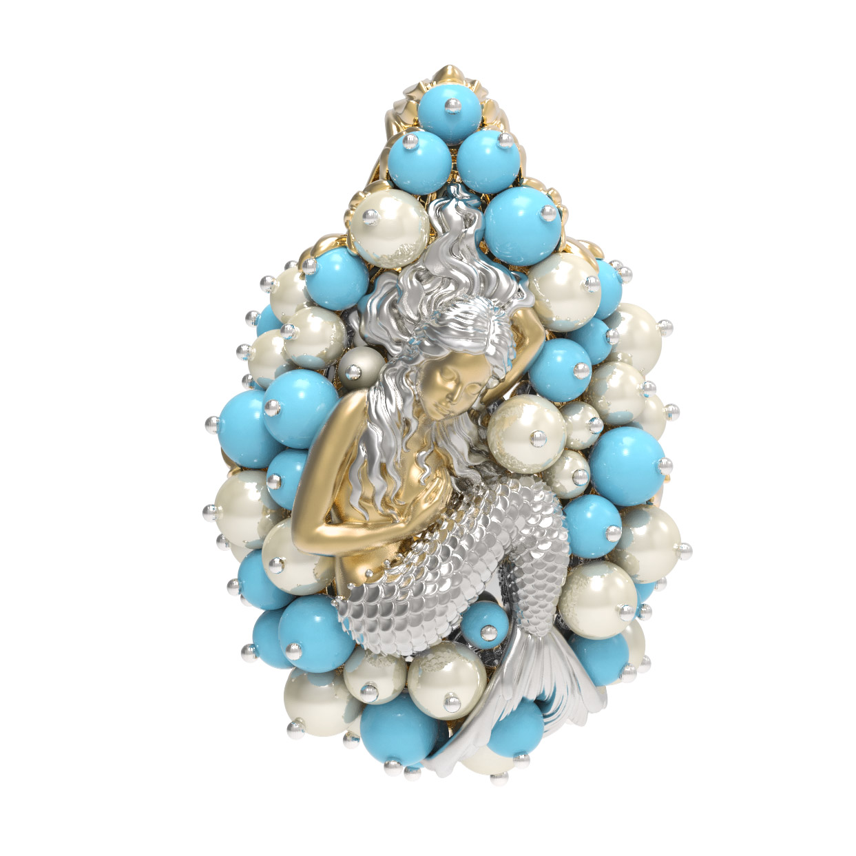 Подвеска из лимонного золота c жемчугом и бирюзой