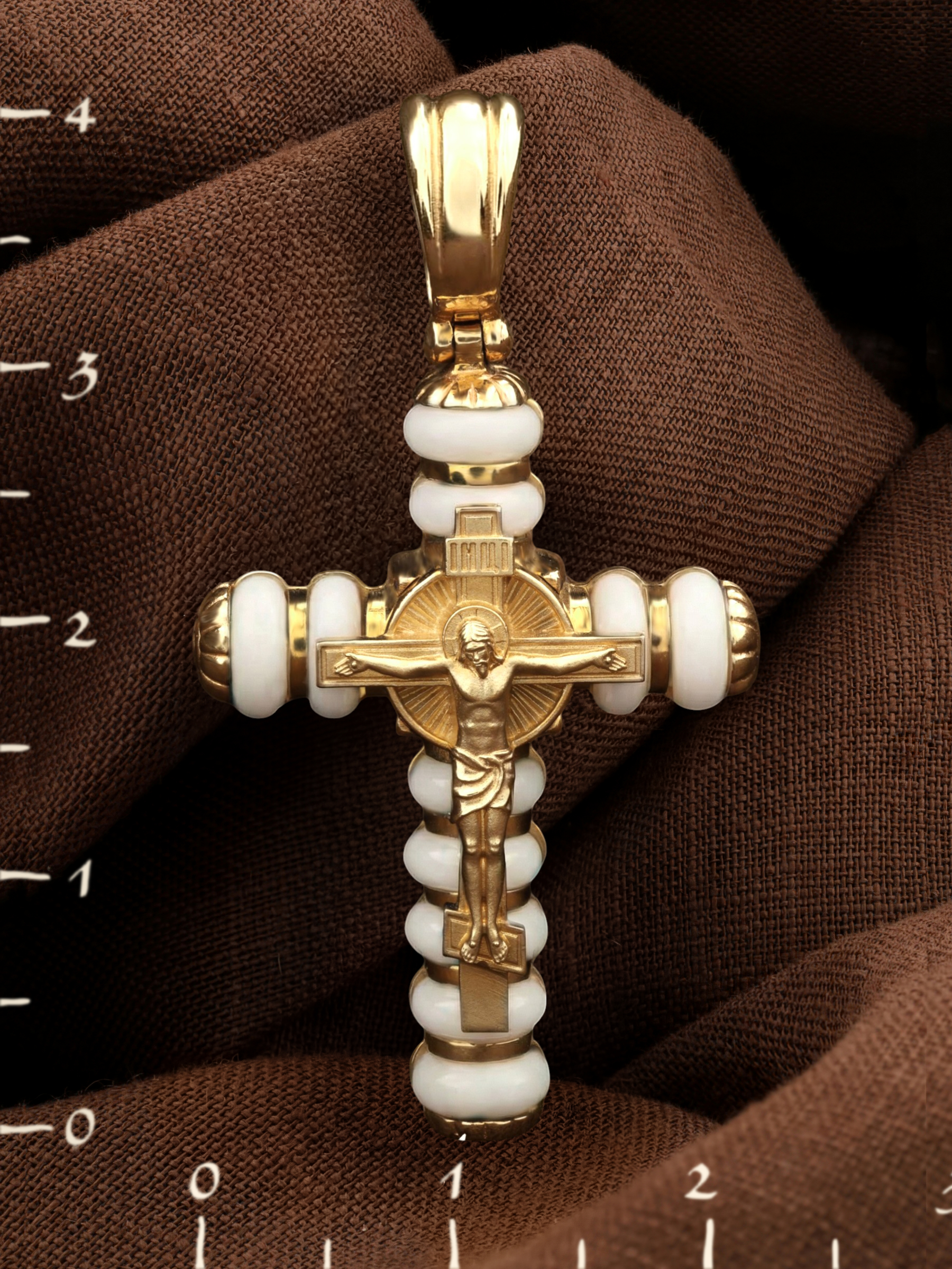 Крест из лимонного золота c кахолонгом