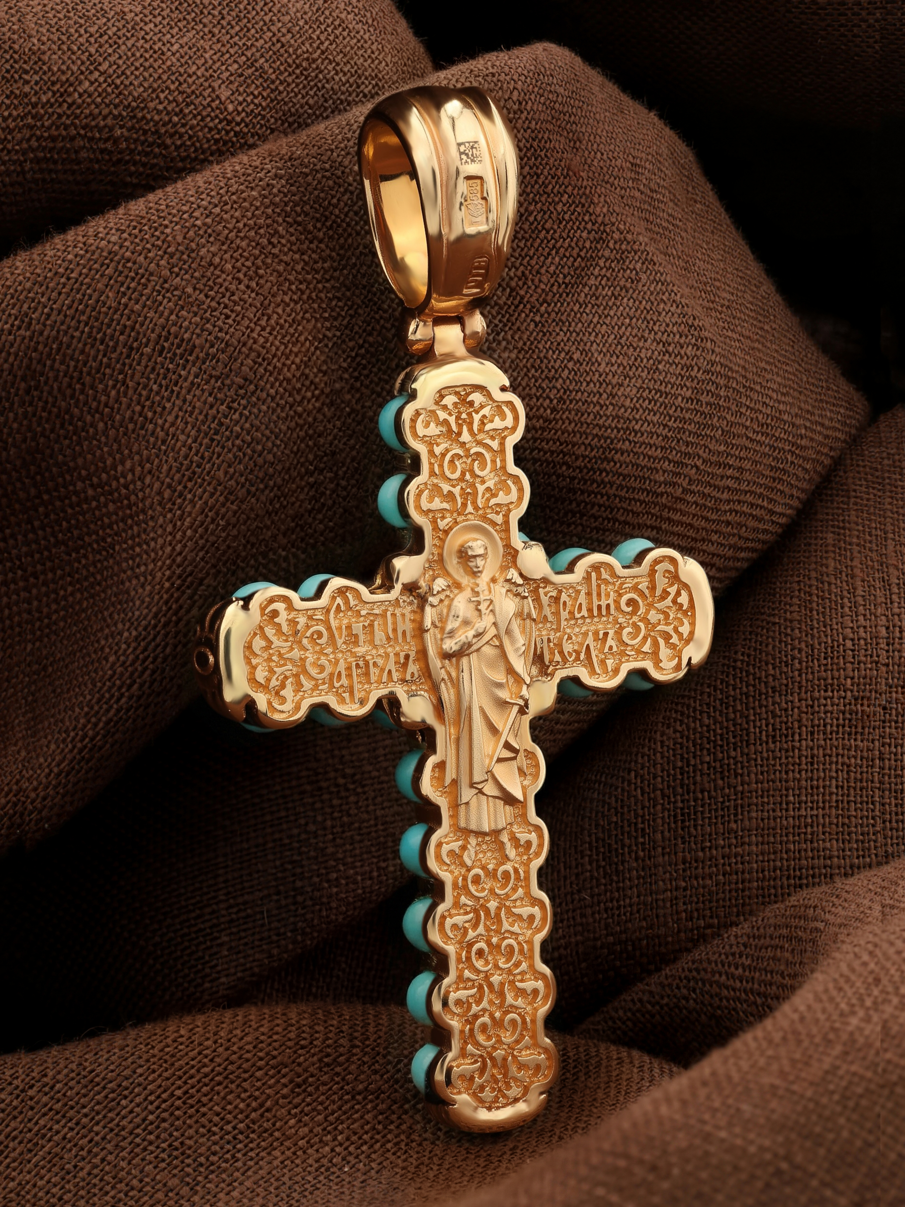 Крест из золота c бирюзой
