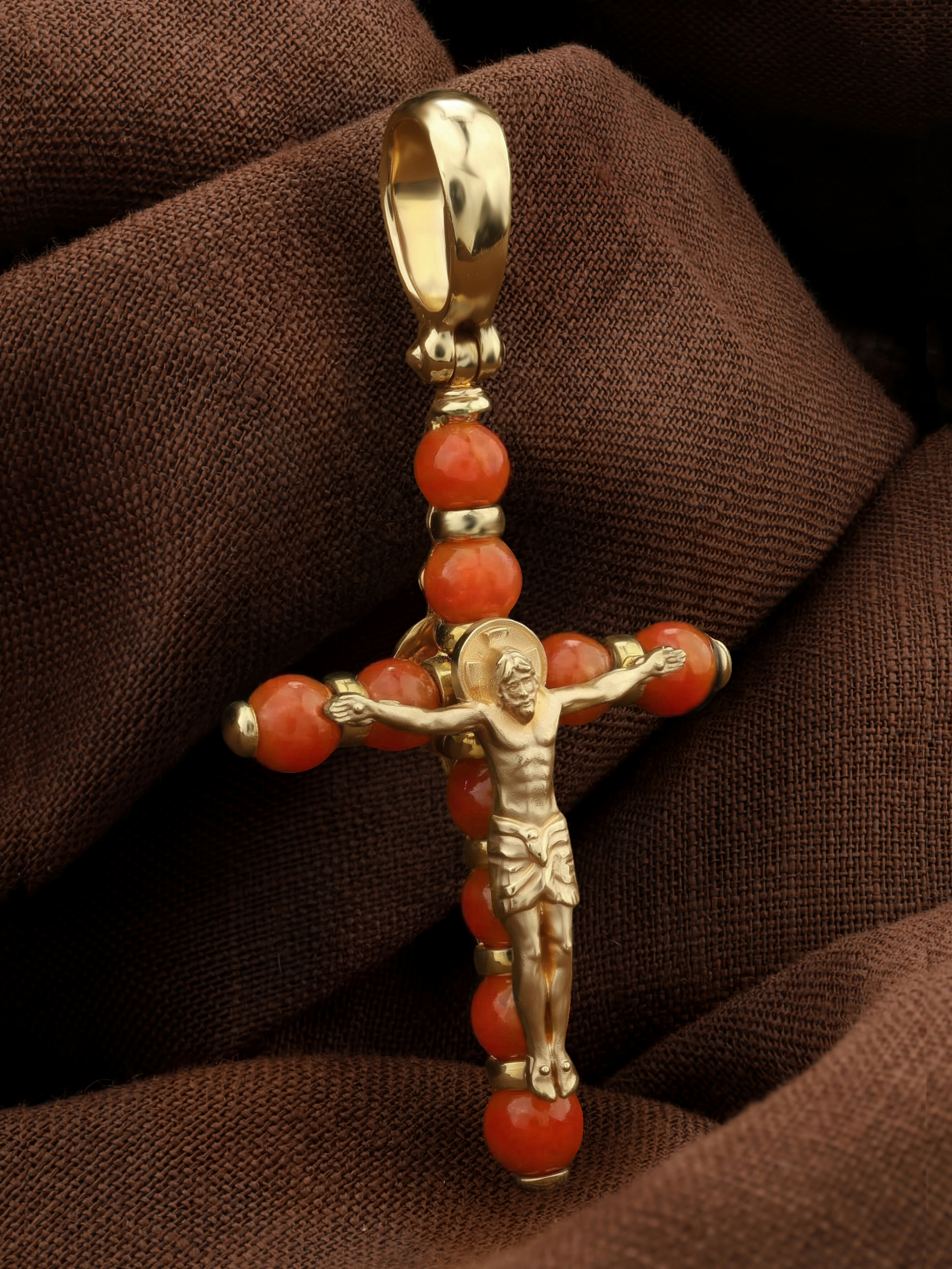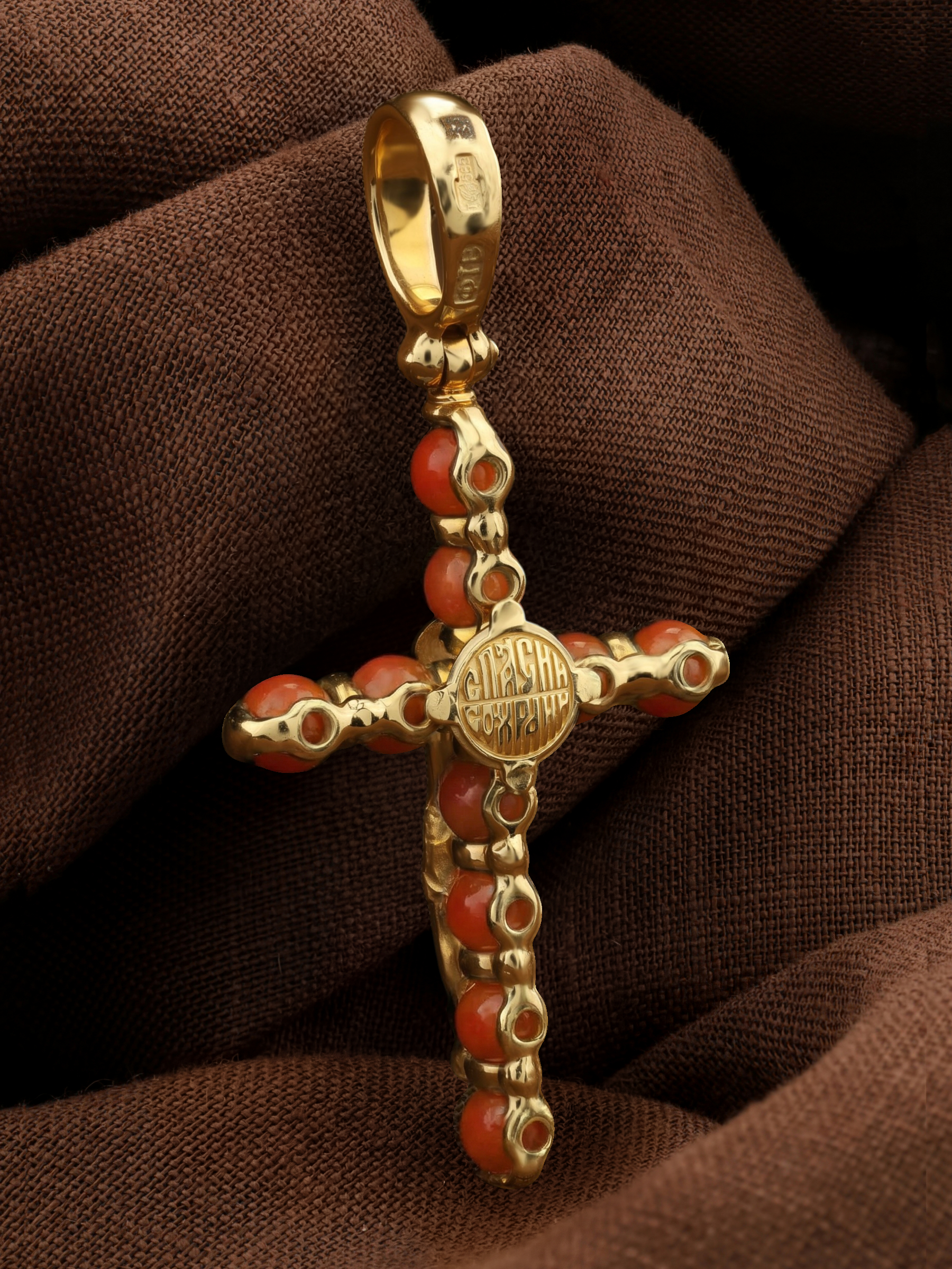 Крест из лимонного золота c кораллом