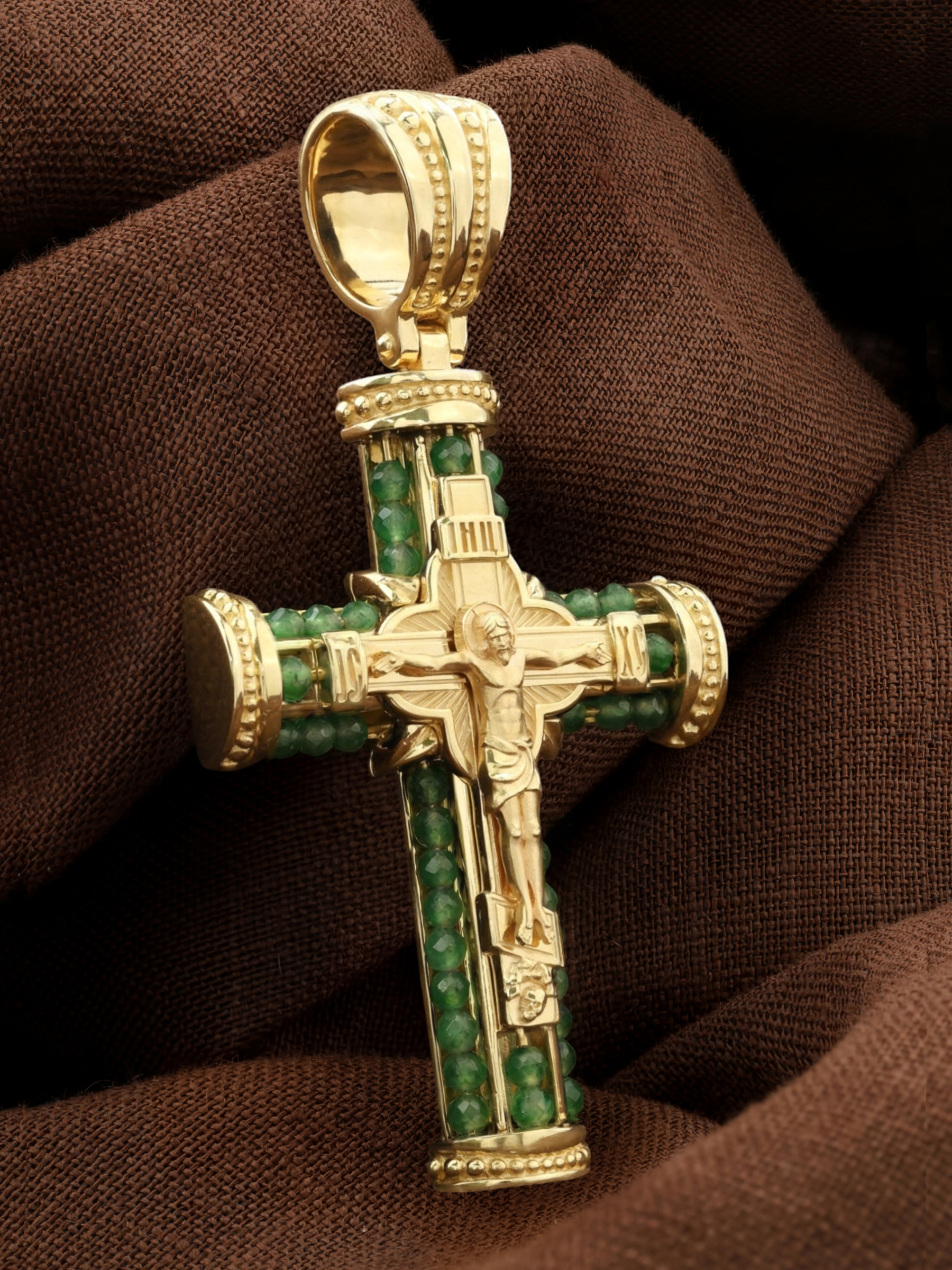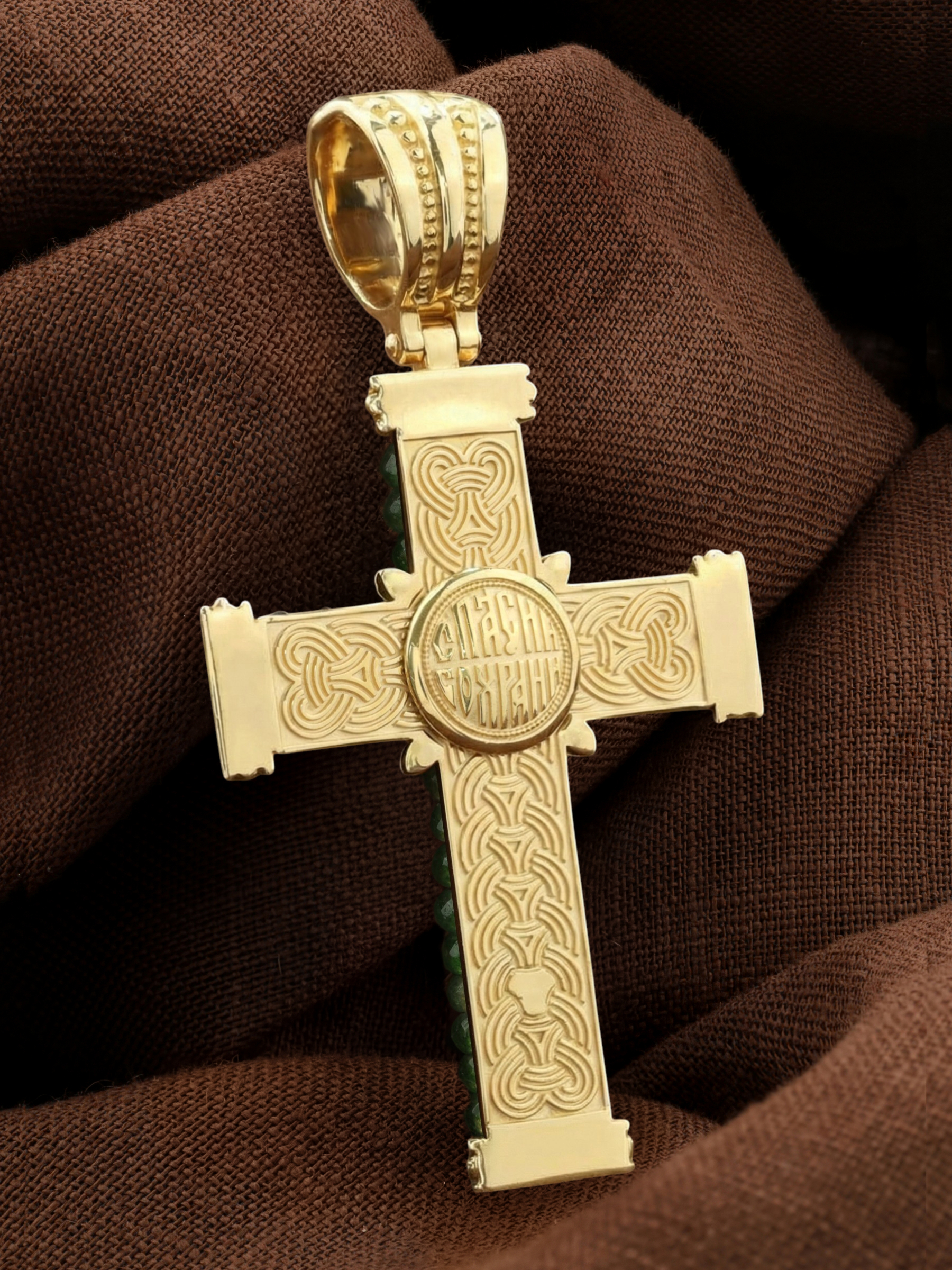 Крест из лимонного золота c хризопразом